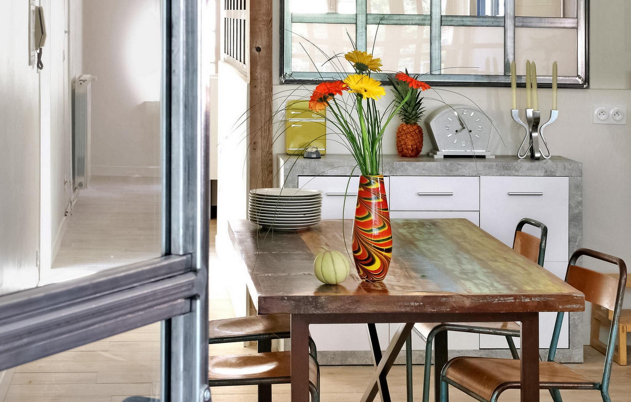 Beliggende mellem Nyons' historiske centrum og flodbredden, tilbyder denne loft-stil lejlighed i et smukt restaureret palæ et fortryllende ophold. En del af et omhyggeligt renoveret palæ med tre hyggelige ferielejligheder, dette rum er ideelt til en intim flugt. Imødekommende ejere, der bor i stueetagen, sikrer en varm modtagelse, mens de respekterer gæsternes privatliv. Haven, den lille pool og den nærliggende flod giver dejlige steder til afslapning. Lejligheden i loftstil på tredje sal byder på en fascinerende udsigt over floden, den romerske bro og de majestætiske bjerge fra loggiaen. Gæster deler udendørs rum med andre beboere og ejere, såsom en malerisk have udstyret med møbler og liggestole, sammen med et forfriskende romersk bassin (4,5 x 2,5 m), perfekt til afkøling. Ved siden af den berømte romerske bro tilbyder flodens strande mulighed for afslappede svømmeture. Parkeringsmulighederne omfatter en nærliggende gade og offentlig parkering ca. 50 m fra huset. Derudover fungerer palæets gamle kælder, elegant møbleret, som et køligt afslapningsrum, mødelokale eller et sted for at prøve regionale produkter. Bemærk venligst, at dyr ikke er tilladt af hensyn til alle gæsters komfort og ro. Huset ligger i centrum af Nyons, ved floden med en storslået udsigt over floden, den romerske bro og bjergene. Alle butikker og restauranter ligger inden for gåafstand. Stort provencalsk marked hver torsdag.