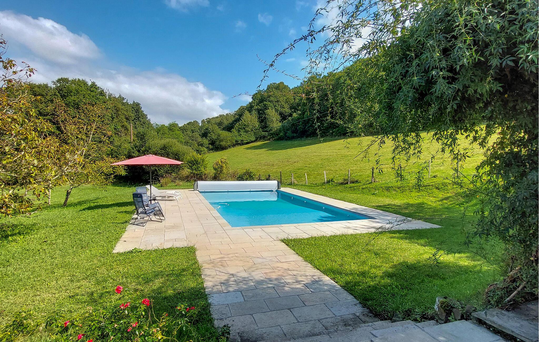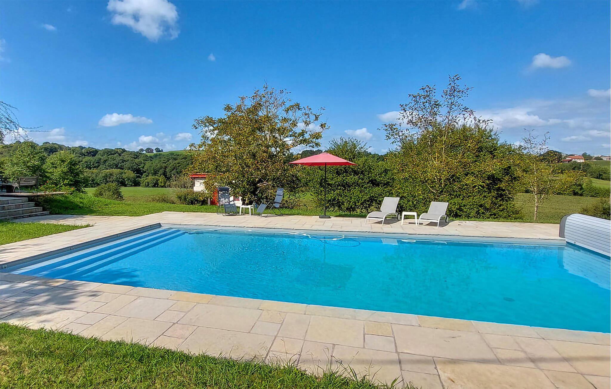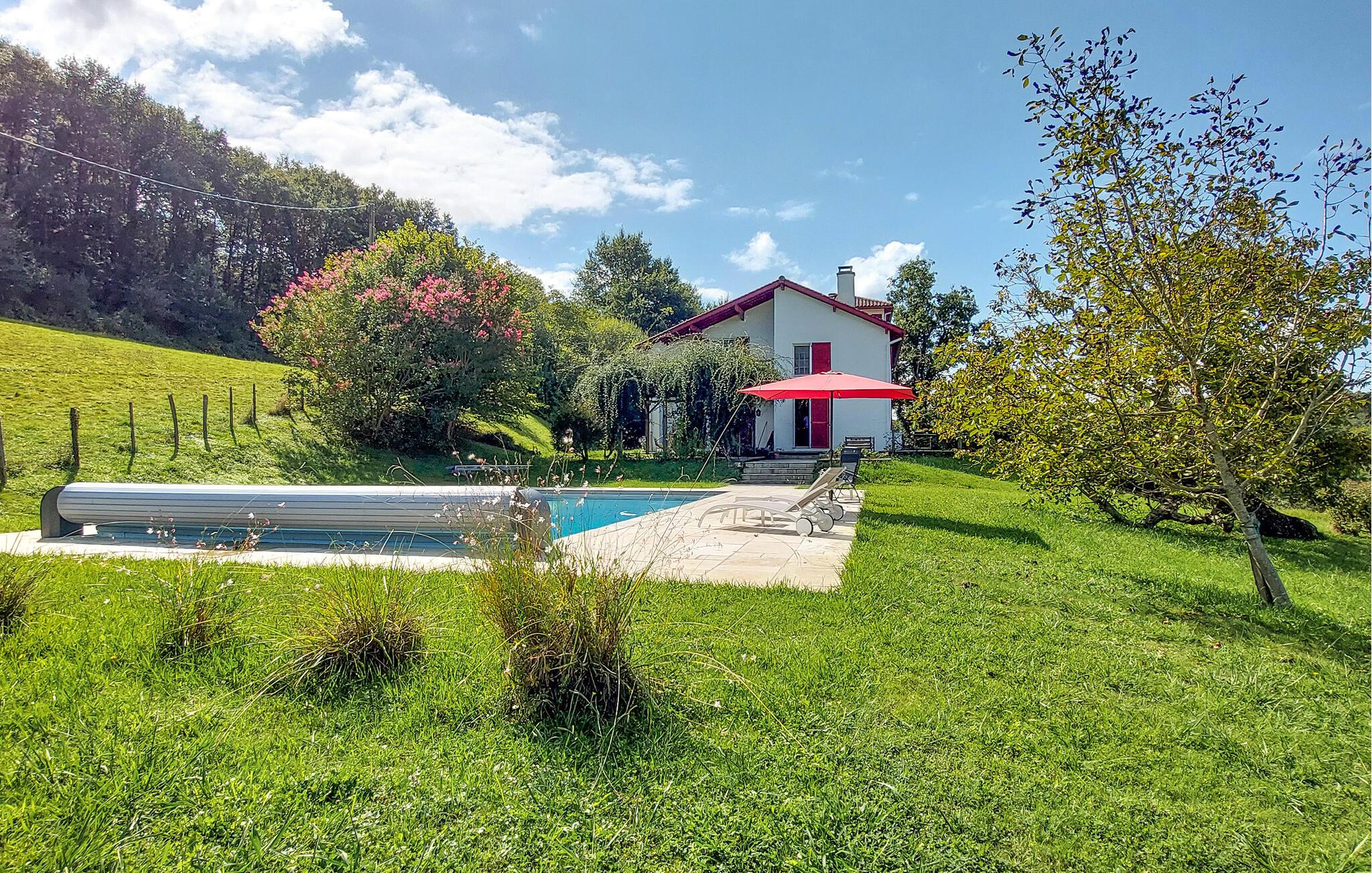 Nyd en behagelig ferie i dette rummelige landhus med pool og tennisbane.