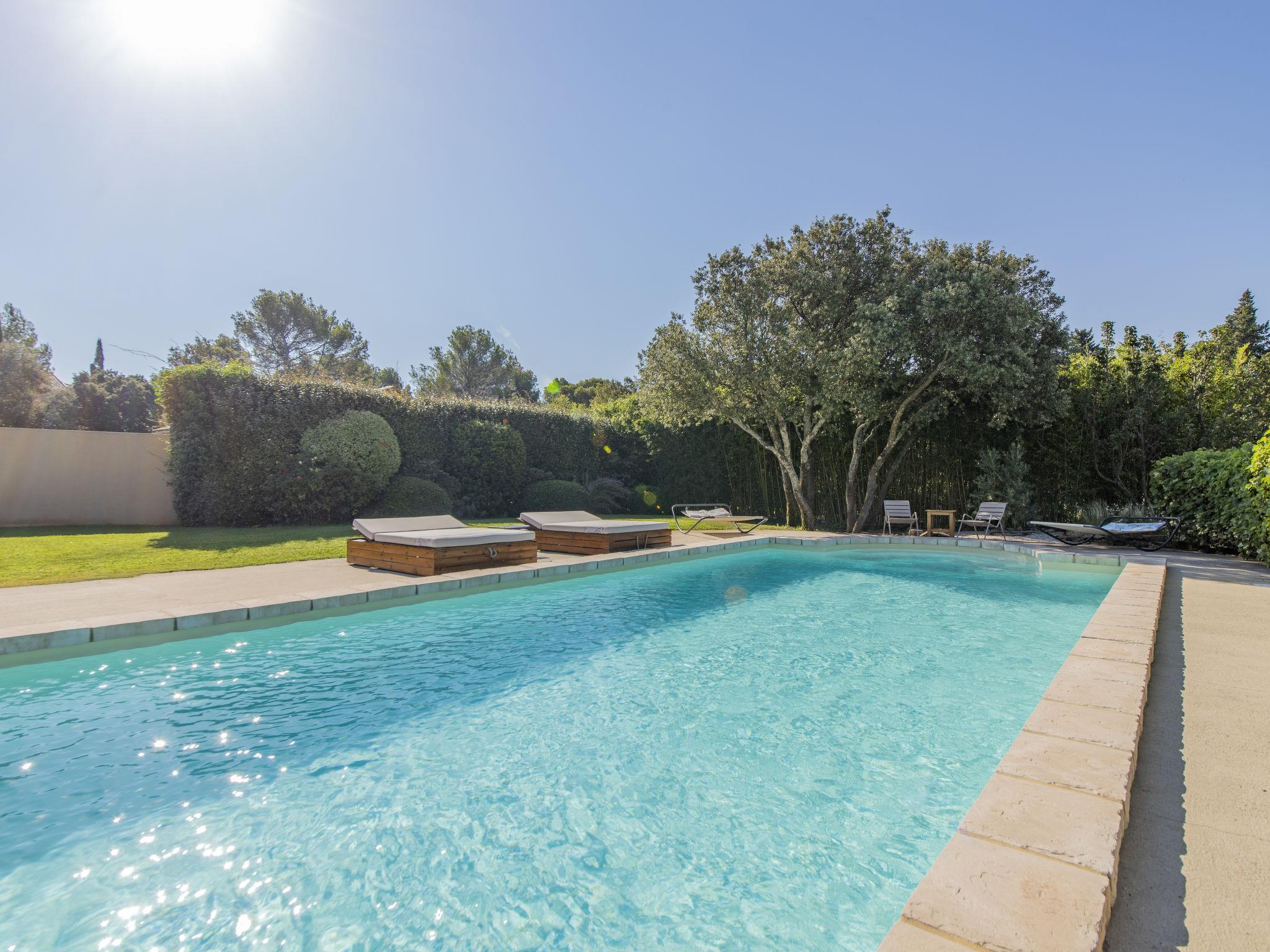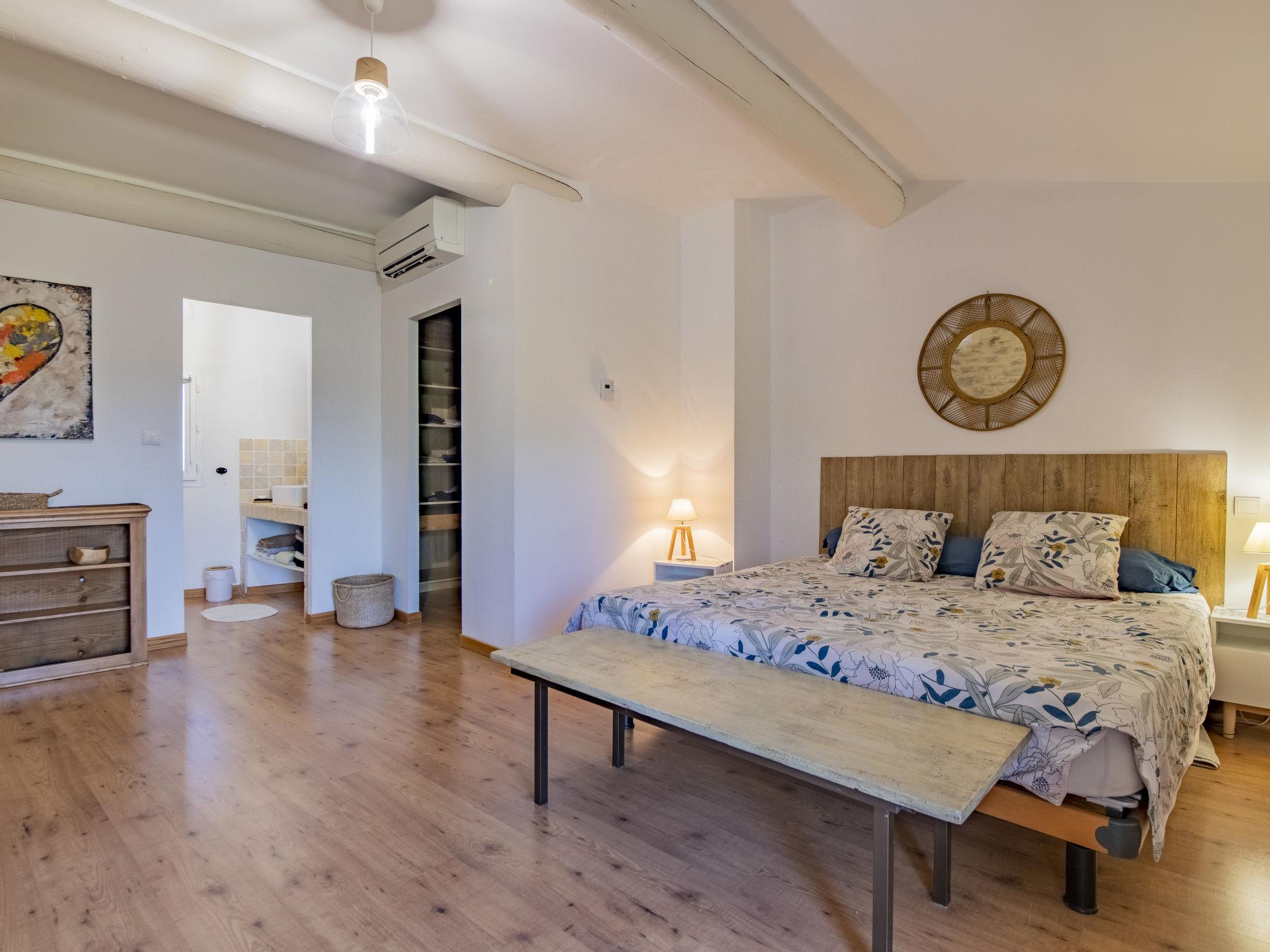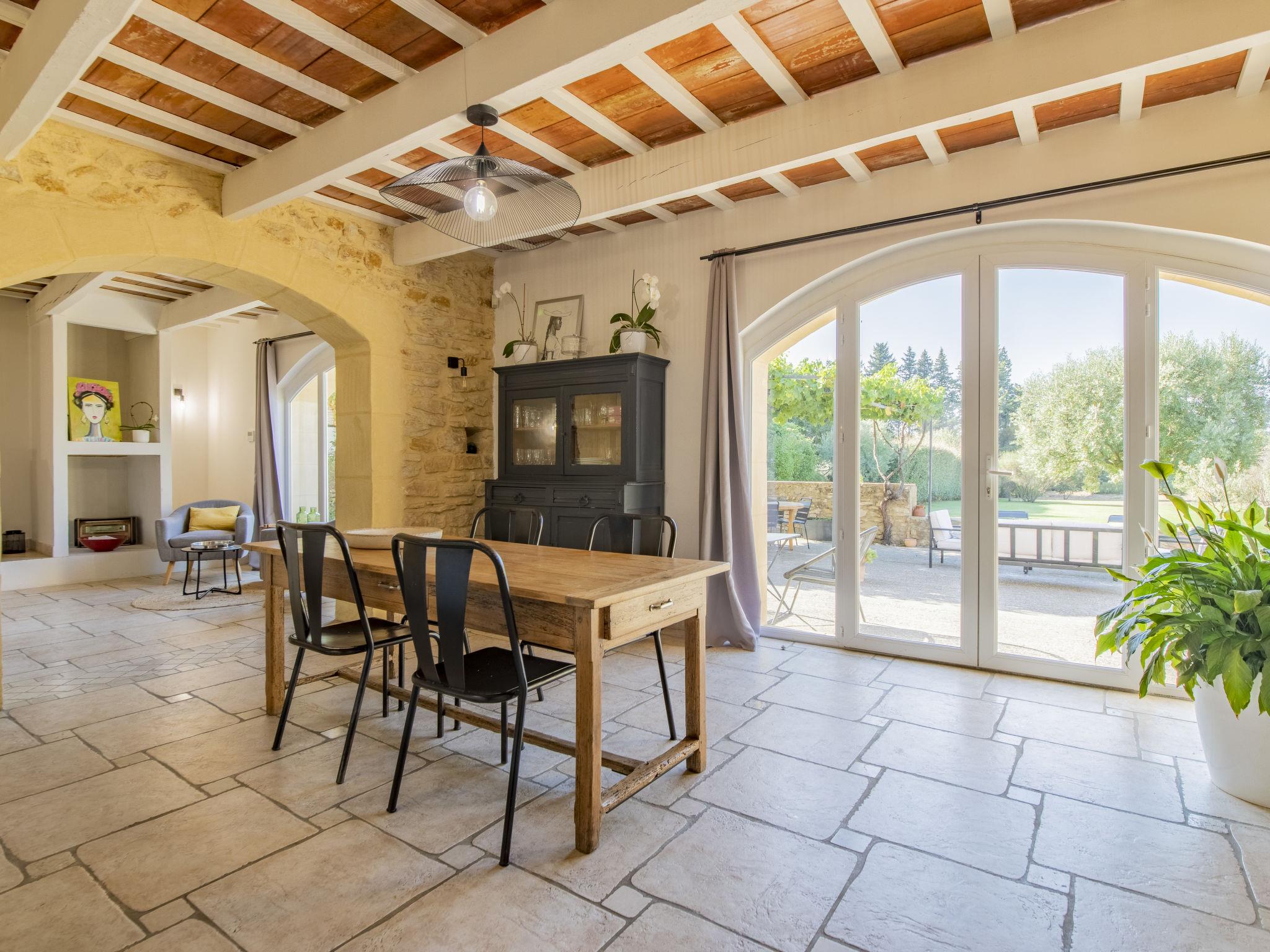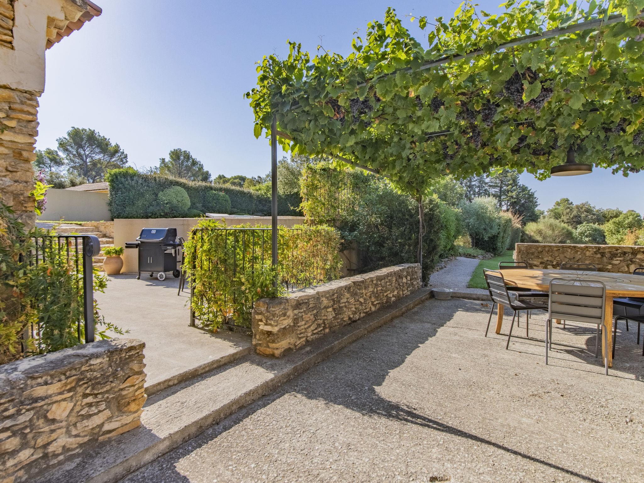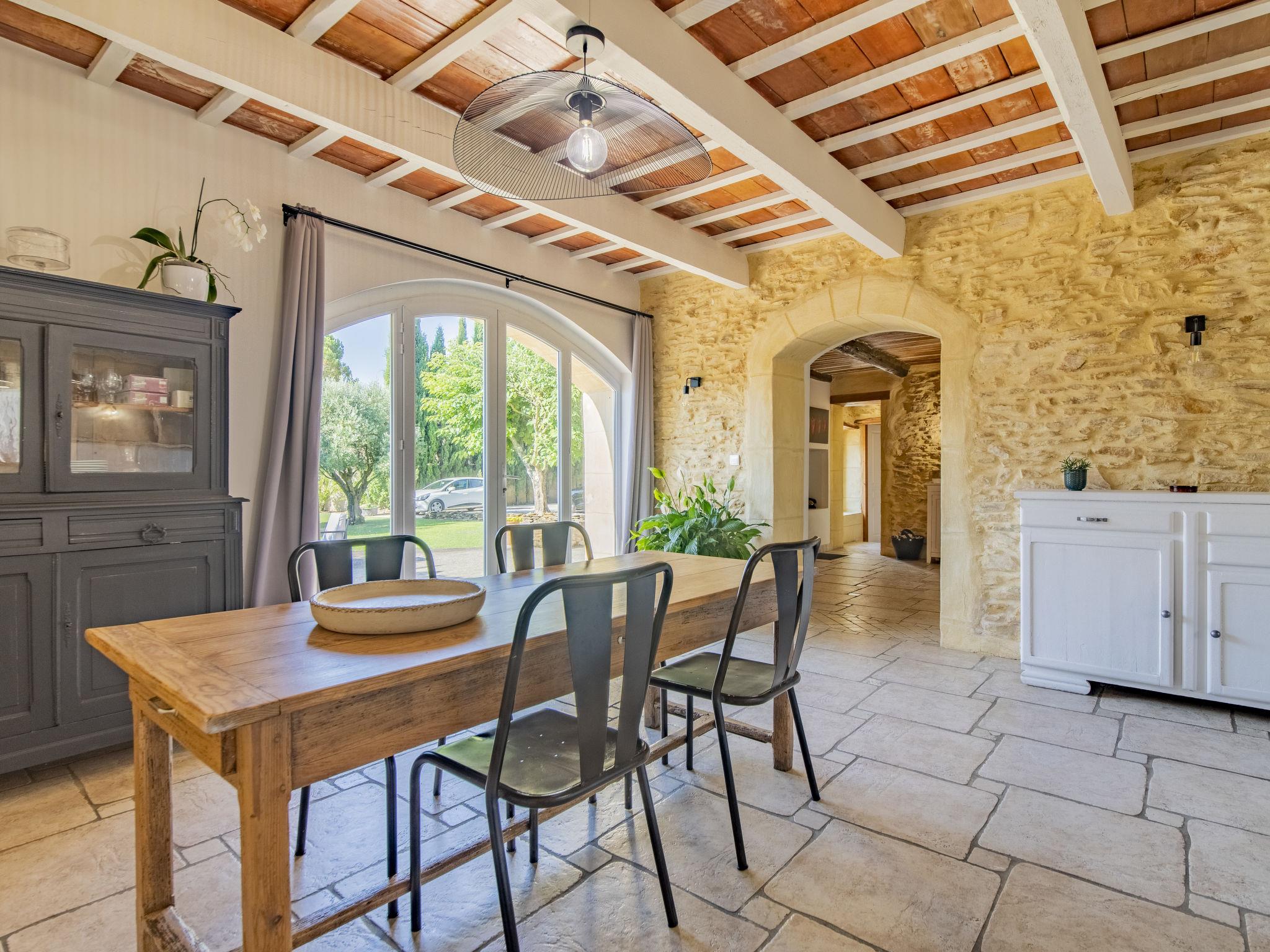 Pool house 80mq with full summer kitchen (fridge, hotplates, barbecue) and WC. Mas "Le Mas des Buis", renovated in 2016. In the resort 1.5 km from the centre of Uchaux. Private: property 4'500 m2 (fenced), swimming pool (10 x 5 m, depth 140 - 140 cm, seasonal availability: 01.Jun. - 30.Sep.). Linen change weekly. Towel change weekly. Room cleaning weekly (included). Parking on the premises. Shop 1.5 km, supermarket 5 km, restaurant 500 m, bakery 150 m, bus stop "Centre Serignan du Comtat" 4.3 km. Nearby attractions: Orange 8 km, Vaison la Romaine 32 km, Avignon 41 km, Mont Ventoux 62 km. Please note: car recommended. Suitable for families.