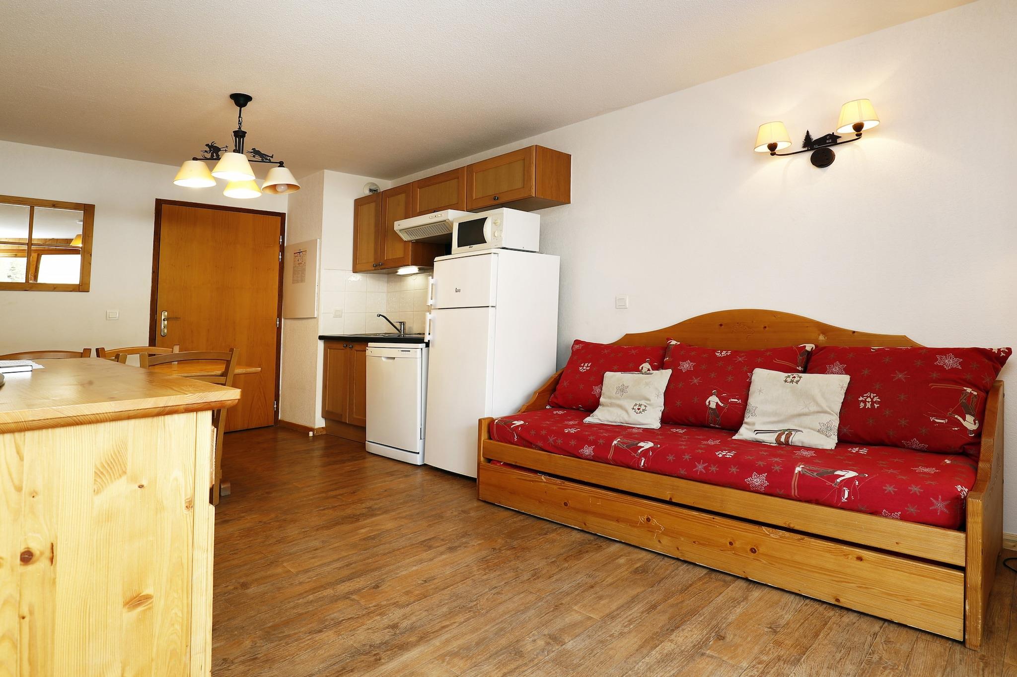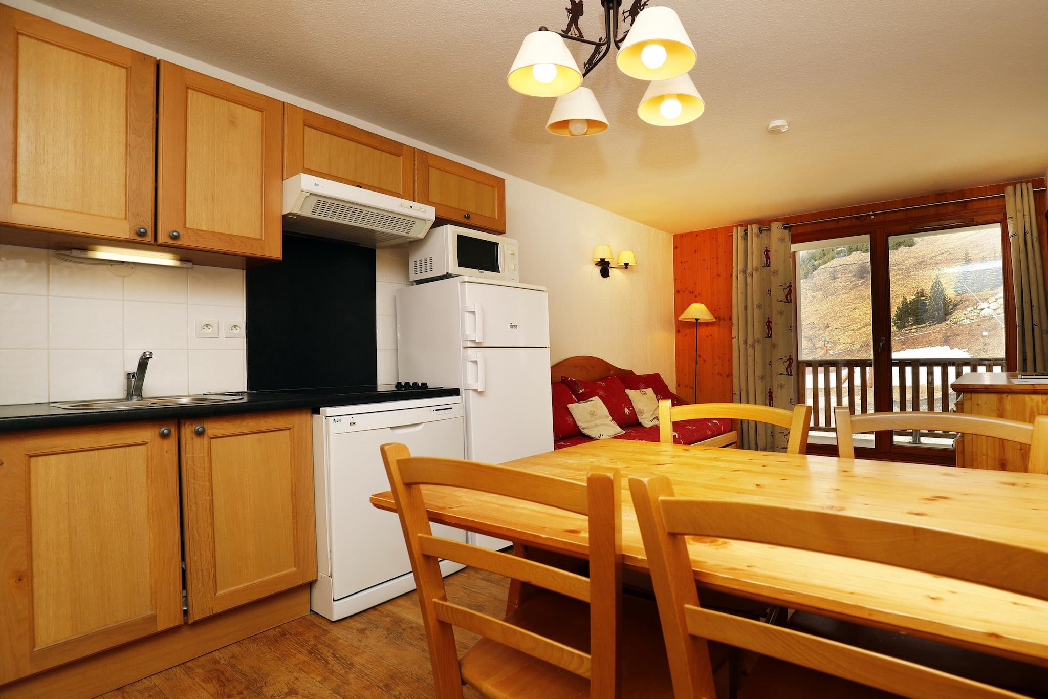 Denne hyggelige og fuldt udstyrede lejlighed på 28 m² er perfekt til op til 4 gæster, og tilbyder et behageligt og bekvemt ophold ved foden af skiløjperne. Med 1 soveværelse og en fantastisk udsigt over bjergene er den ideel til en afslappende ferie i et familievenligt og malerisk bjergområde. Ejendommen har egen balkon, Wi-Fi, tv og adgang til en fælles opvarmet swimmingpool. Gæster kan også drage fordel af en elevator og udendørs parkering i den tilstødende bygning for ekstra bekvemmelighed. Lejligheden ligger kun 100 meter fra skisportsstedet, hvilket gør den til et godt valg for skientusiaster. Det nærliggende bycentrum, kun 200 meter væk, giver nem adgang til restauranter og butikker, mens et supermarked 500 meter fra ejendommen sikrer, at alle dine dagligvarebehov bliver opfyldt. Den omkringliggende familievenlige zone og smukke alpine miljø byder på masser af muligheder for skiløb, vandreture og udforskning. Det fuldt udstyrede køkken, der har en glaskeramisk kogeplade, omfatter køleskab, mikroovn, fryser, opvaskemaskine, kaffemaskine og væsentlige køkkenredskaber. Uanset om du forbereder en hurtig snack eller et komplet måltid efter en dag på pisterne, tilbyder køkkenet alt, hvad du behøver for et bekvemt og behageligt ophold.