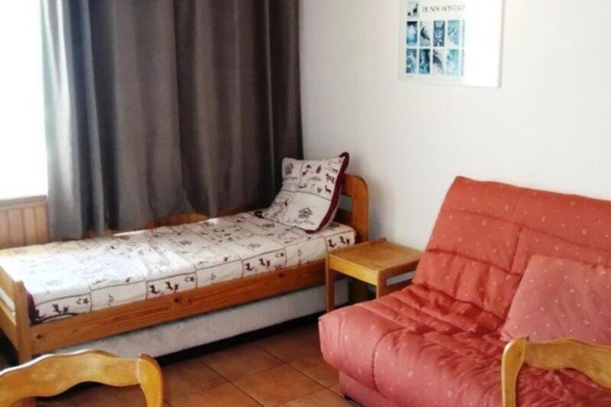 Maxi-estudio 6 personas 25 M² Loggia Expo Sur/Oeste Rincón de montaña con literas para 2 personas. Salón: 1 sofá cama + 2 camas individuales Cuarto de baño: ducha + WC. Cocina equipada Local de esquí Apartamento luminoso, tranquilo y bien equipado. Se encuentra cerca de las pistas de esquí, de los comercios y a 5 minutos a pie del polideportivo (zona de relajación y bienestar con piscina, bolera, pista de hielo, hammam, sauna, cine, etc.) En invierno, la retirada de nieve de los balcones no está incluida. No se proporcionan sábanas ni toallas. Disponible para alquiler Calefacción - 1