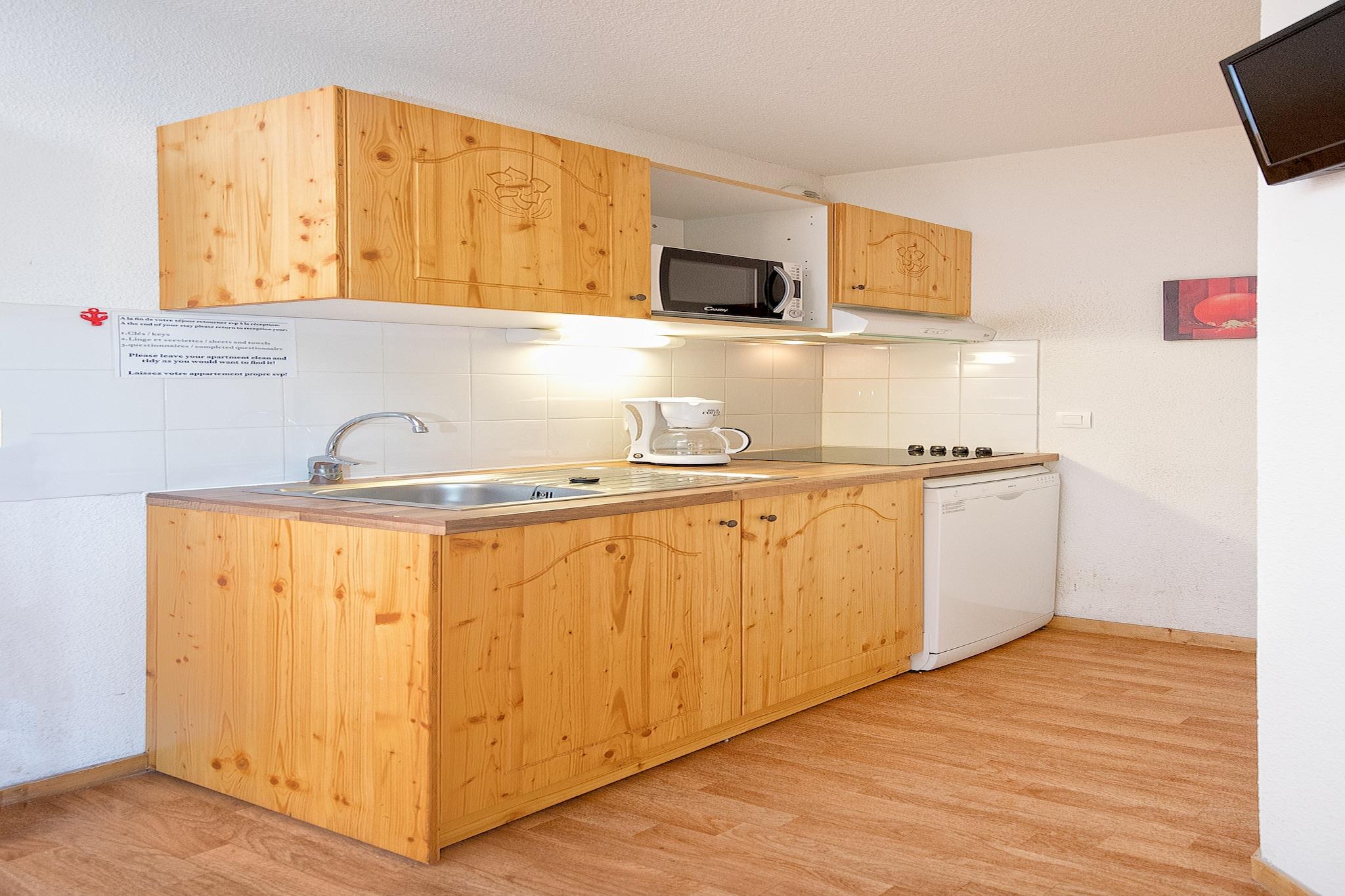 HAMEAU – FLAT 3 203 er en charmerende 3-stjernet lejlighed på anden sal i Le Hameau des Eaux d"Orelle-boligen, beliggende i hjertet af de 3 Vallées i Frankrig. Perfekt for op til fire gæster, denne 31 m² store lejlighed har en hyggelig stue med terrasse og fjernsyn samt åbent køkken udstyret med køleskab, fryser, opvaskemaskine, mikroovn, kaffemaskine, elkedel og brødrister. Sovearrangementerne inkluderer en dobbelt sovesofa i stuen (2x 80x190) og en dobbeltseng i soveværelset (160x200). Lejligheden har et badeværelse med badekar, et separat toilet og en balkon med fantastisk udsigt over dalen og de omkringliggende træer. Gæsterne har adgang til et wellness-område med en indendørs pool og sauna, et skirum og vaskeri i bygningen (mod ekstra gebyr). til tilgængelighed, og kæledyr er velkomne. Bekvemt beliggende 1 km fra svævebanen og betjent af en gratis vinter shuttlebus, har boligen også butikker på stedet. Obligatoriske gebyrer inkluderer en turistskat og et refunderbart depositum, mens valgfrie tjenester såsom sengelinned, håndklæder, slutrengøring og gourmetkurve er tilgængelige. Alpvision sikrer et afslappende og mindeværdigt ophold med eksklusive rabatter på leje af skiudstyr, lektioner og mere.