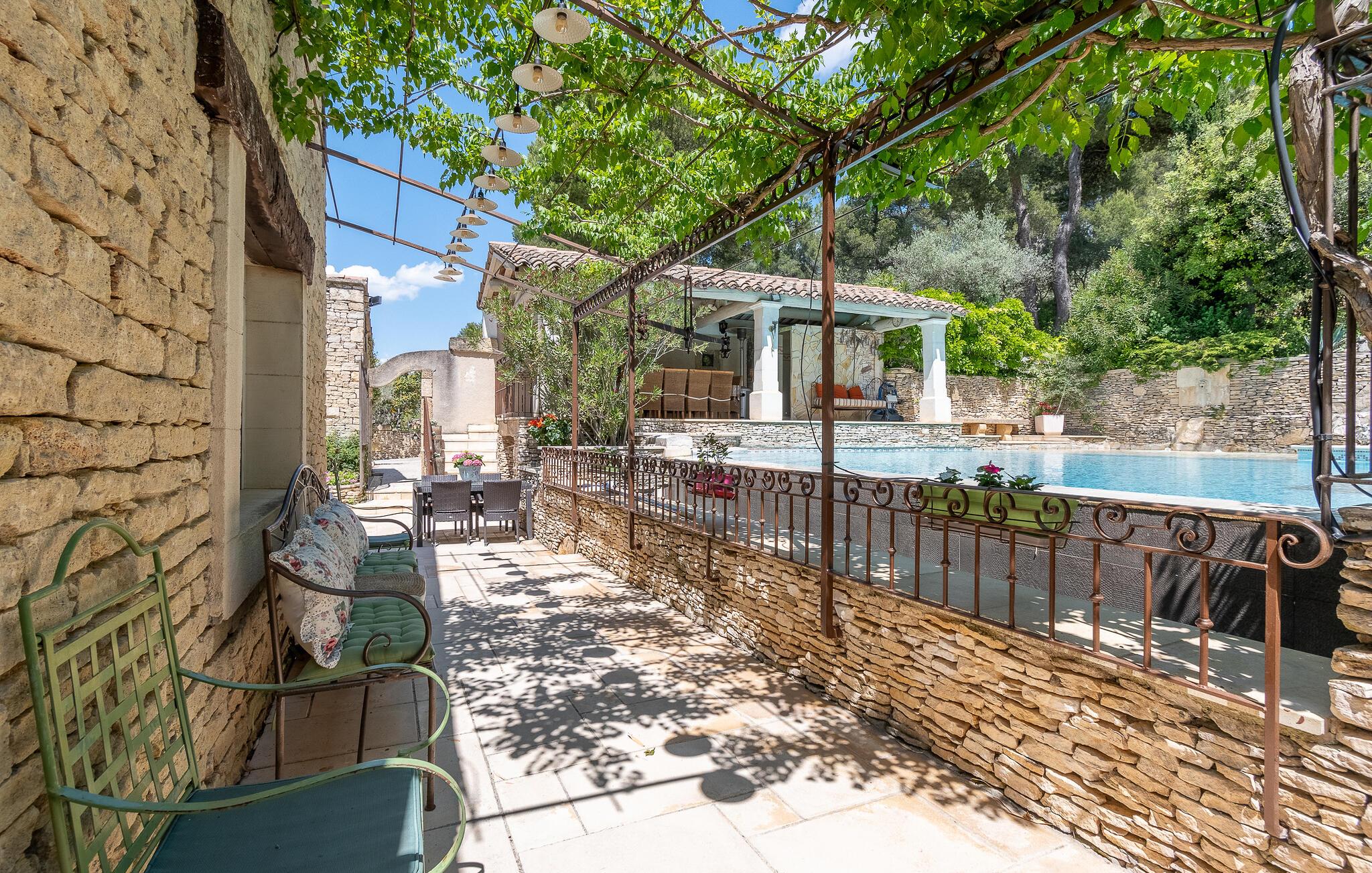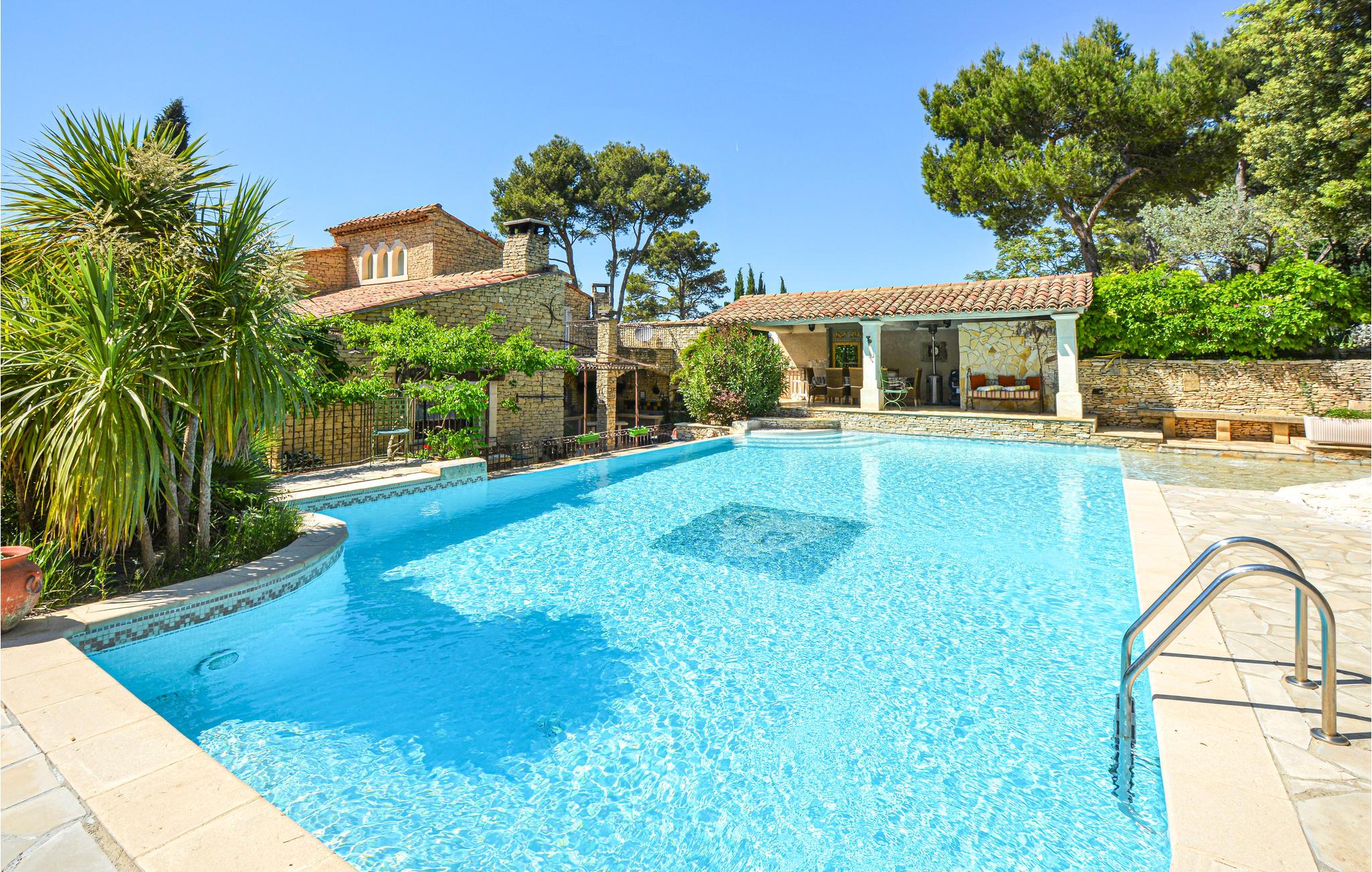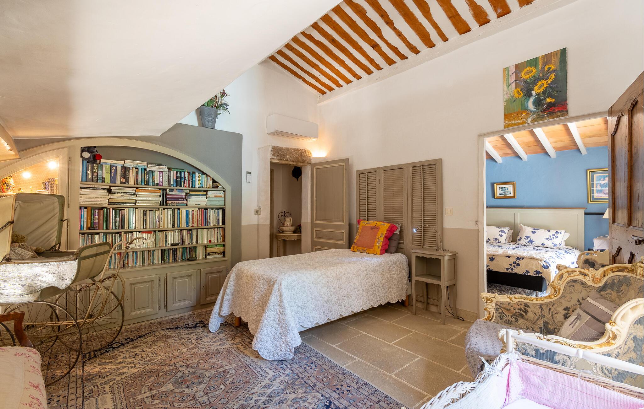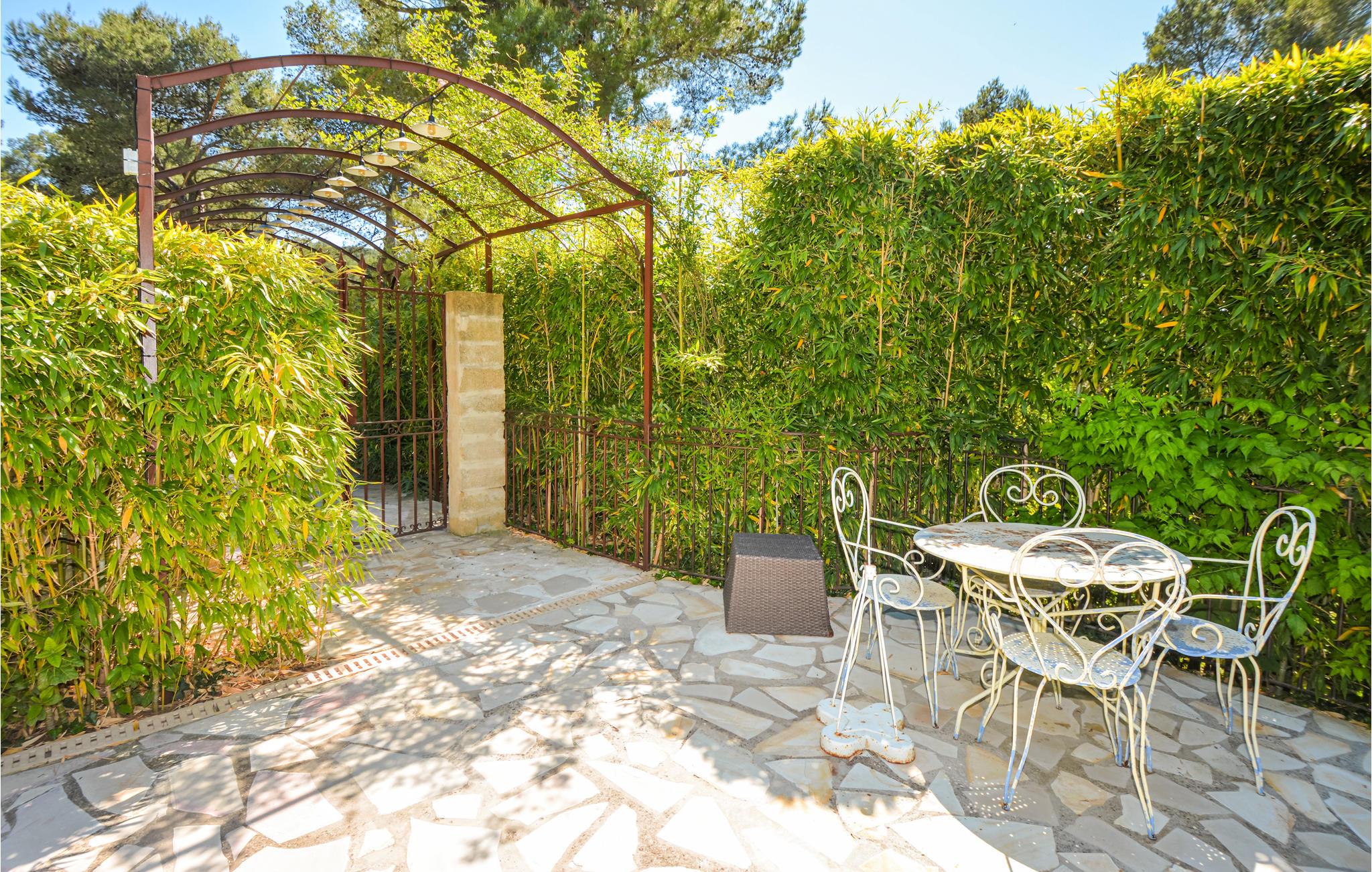 Grunden er på hele 1 hektar og prydet med fyrre- og oliventræer. Glæd jer til en forrygende beliggenhed mellem Luberon Naturpark og Alpillerne, som er en lille bjergkæde på sydsiden af et af de største olivendyrkningsområder i Frankrig. Den korte afstand til motorvejene gør, at I hurtigt kan komme ud til Middelhavet, unikke Camargue og de skønne byer længere mod syd, hvor der er et hav af spændende attraktioner. Cykler kan lejes på stedet. Soveværelse 4 har egen terrasse.