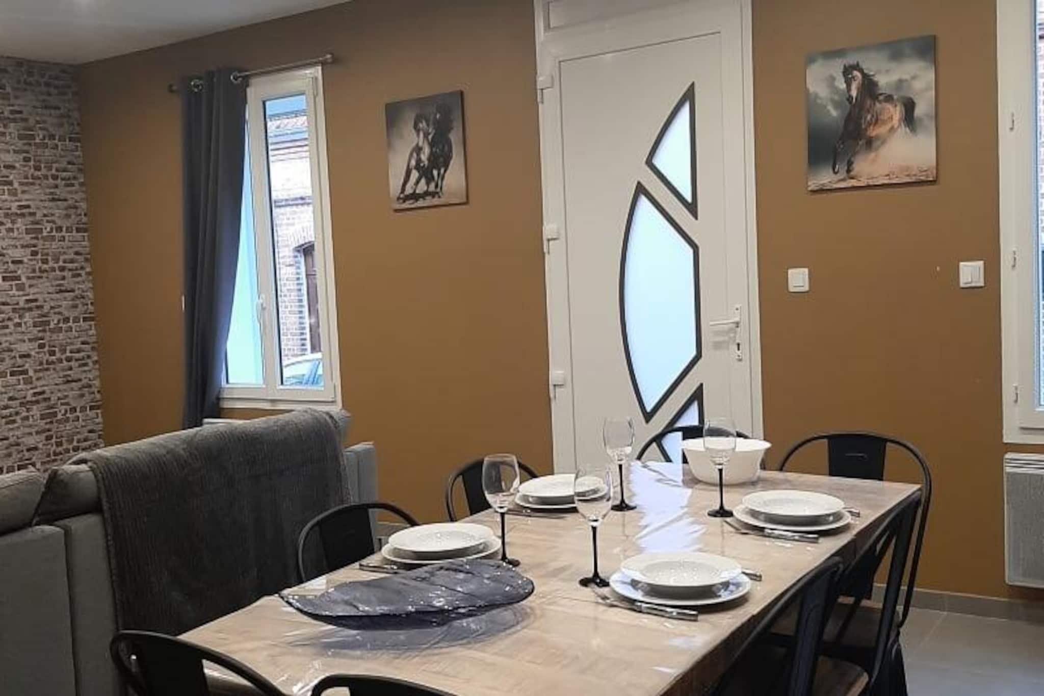 I den maleriske Bresle-dal, hvor havbrisen møder skovens ro, tilbyder dette charmerende rækkehus et idyllisk tilflugtssted for familier og venner. Forestil dig morgener fyldt med fuglesang og aftener under en stjerneklar himmel, alt imens du er omgivet af Nordfrankrigs naturlige skønhed. Dette hjem er din port til en region rig på historie, kultur og udendørs eventyr. Træd indenfor og oplev en rummelig og indbydende stueetage. Det moderne køkken, fuldt udstyret til alle dine kulinariske behov, åbner ud til en hyggelig spiseplads designet til op til otte gæster. Den tilstødende stue inviterer dig til at slappe af og dele afslappende øjeblikke. Ovenpå venter to smukt indrettede soveværelser, der begge har komfortable dobbeltsenge og rigelig opbevaringsplads. Et af værelserne er omhyggeligt udstyret med en babyseng og et puslebord, hvilket sikrer et stressfrit ophold for familier med små børn. Et elegant badeværelse med bruseniche tilføjer et strejf af luksus, mens vaskerummet med vaskemaskine øger bekvemmeligheden. Udendørsterrassen, der er tilgængelig via et stort karnapvindue, er perfekt til spisning under åben himmel eller blot til at nyde den rolige atmosfære. Med sine havemøbler og flisebelagte design er dette sted ideelt til at skabe varige minder over måltider under åben himmel. Beliggende i Oust-Marest, placerer dette hjem dig kun en kort køretur fra de fantastiske strande og klipper ved Picardiekysten, herunder Mers-les-Bains og Le Tréport. Udforsk den frodige Eu National Forest, nyd vandsport på Gamaches nautiske base, eller cykl langs den naturskønne Bresle-flod. De nærliggende damme og beskyttede naturområder tilbyder et paradis for både fuglekiggere og naturentusiaster. Uanset om du søger eventyr eller afslapning, er denne ejendom den perfekte base for en uforglemmelig ferie.