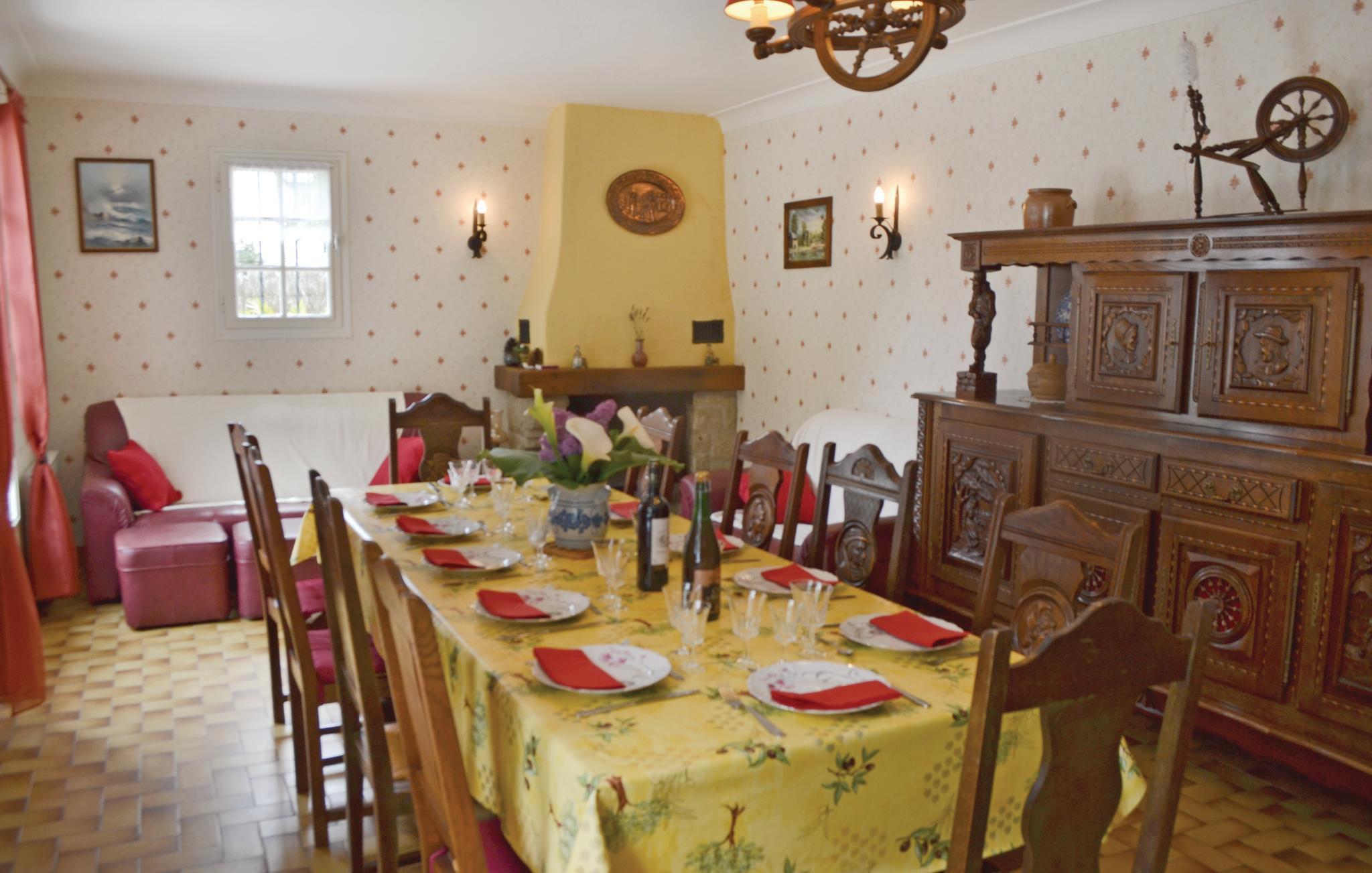 I stuen er der åbent ildsted og franske vinduer, der sørger for rigtig feriestemning, og som er med til at give huset sin charme.