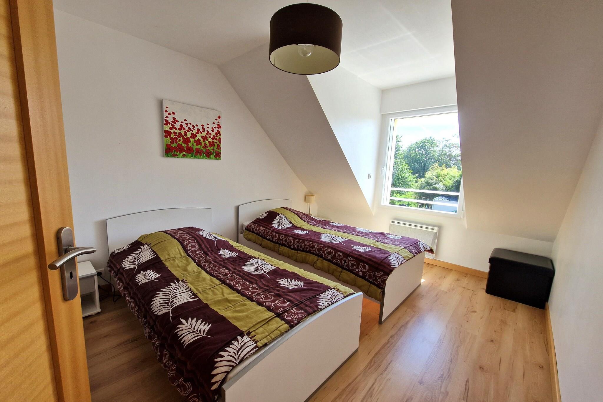 Beliggende på den sydlige spids af Bretagne. Moderne arkitekttegnet hus med en rummelig terrasse. De lyse værelser og det originale interiørdesign minder om en særlig komfortabel båd. Den 400 m² store have ligger i et meget roligt boligområde i denne populære badeby, der ligger på grænsen mellem Bretagne og Loire-Atlantique. 2 hunde er tilladt mod et ekstra gebyr, men katte og andre kæledyr er ikke tilladt.