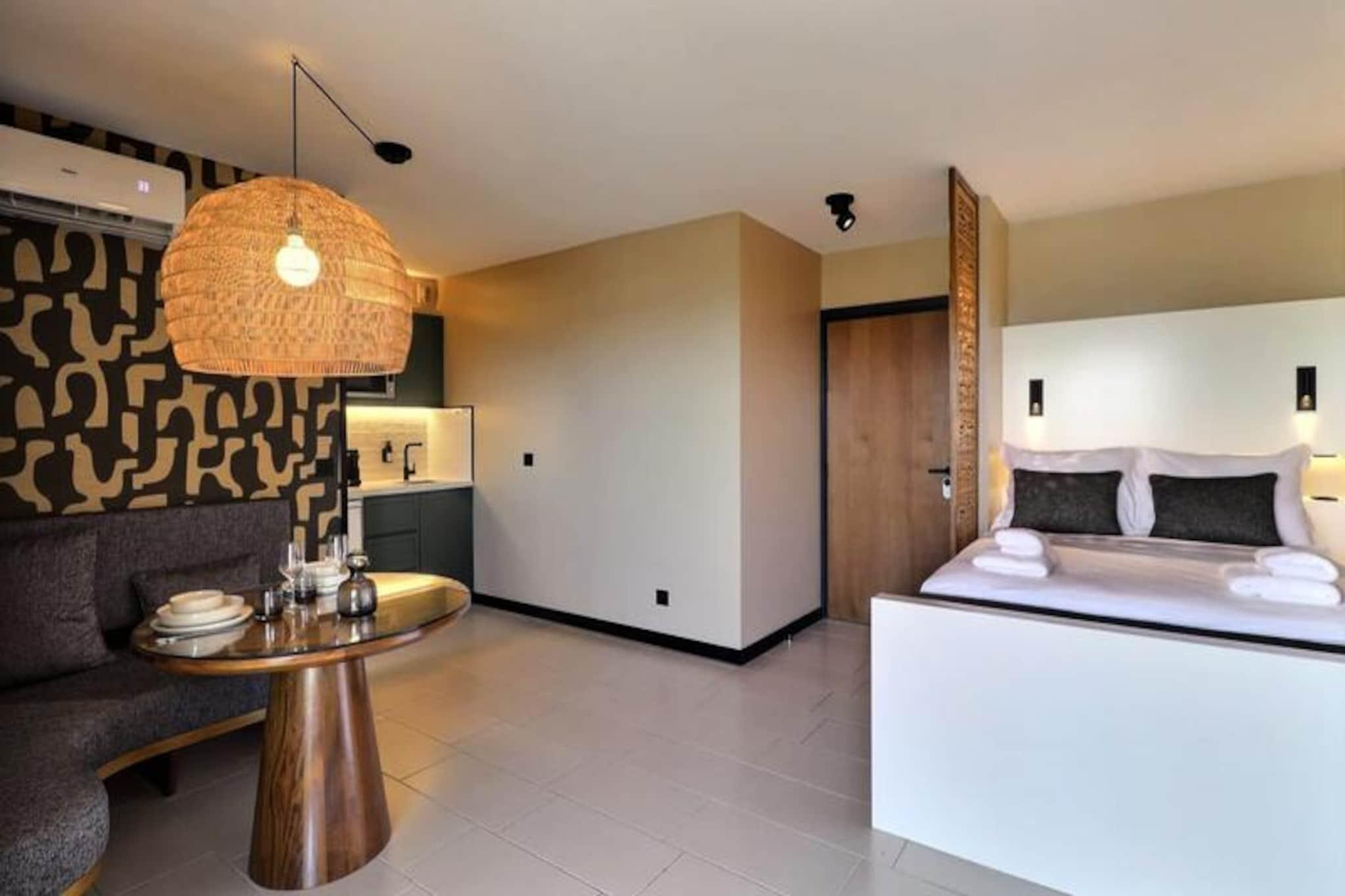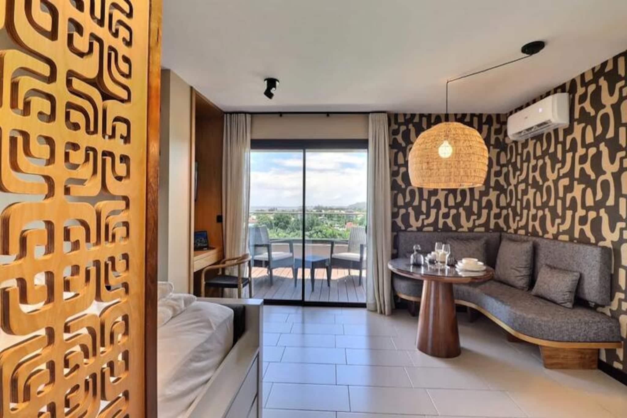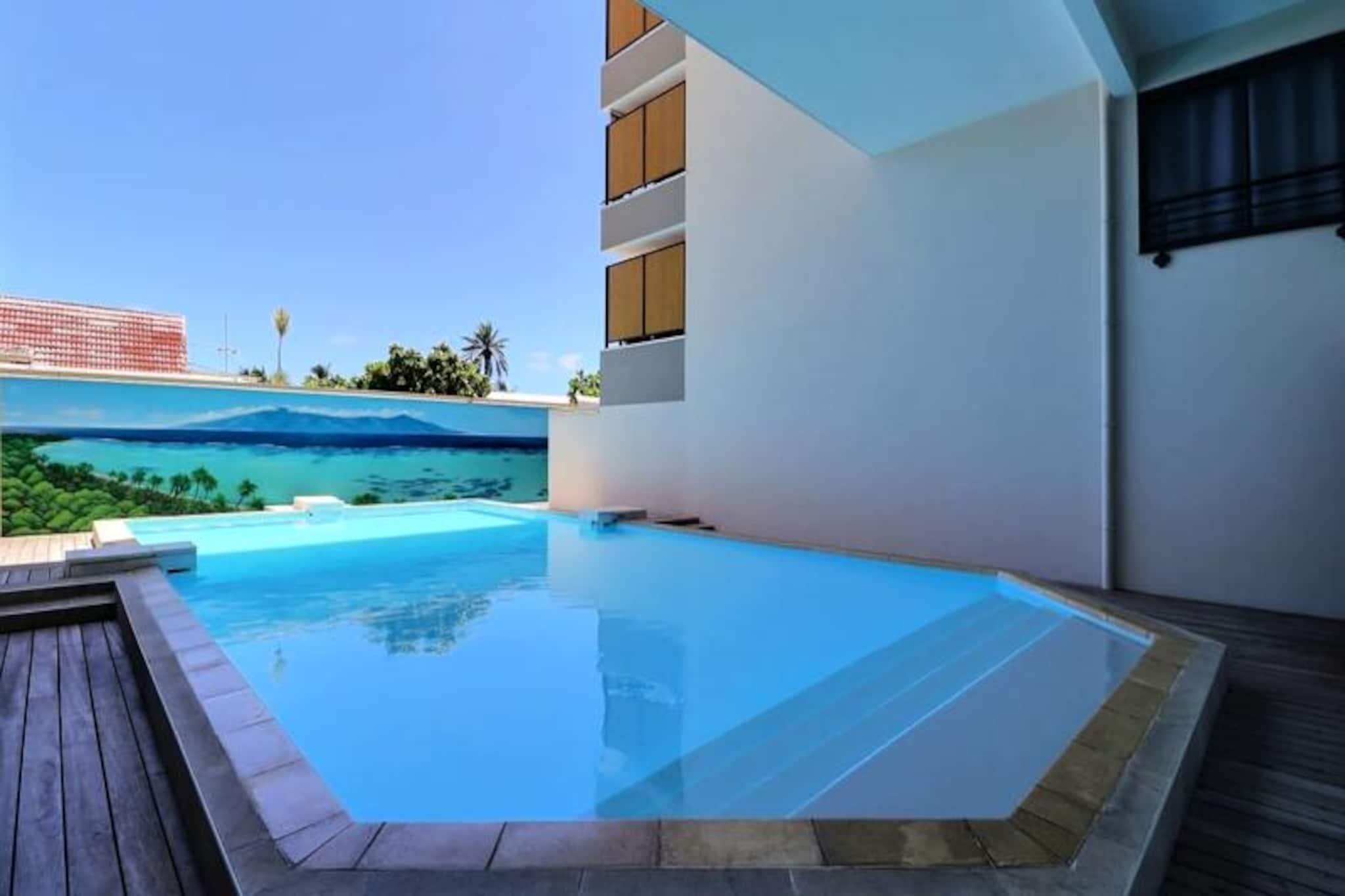 Højt over Papeetes pulserende gader tilbyder Mahana Suite en betagende tilflugtssted, hvor bylandskaber møder den turkisblå lagune og frodige bjerge. Beliggende på 8. sal i den nyrenoverede Lagon Bleu-residens inviterer dette moderne tilflugtssted dig til at fordybe dig i Polynesiens skønhed, mens du nyder komforten ved et moderne liv. Fra den panoramiske terrasse kan du se solen stå op over havet eller byens lys funkle mod nattehimlen - en udsigt, der føles som et levende postkort hvert øjeblik af dit ophold.\n\nTræd indenfor og oplev et rum designet til afslapning og elegance. Suiten har aircondition, hvilket sikrer komfort i det tropiske klima, og har en raffineret indretning med omhyggelige finish. Den lyse stue åbner ud til terrassen og skaber en problemfri forbindelse mellem indendørs og udendørs ophold. Et hyggeligt soveområde, adskilt af en elegant dekorativ skillevæg, tilbyder privatliv, mens det moderne køkken er udstyret med alt, hvad du behøver, inklusive komfur, kaffemaskine og vaskemaskine. Højhastigheds-Wi-Fi og et smart-tv sørger for underholdning og bekvemmelighed, hvilket gør denne suite ideel til både ferie- og forretningsrejsende.\n\nGæster i Mahana Suite har også eksklusiv adgang til faciliteterne på Lagon Bleu-residensen. Køl af i swimmingpoolen under den tahitiske sol eller få energi i det veludstyrede fitnesscenter. Uanset om du er her for at udforske Polynesiens vidundere eller blot slappe af, tilbyder denne residens den perfekte balance mellem urban elegance og ø-charme.\n\nMed sin uovertrufne beliggenhed, fantastiske udsigt og luksuriøse faciliteter er Mahana Suite din indgang til at opleve Papeetes magi i stil og komfort.