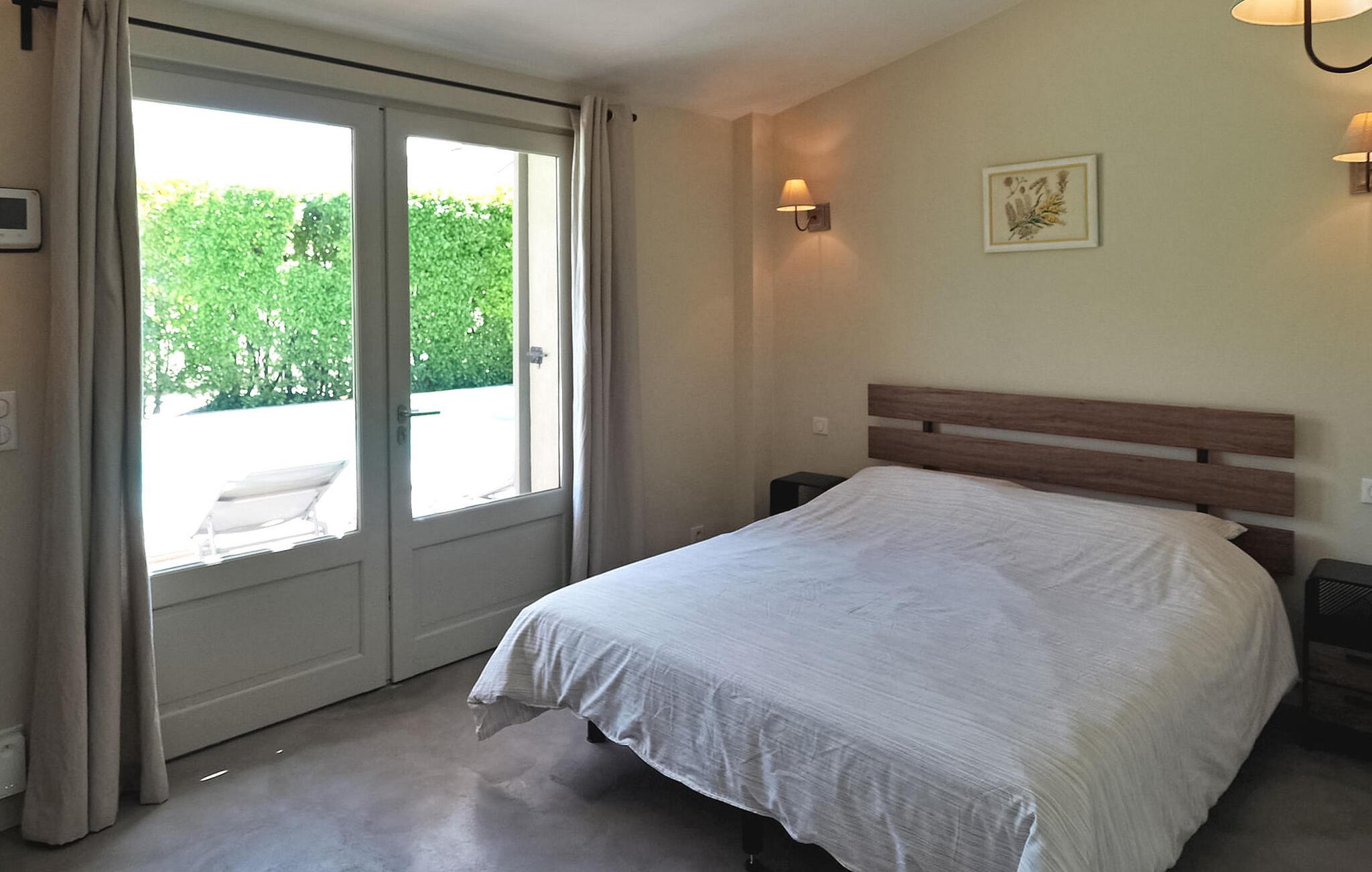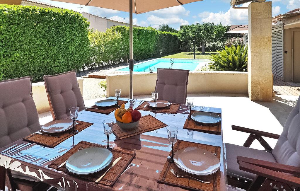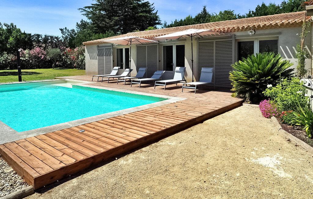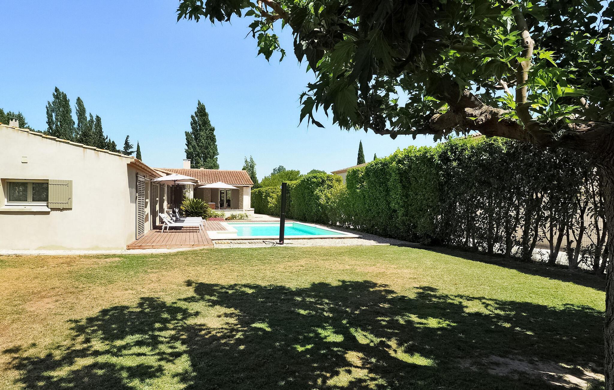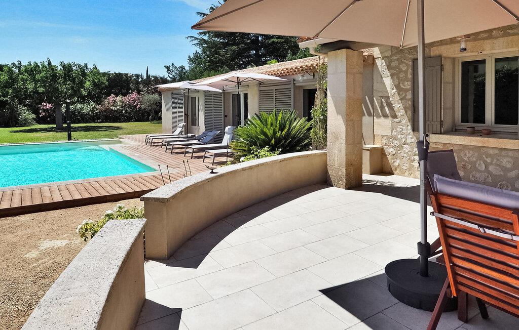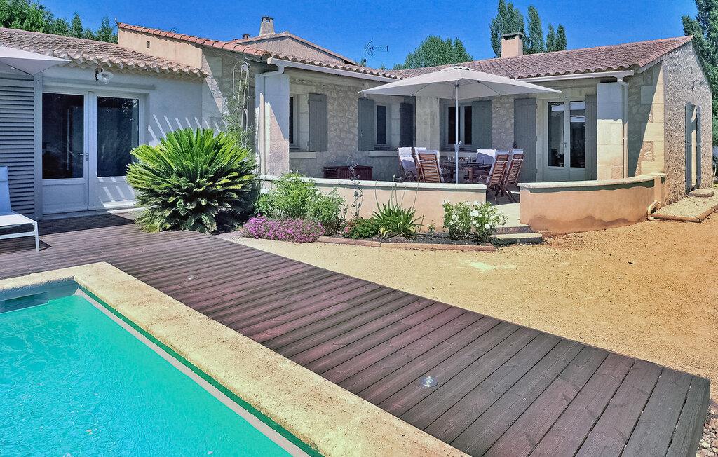 Feriehuset Paradou i Alpilles, Provence ligger tæt på landsbyens centrum. Denne en-etagers ejendom har ekspansive karnapper, der fører til en overdækket terrasse og et privat poolområde. Huset består af et køkken med aircondition med en central ø, spiseplads og tv-stue, begge med aircondition. Køkkenet er udstyret med diverse hårde hvidevarer. Værelserne med aircondition har alle eget badeværelse. Udenfor omfatter ejendommen en privat swimmingpool (9,5 mx 4,5 m), liggestole, en solenergibruser og en spiseterrasse. Beundre springvandet med fisk på parkeringsområdet, men vær forsigtig med små børn omkring springvandet. Den autonome plæneklipper må ikke flyttes eller blokeres under dens klippekredsløb, og det er naturligvis forbudt at klatre på den. Huset er ideelt placeret ved krydset mellem alle Alpilles kommuner for at opdage Alpilles. Paradou er en charmerende renoveret rolig landsby, dens trafik er afdæmpet der, cykelstier og cykeludlejning på stedet. Afgang af vandretur og adgang til Alpilles-massivet fra landsbyen. Massif du Luberon ca. 1 times kørsel mod øst og Nîmes mod vest. Strandene i Saintes-Maries-de-la-Mer ligger 60 km derfra. I nærheden i landsbyen: Bageri, slagter, supermarked, bar, cykeludlejning, frisør, tirsdag morgen marked, arrangementer i sommersæsonen.