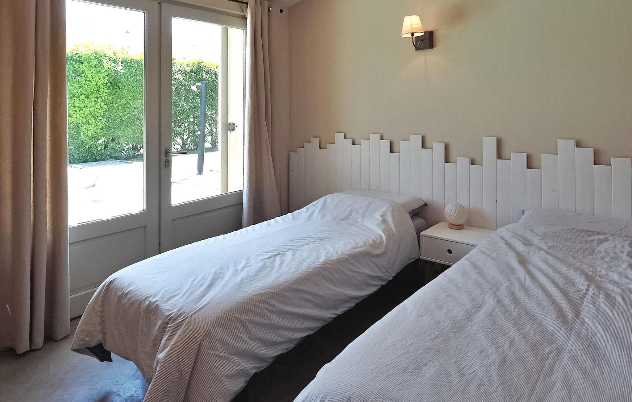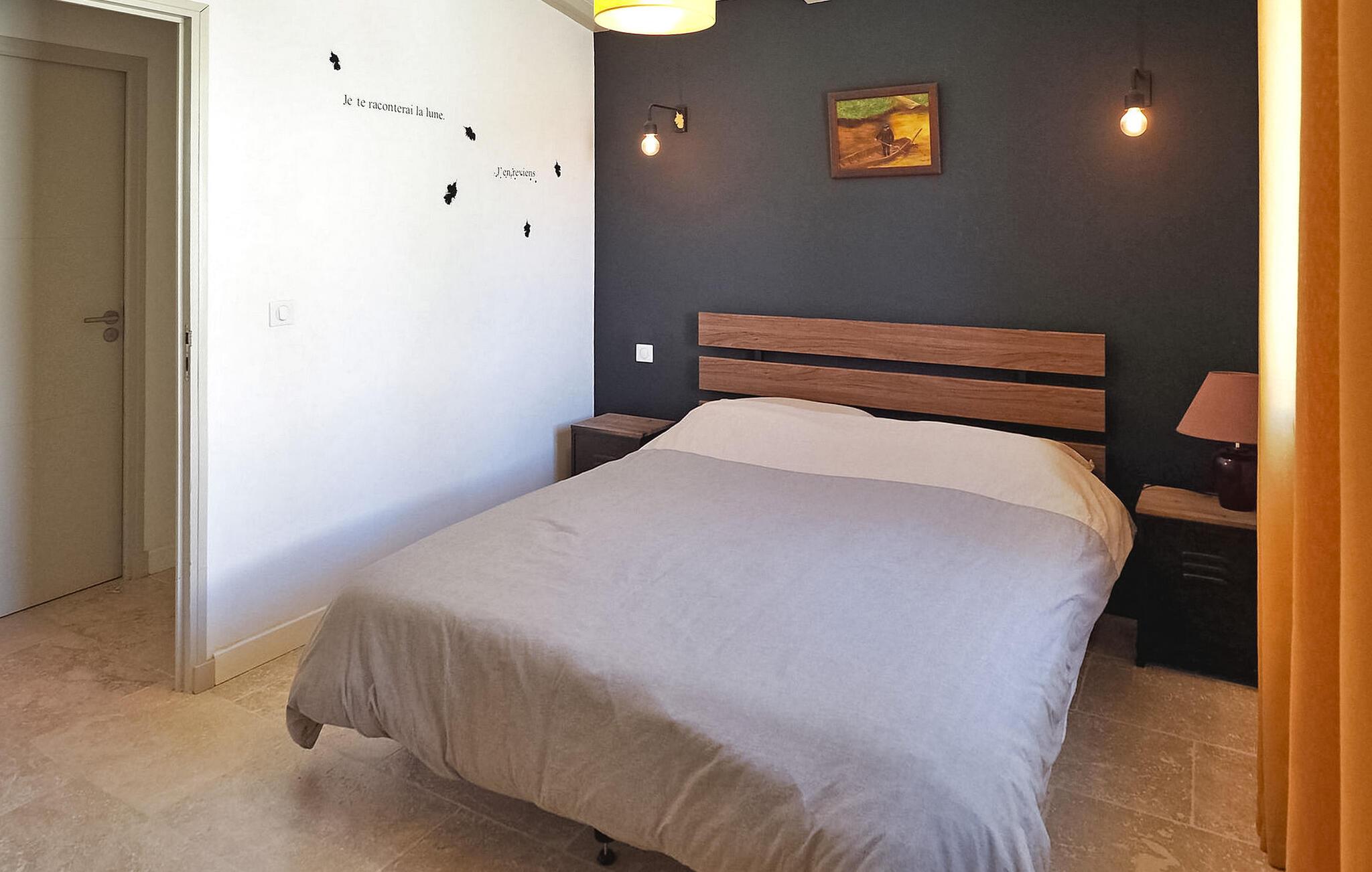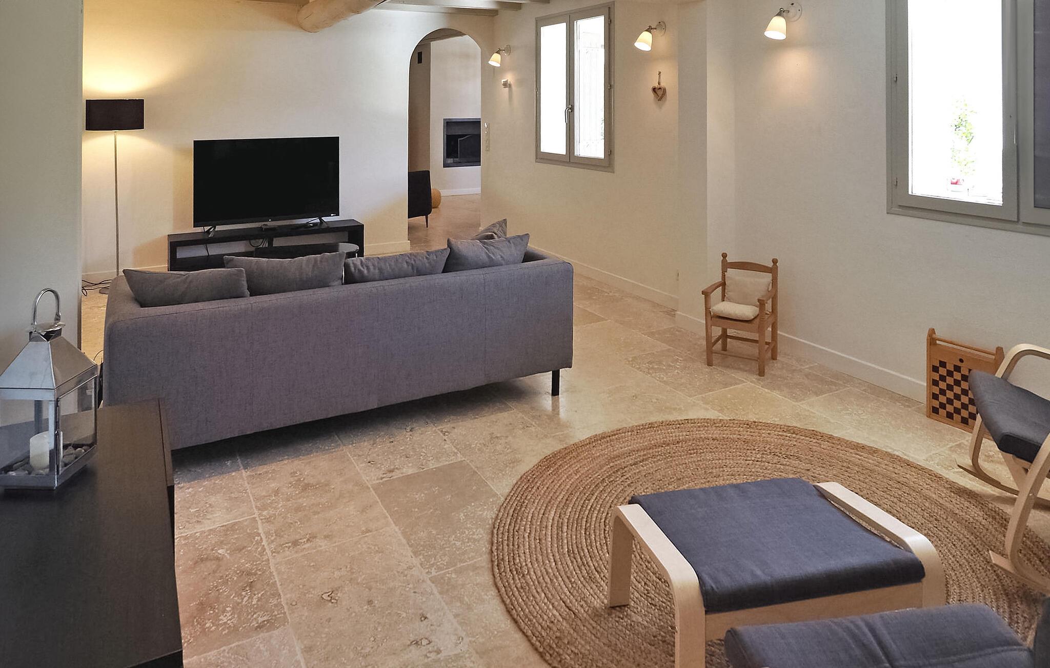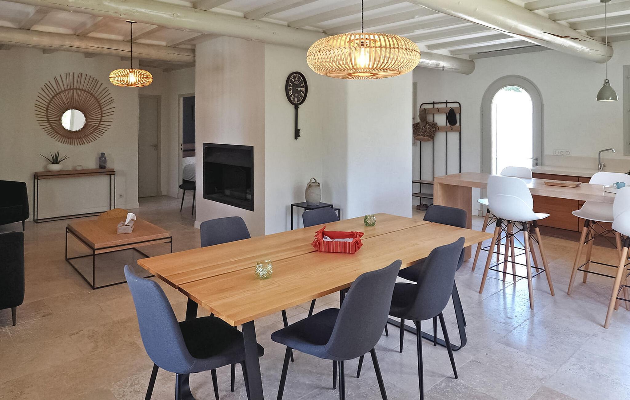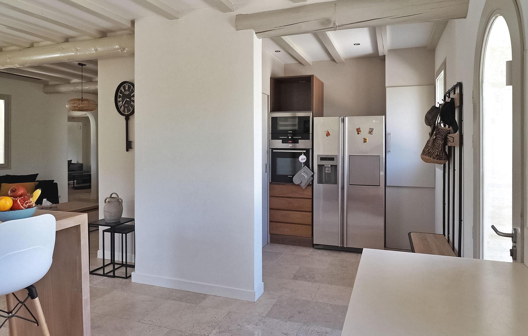 Feriehuset Paradou i Alpilles, Provence ligger tæt på landsbyens centrum. Denne en-etagers ejendom har ekspansive karnapper, der fører til en overdækket terrasse og et privat poolområde. Huset består af et køkken med aircondition med en central ø, spiseplads og tv-stue, begge med aircondition. Køkkenet er udstyret med diverse hårde hvidevarer. Værelserne med aircondition har alle eget badeværelse. Udenfor omfatter ejendommen en privat swimmingpool (9,5 mx 4,5 m), liggestole, en solenergibruser og en spiseterrasse. Beundre springvandet med fisk på parkeringsområdet, men vær forsigtig med små børn omkring springvandet. Den autonome plæneklipper må ikke flyttes eller blokeres under dens klippekredsløb, og det er naturligvis forbudt at klatre på den. Huset er ideelt placeret ved krydset mellem alle Alpilles kommuner for at opdage Alpilles. Paradou er en charmerende renoveret rolig landsby, dens trafik er afdæmpet der, cykelstier og cykeludlejning på stedet. Afgang af vandretur og adgang til Alpilles-massivet fra landsbyen. Massif du Luberon ca. 1 times kørsel mod øst og Nîmes mod vest. Strandene i Saintes-Maries-de-la-Mer ligger 60 km derfra. I nærheden i landsbyen: Bageri, slagter, supermarked, bar, cykeludlejning, frisør, tirsdag morgen marked, arrangementer i sommersæsonen.