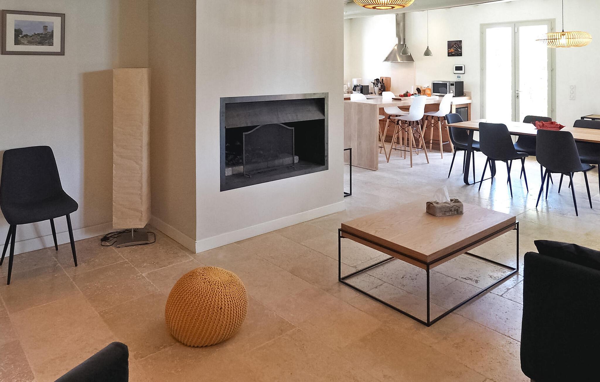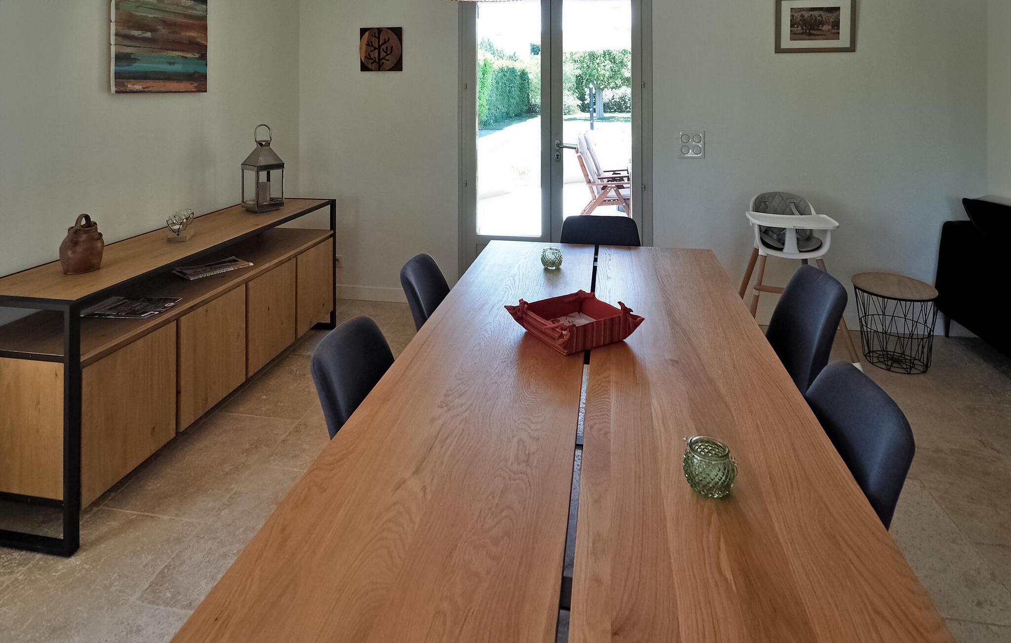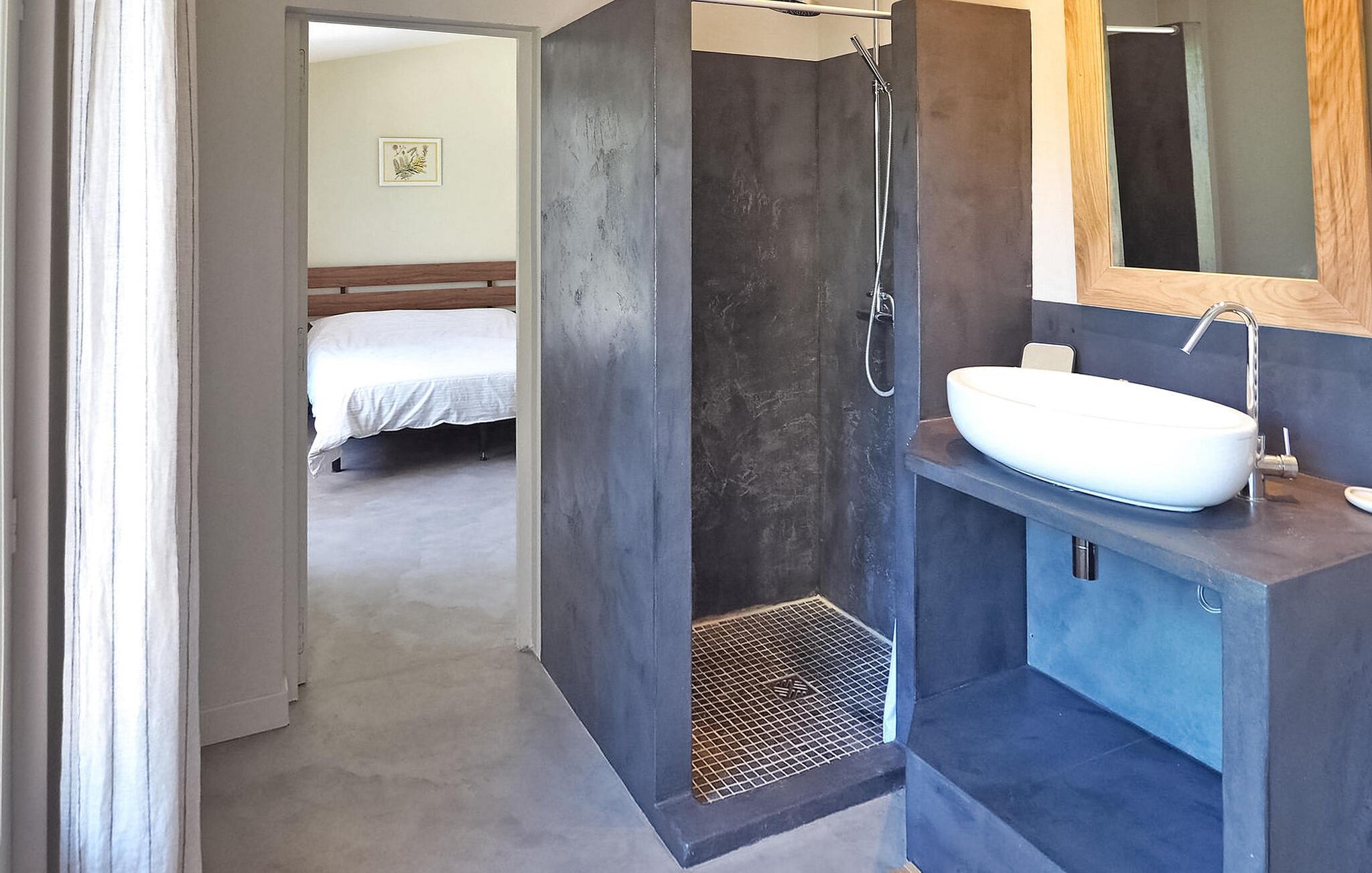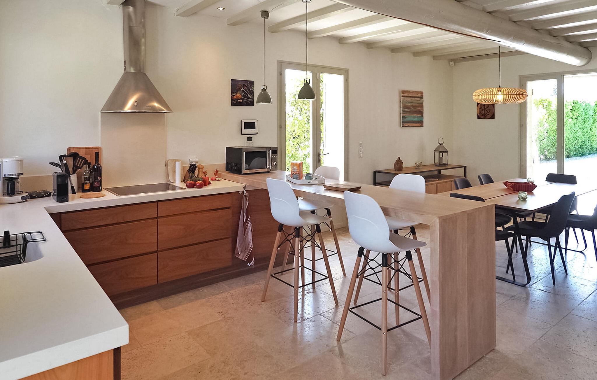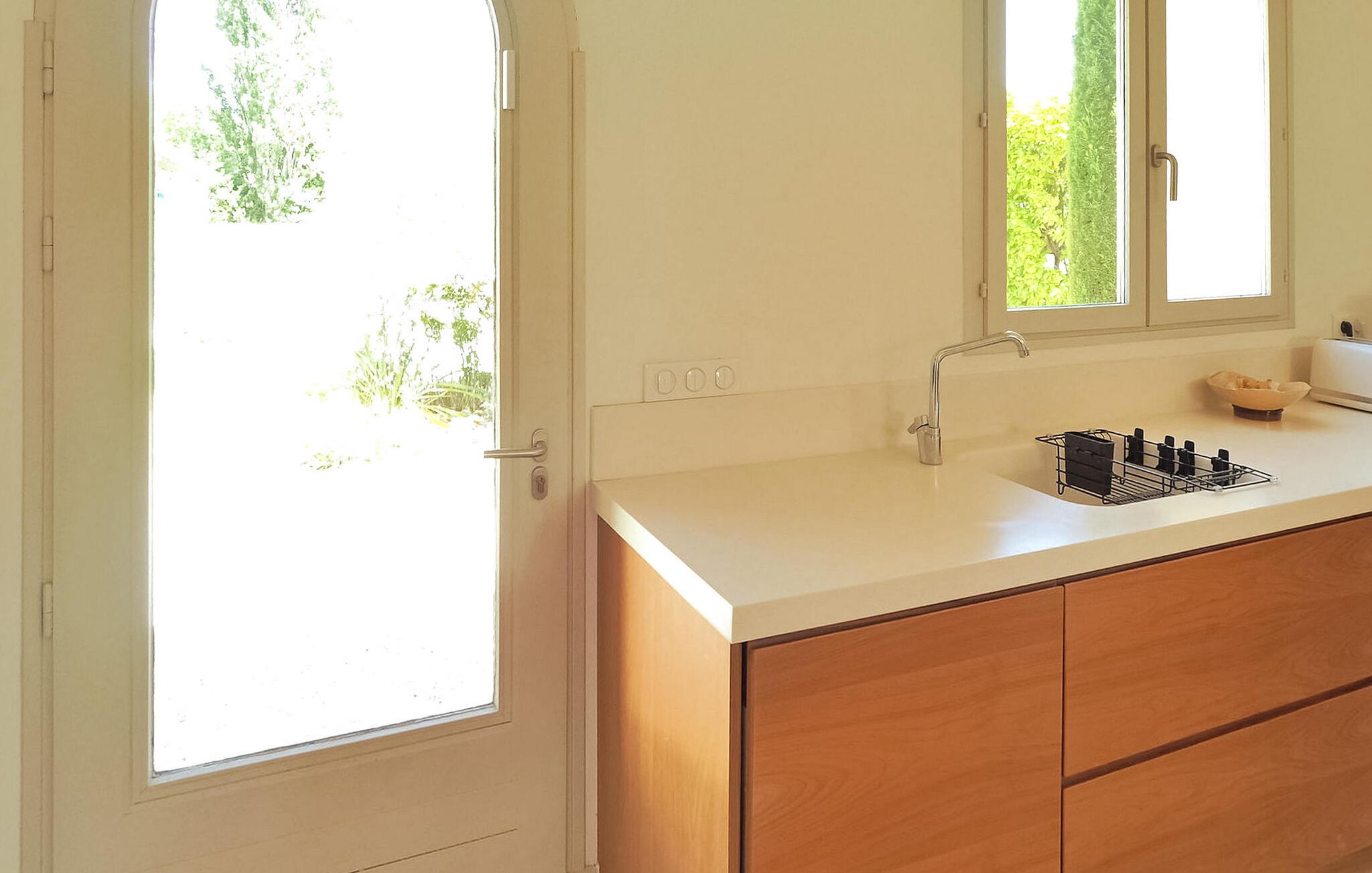 Feriehuset Paradou i Alpilles, Provence ligger tæt på landsbyens centrum. Denne en-etagers ejendom har ekspansive karnapper, der fører til en overdækket terrasse og et privat poolområde. Huset består af et køkken med aircondition med en central ø, spiseplads og tv-stue, begge med aircondition. Køkkenet er udstyret med diverse hårde hvidevarer. Værelserne med aircondition har alle eget badeværelse. Udenfor omfatter ejendommen en privat swimmingpool (9,5 mx 4,5 m), liggestole, en solenergibruser og en spiseterrasse. Beundre springvandet med fisk på parkeringsområdet, men vær forsigtig med små børn omkring springvandet. Den autonome plæneklipper må ikke flyttes eller blokeres under dens klippekredsløb, og det er naturligvis forbudt at klatre på den. Huset er ideelt placeret ved krydset mellem alle Alpilles kommuner for at opdage Alpilles. Paradou er en charmerende renoveret rolig landsby, dens trafik er afdæmpet der, cykelstier og cykeludlejning på stedet. Afgang af vandretur og adgang til Alpilles-massivet fra landsbyen. Massif du Luberon ca. 1 times kørsel mod øst og Nîmes mod vest. Strandene i Saintes-Maries-de-la-Mer ligger 60 km derfra. I nærheden i landsbyen: Bageri, slagter, supermarked, bar, cykeludlejning, frisør, tirsdag morgen marked, arrangementer i sommersæsonen.