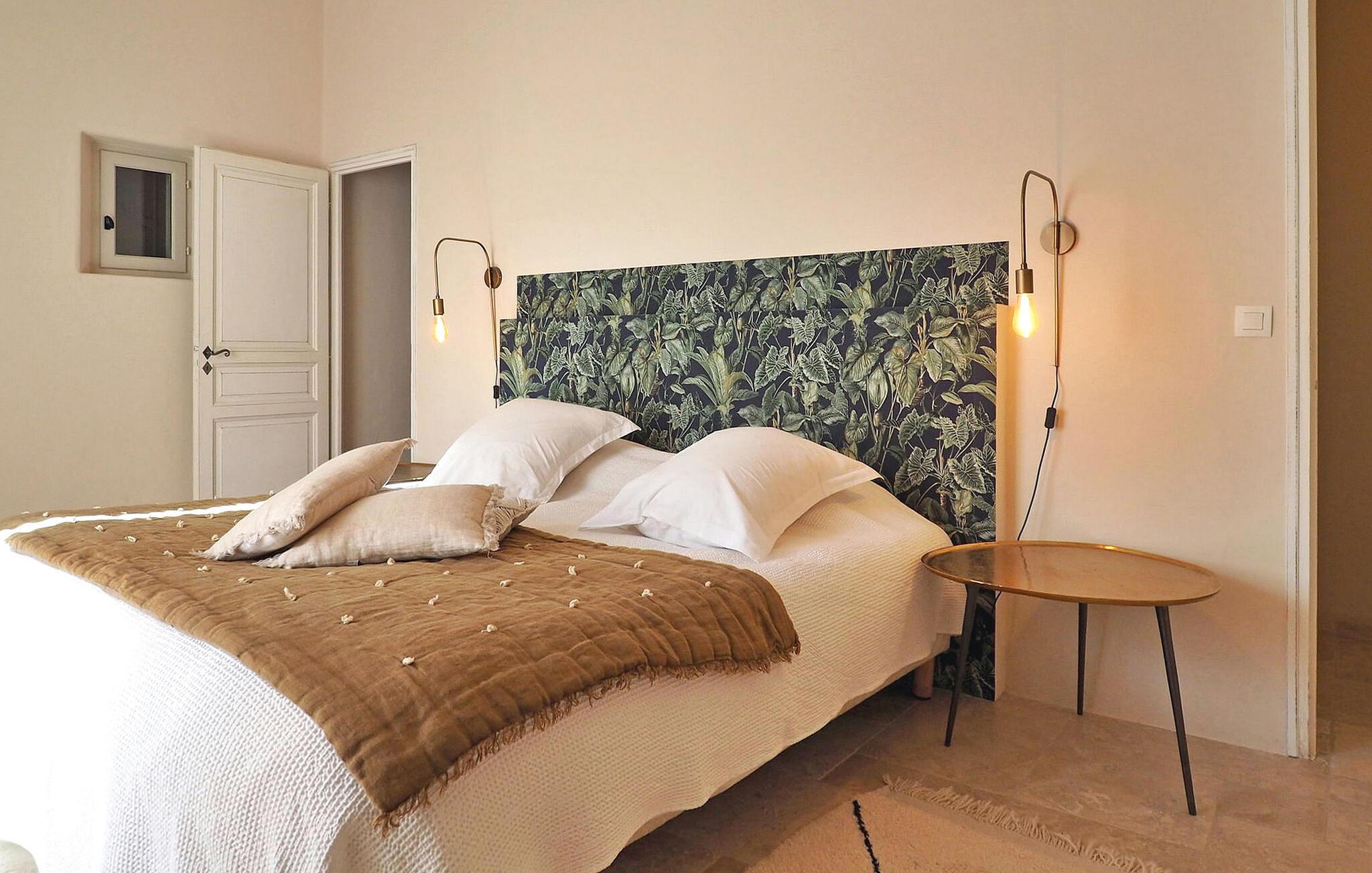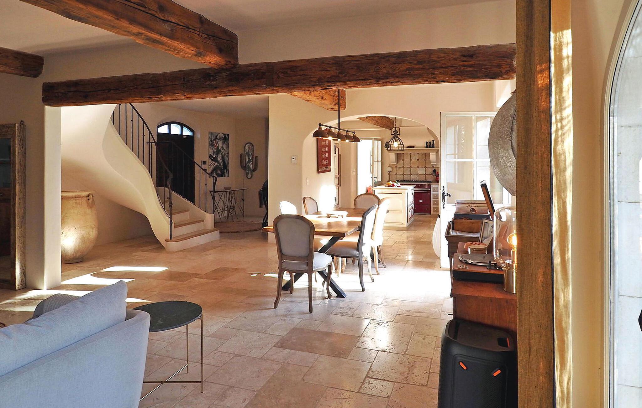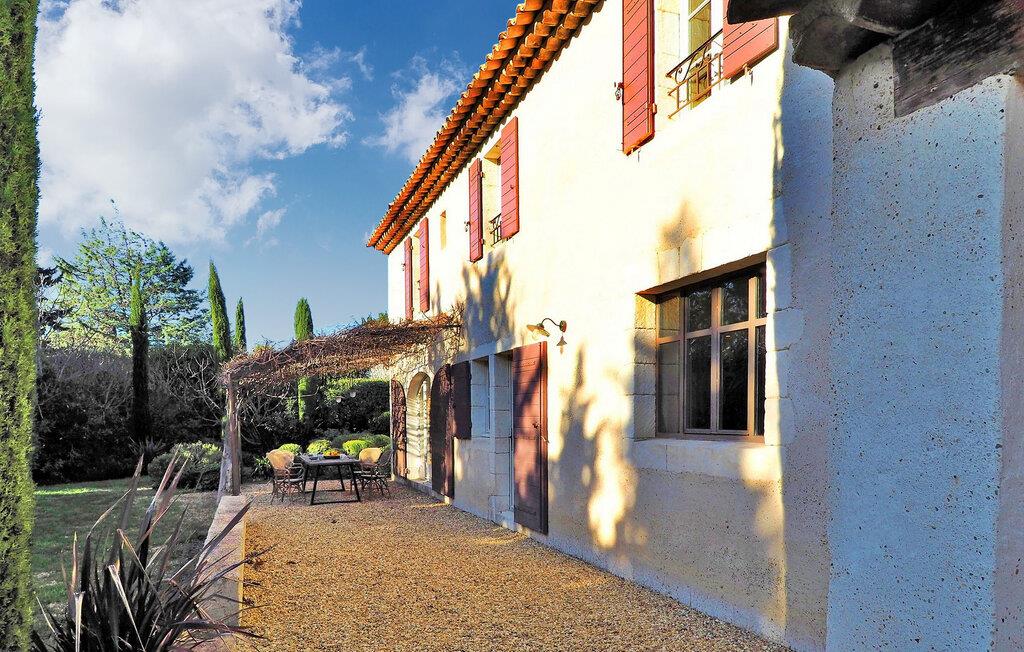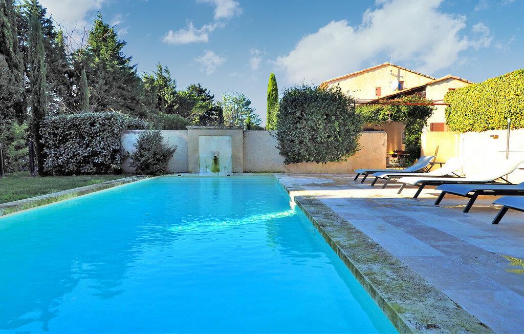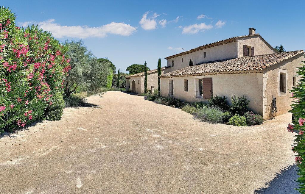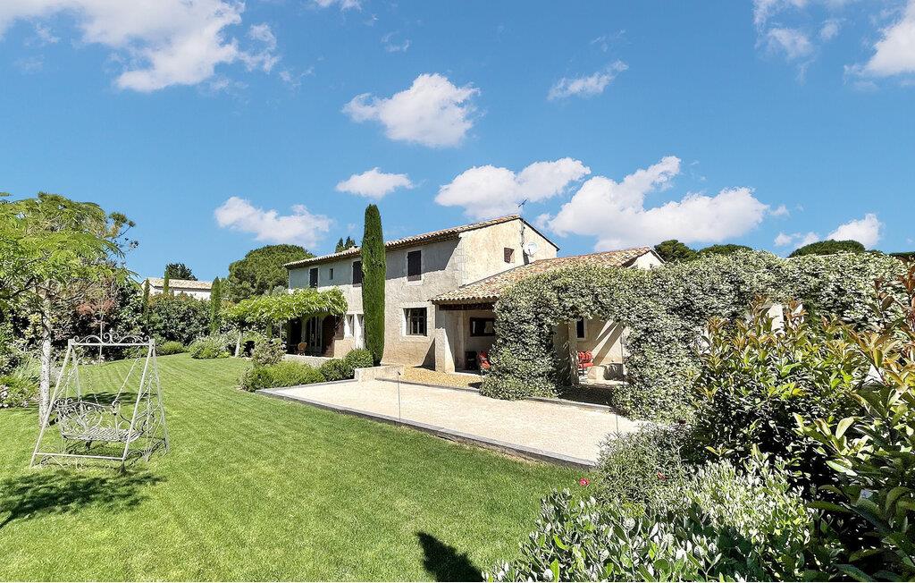 Dette store landsted med privat pool er bekvemt beliggende nær landsbyen Paradou landsby i Provence. Stueetagen har en indgang med toilet og vaskerum. Et åbent opholdsrum inkluderer et køkken med spisefaciliteter. Stueetagen er også vært for en master suite med en dobbeltseng og et privat badeværelse med badekar, bruseniche, dobbelt håndvask og toilet. På øverste etage er der fire soveværelser med dobbeltsenge og private bruserum eller et fælles badeværelse. Udenfor har en terrasse i skyggen af blåregn et bord og 12 stole, mens en anden overdækket terrasse har plads til havemøbler til 8. Derudover byder en separat overdækket terrasse på bordfodbold og dart sammen med en bowlingbane. Adgang til den indhegnede swimmingpool er sikret med to porte, og der er 6 liggestole og 2 liggestole til rådighed ved poolen. Paradous butikker ligger omkring 350 m fra huset. Der er supermarked, slagter, bageri, udlejning/salg af cykler, marked tirsdag morgen og sæsonmarked fredag aften. Landsbyfestivalen Paradou afholdes den første weekend i september med tyrefægtning, bold og kæmpe paella. En attraktiv ejendom med stor have og privat pool, tæt på lokale faciliteter.