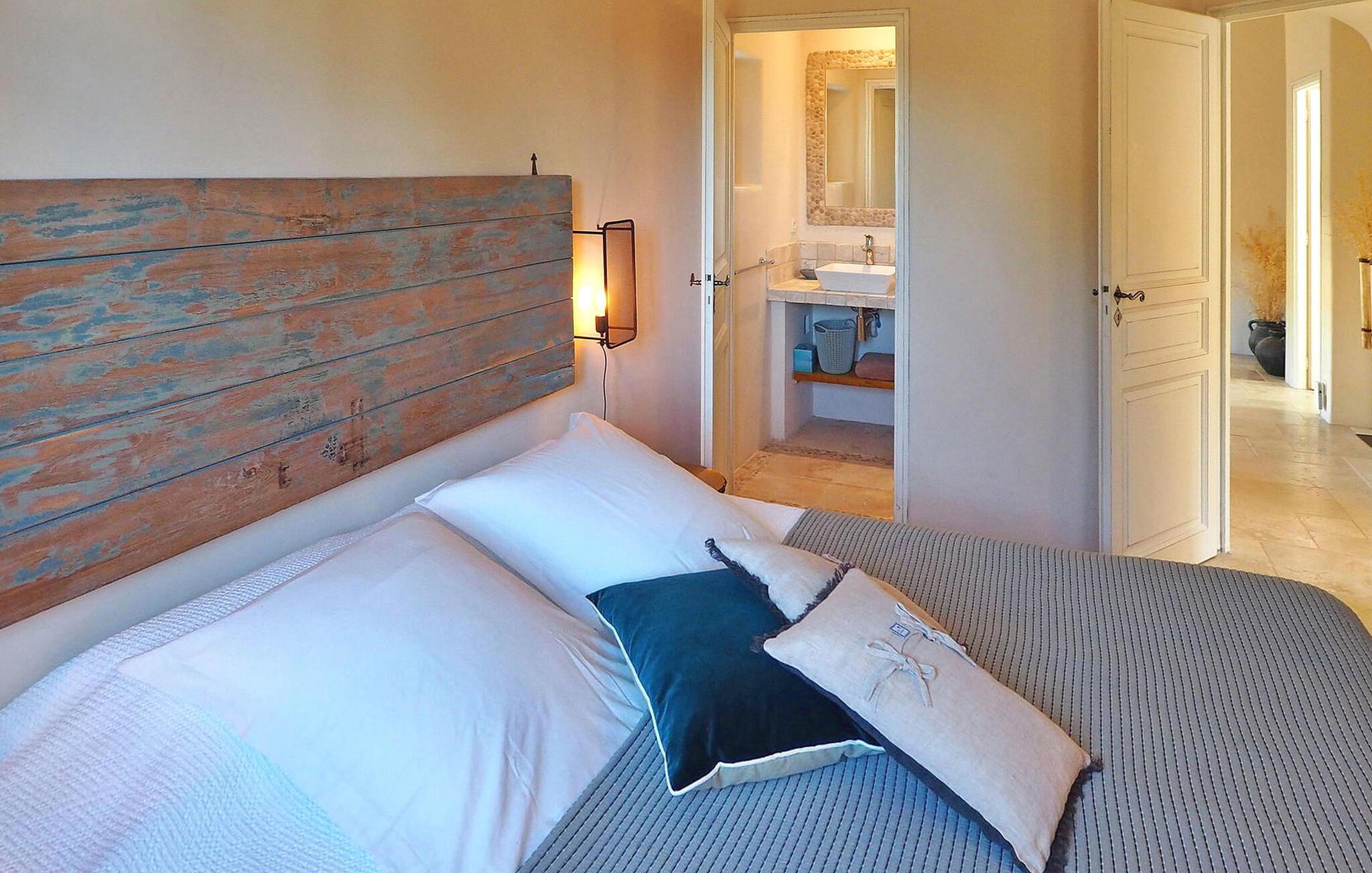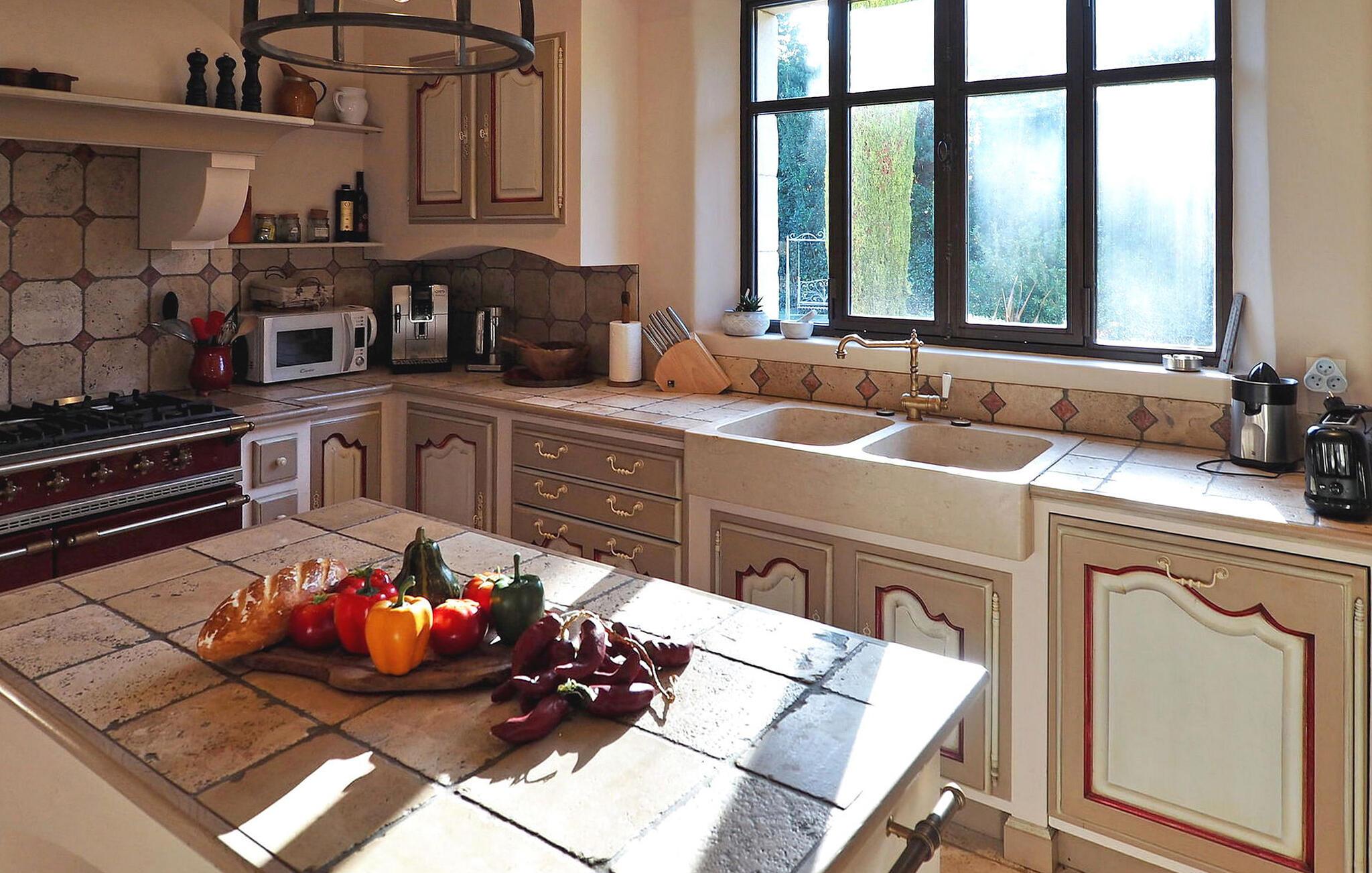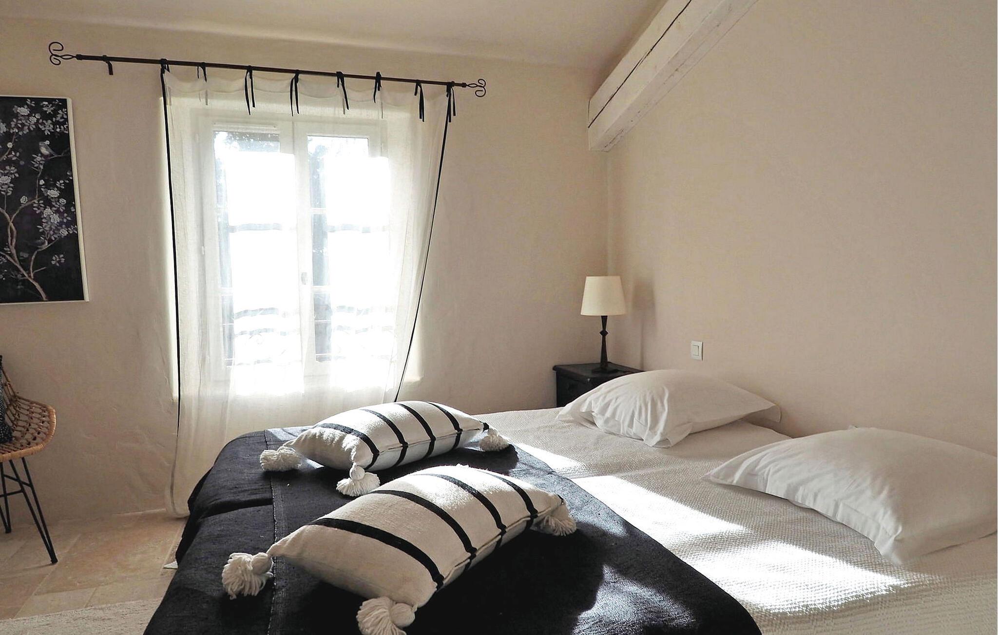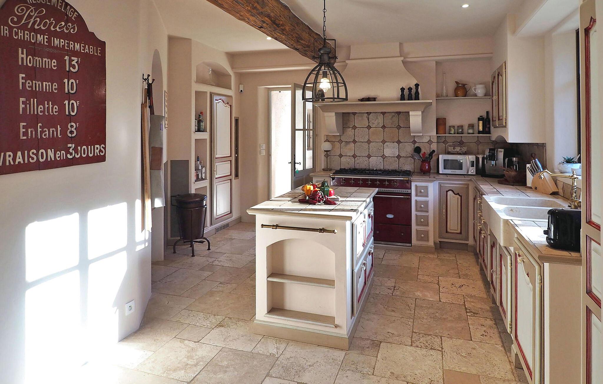 Dette store landsted med privat pool er bekvemt beliggende nær landsbyen Paradou landsby i Provence. Stueetagen har en indgang med toilet og vaskerum. Et åbent opholdsrum inkluderer et køkken med spisefaciliteter. Stueetagen er også vært for en master suite med en dobbeltseng og et privat badeværelse med badekar, bruseniche, dobbelt håndvask og toilet. På øverste etage er der fire soveværelser med dobbeltsenge og private bruserum eller et fælles badeværelse. Udenfor har en terrasse i skyggen af blåregn et bord og 12 stole, mens en anden overdækket terrasse har plads til havemøbler til 8. Derudover byder en separat overdækket terrasse på bordfodbold og dart sammen med en bowlingbane. Adgang til den indhegnede swimmingpool er sikret med to porte, og der er 6 liggestole og 2 liggestole til rådighed ved poolen. Paradous butikker ligger omkring 350 m fra huset. Der er supermarked, slagter, bageri, udlejning/salg af cykler, marked tirsdag morgen og sæsonmarked fredag aften. Landsbyfestivalen Paradou afholdes den første weekend i september med tyrefægtning, bold og kæmpe paella. En attraktiv ejendom med stor have og privat pool, tæt på lokale faciliteter.