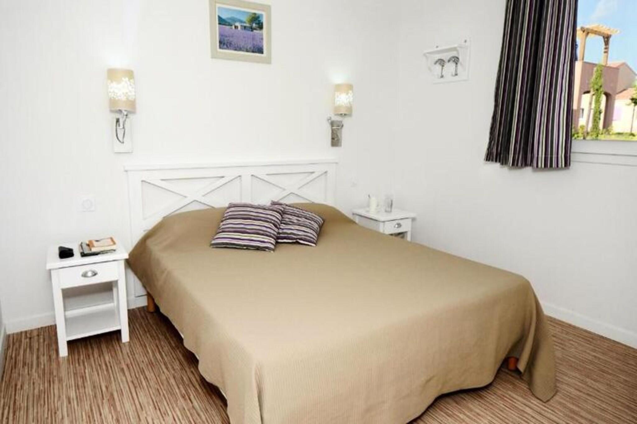 Denne provencalske ***-residens ligger i Paradou og tilbyder lejligheder fordelt i små rækkehuse på en 3 hektar stor ejendom. 2-værelses lejlighederne kan rumme op til 4 personer og har opholdsstue med udtrækssovesofa eller sovesofa til 2 personer og soveværelse med dobbeltseng. Kæledyr er tilladt (med tillæg: EURO70/ophold på 7 nætter eller mere, EURO15/nat for ophold på mindre end 7 nætter, specificeres ved reservation med opdateret vaccinationsjournal og tatovering). Boligen tilbyder en minigolfbane, et wellness-område (hammam, sauna, fitnessrum, mod et ekstra gebyr). I nærheden af ??boligen er forskellige aktiviteter mulige: golf, ridning og vandreture. Talrige provencalske festivaler og markeder opliver regionen. Boligen tilbyder også tjenester såsom vaskeri, WiFi-adgang inkluderet, cykelopbevaring og gratis udendørs parkering. Hver lejlighed har et veludstyret køkken, et badeværelse eller bruser og toilet. Der er også en terrasse. Følgende muligheder er underlagt gebyr: grill (5EURO/dag), babysæt (9EURO/dag eller 35EURO/ophold), linnedsæt (senge- og håndklæder: 23EURO/skift), kun sengetøj (16EURO /skift) og kun håndklæder (10EURO/skift). Slutrengøring er inkluderet bortset fra madlavning og opvask. Der kræves et depositum på EURO300. Turistskatten skal betales på stedet. Fjernsyn er inkluderet.