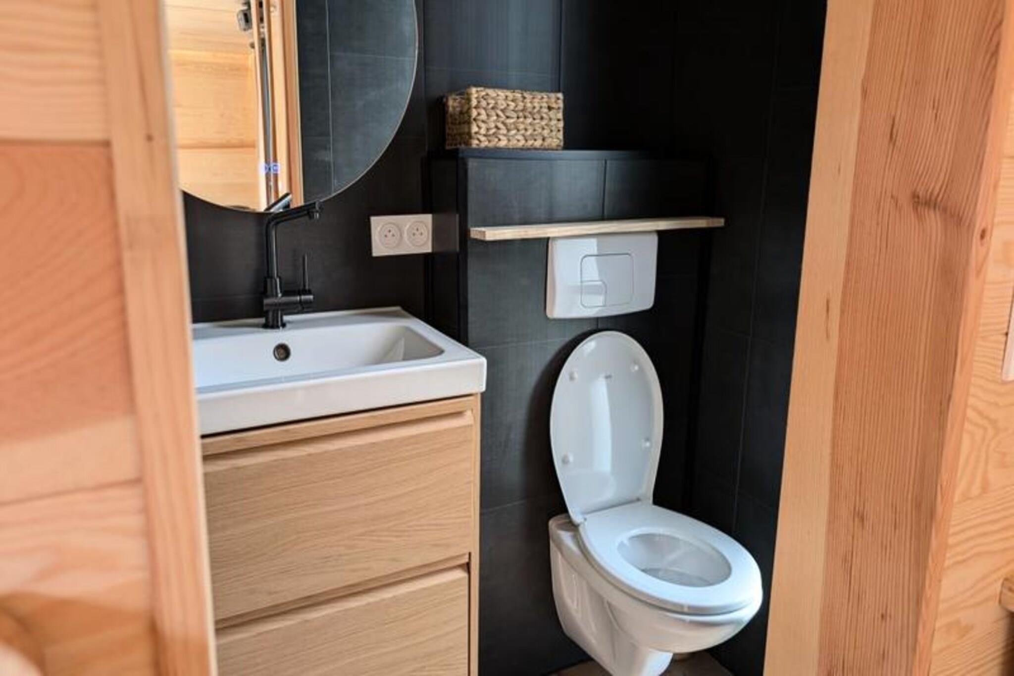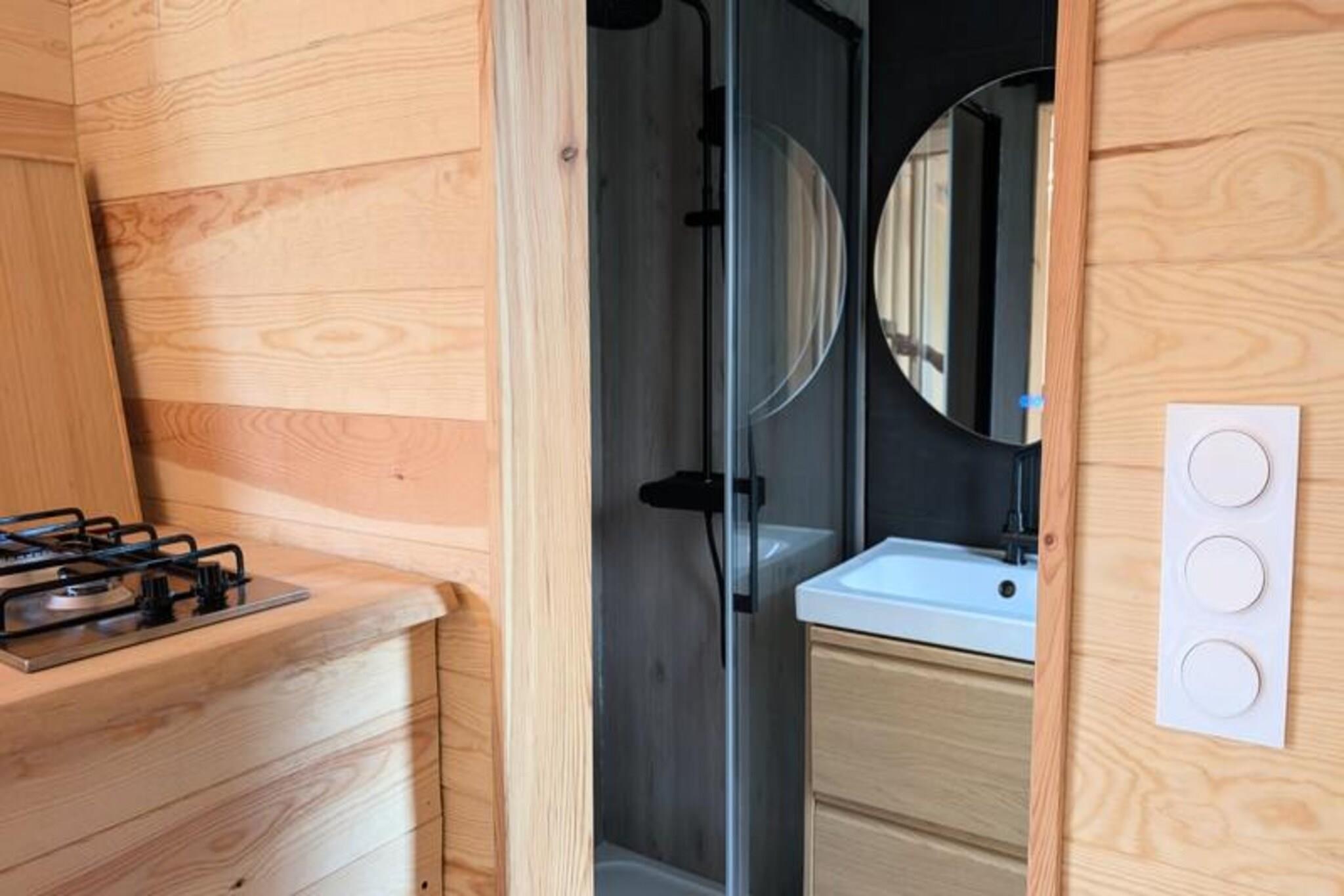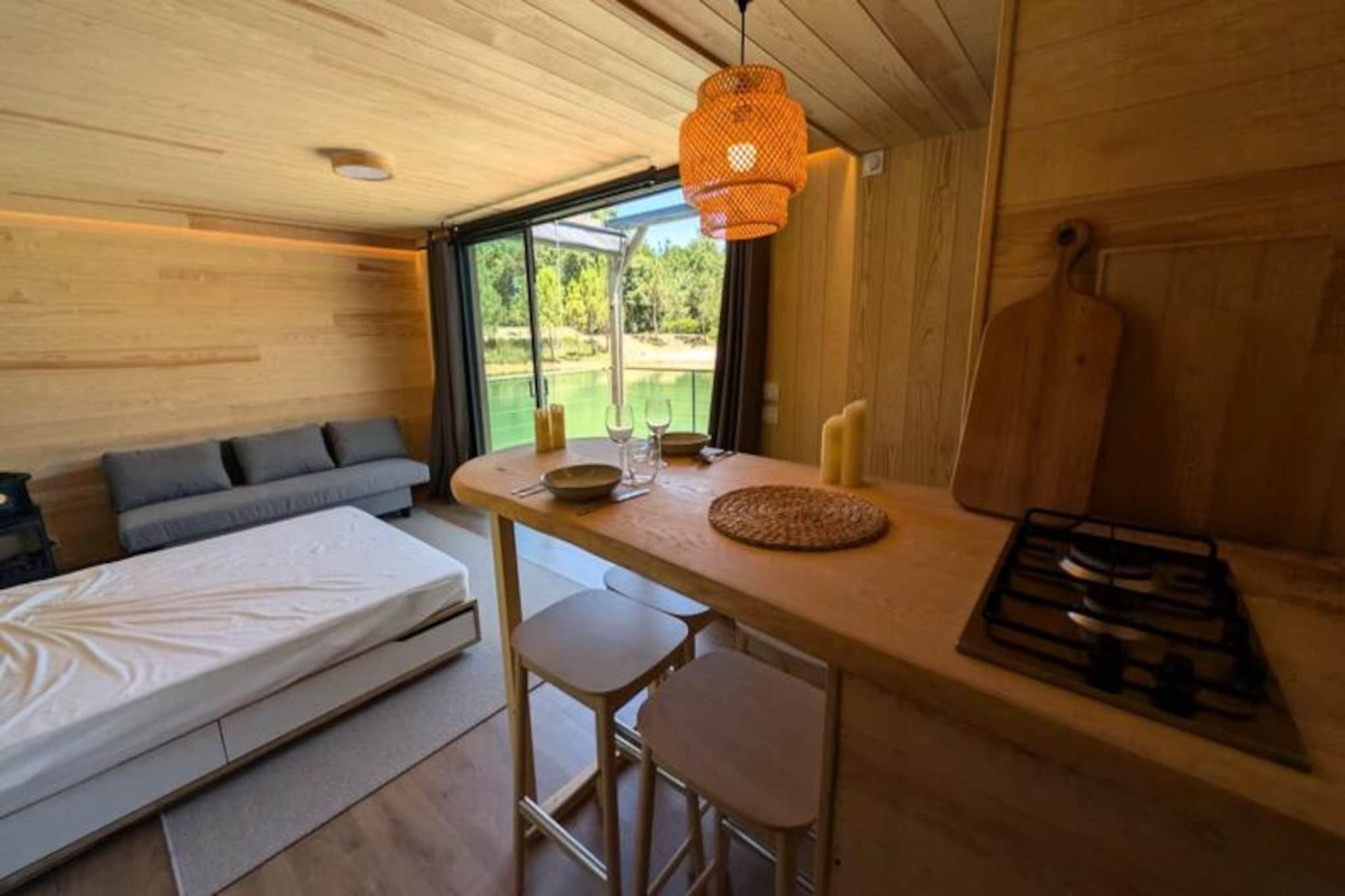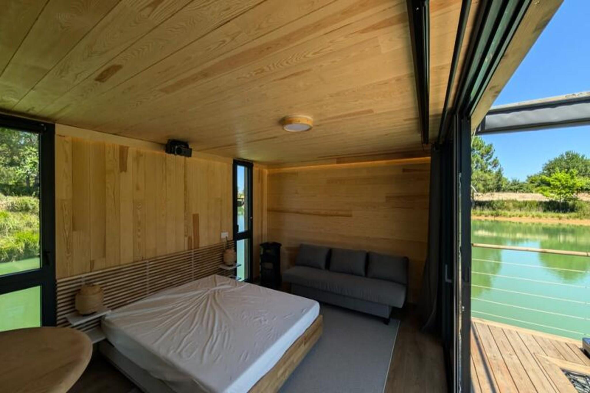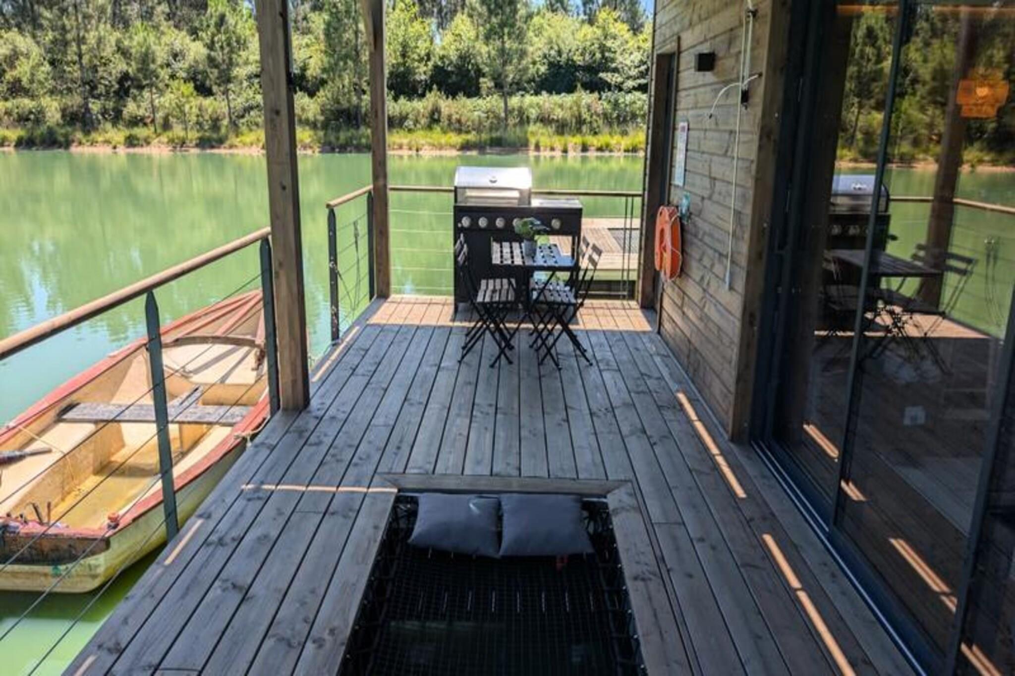 Forestil dig at flygte til en fredfyldt flydende hytte, der svajer blidt midt i en privat dam, omgivet af uberørt natur. Her hersker roen. Der er ingen veje, ingen naboer - kun den beroligende lyd af vand og det fascinerende syn af koikarper, der glider yndefuldt under dine fødder. Dette unikke tilflugtssted, der kun er tilgængeligt med motorbåd, inviterer dig til at afbryde forbindelsen fra verden og genoprette forbindelsen til livets enkle glæder. Lodgens minimalistiske design og naturlige omgivelser skaber den perfekte atmosfære til at sætte farten ned og nyde hvert øjeblik. Indenfor finder du alle bekvemmelighederne ved et moderne liv. En hyggelig dobbeltseng og en sovesofa har plads til op til fire gæster, mens det fuldt udstyrede køkken inkluderer køleskab, gaskomfur, vask og kaffemaskine. Badeværelset har bruser og miljøvenligt toilet med filtreret vand for din bekvemmelighed. Underholdning er lige ved hånden med en videoprojektor, der tilbyder Netflix, Prime Video og Disney+. Solenergi og satellit-Wi-Fi sikrer en selvforsynende, men forbundet oplevelse. Om vinteren holder et gaskomfur dig varm, mens en ventilator sørger for komfort om sommeren. Gå udenfor til din private terrasse, komplet med havemøbler, gasgrill og et ophængt net over vandet – perfekt til afslapning og afslapning i de fredelige omgivelser. Lodgens miljøbevidste design inkluderer solenergi og spildevandsrensning ved hjælp af fytoremediering, hvilket sikrer harmoni med miljøet. Ekstraudstyr som en morgenmadskurv eller et gourmet-charcuterie-bræt tilføjer et strejf af forkælelse til dit ophold. Beliggende kun en time fra Bordeaux og Bergerac, tilbyder denne afsondrede oase den ultimative flugt fra hverdagens travlhed. Uanset om du ser koikarper, lytter til vinden i træerne eller blot nyder stilheden, lover denne flydende lodge en tidløs oplevelse, hvor du kan genoprette forbindelsen til naturen og dig selv.