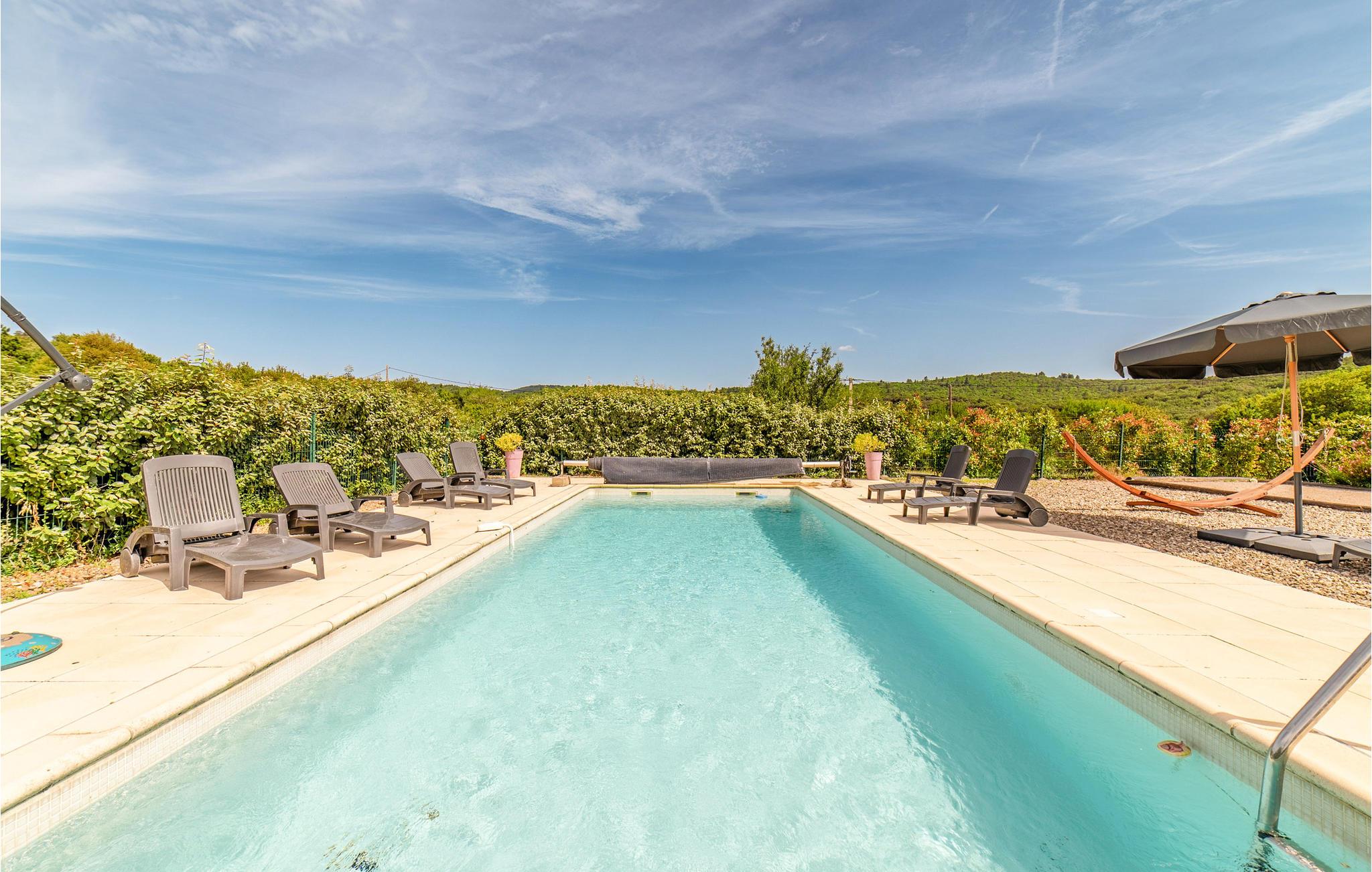 Dette skønne oprindelige bondehus i Hérault har egen pool, ugenerte rammer og en fantastisk udsigt til smuk natur.