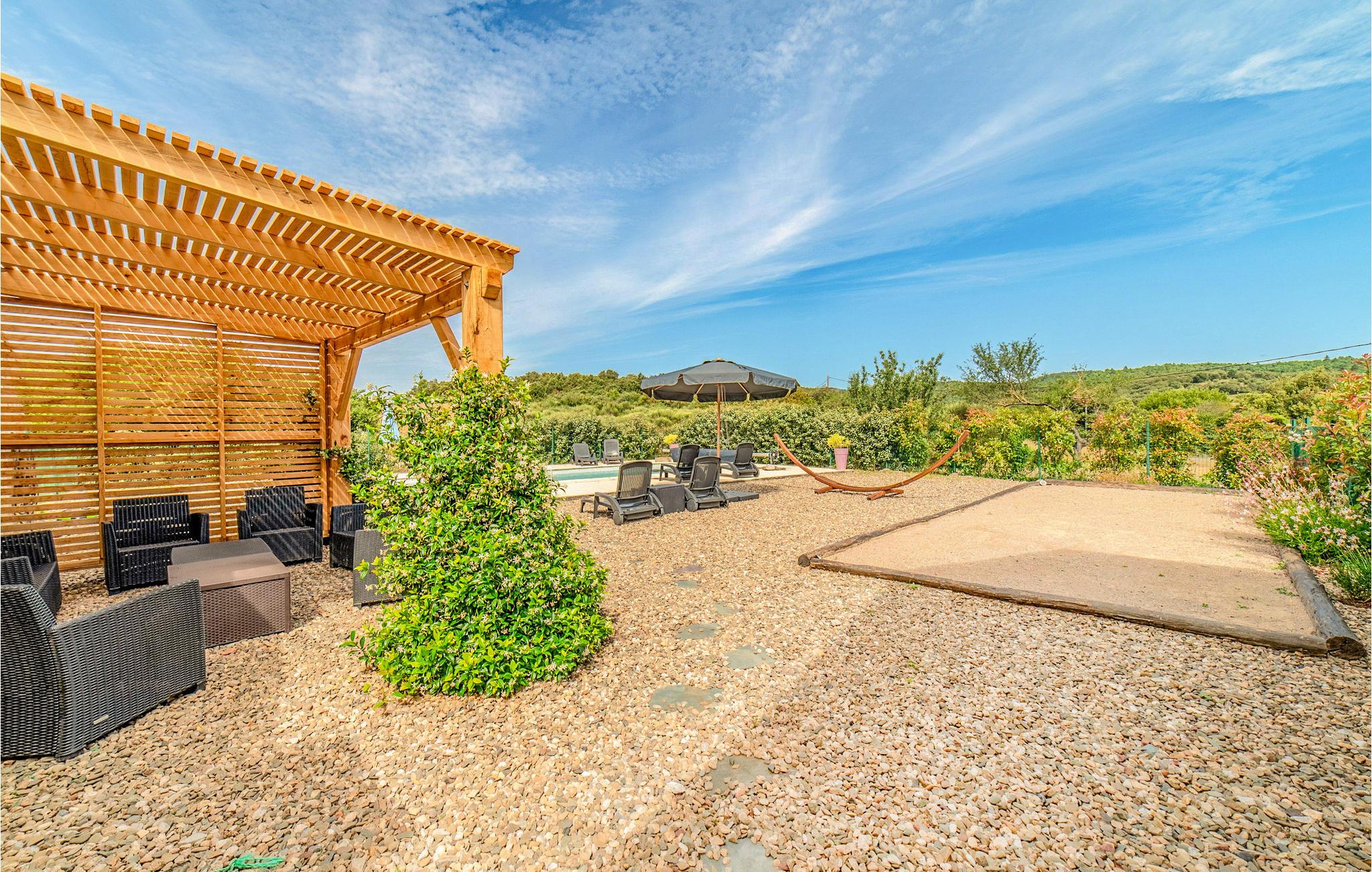 Huset ligger på Col de la Louvière i 500 meters højde, meget tæt på den charmerende vinlandsby Saint-Chinian. Området er det ideelle udgangspunkt for smukke vandreture gennem uberørt natur. Regionen er kendt for sin vinproduktion. Det tager under to timer at køre til Beziers, Narbonne, Carcassonne, Nîmes og Sète. Tag en afstikker til små maleriske byer som Olargues (31 km), Minerve (24 km) og Roquebrun (27 km). Vil I tilbringe dagen på stranden, er der kun en time til Gruissan, Valras og Vias.