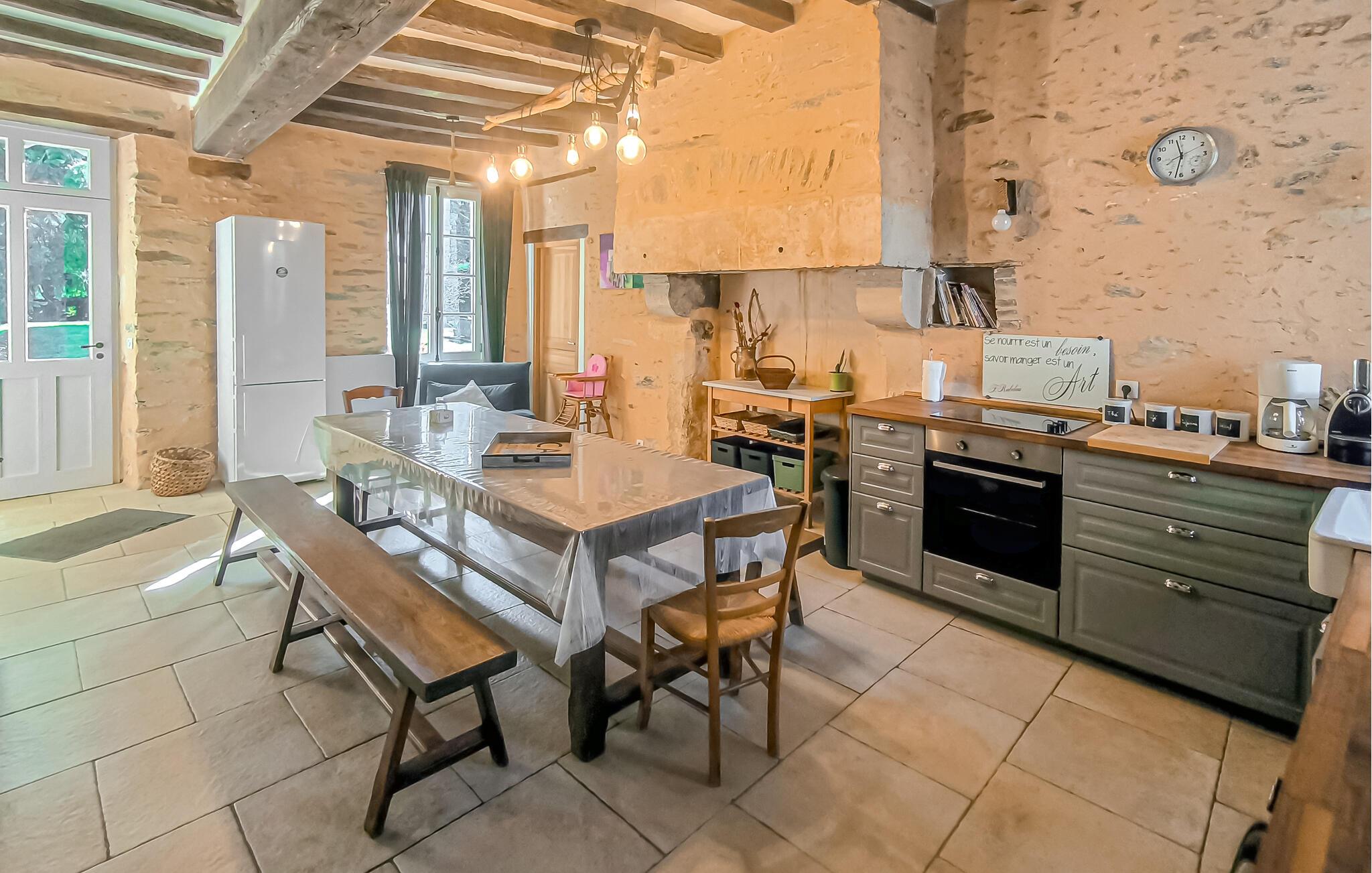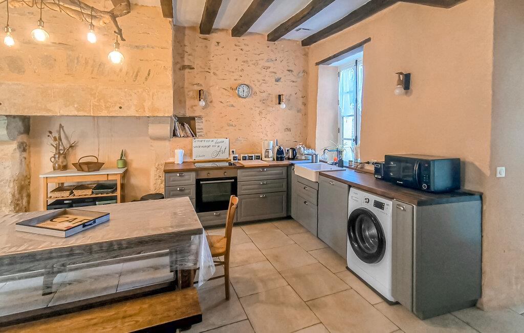 Dette indbydende hus byder jer velkommen med en harmonisk blanding af hygge og rustik charme. Imponerende træbjælkelofter, naturstensfinish og rustikke møbler skaber en atmosfære, hvor I hurtigt finder fred og ro. Slap af på sofaen med et glas vin eller vær vært for en sjov madlavningskonkurrence og nyd resultatet i godt selskab.