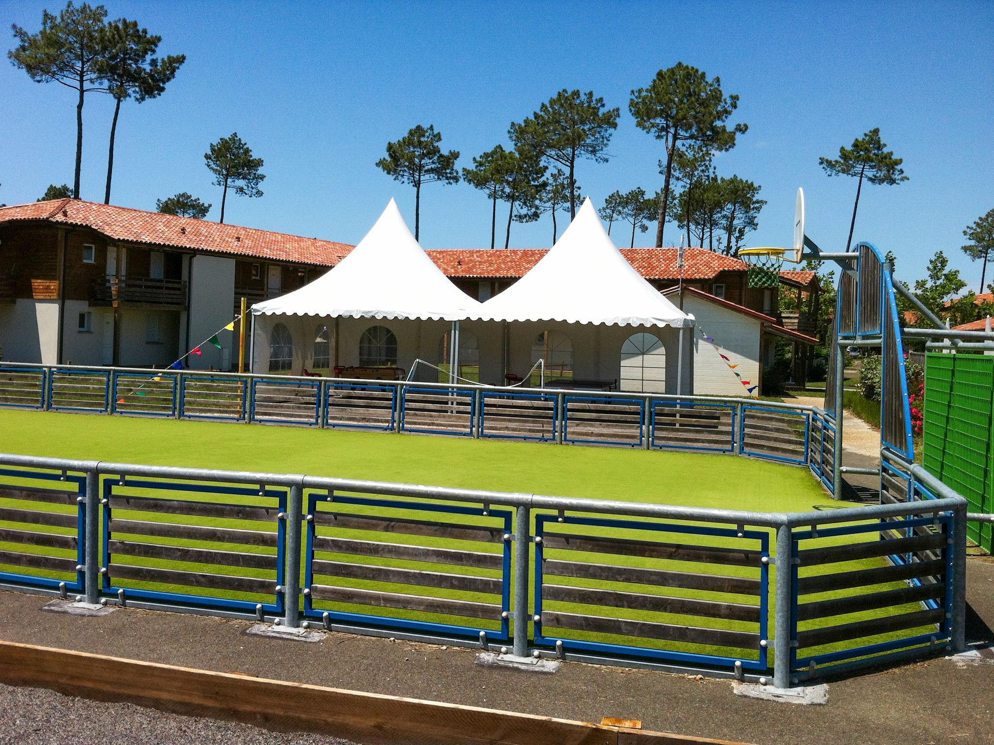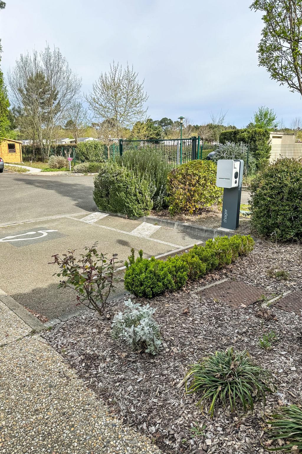 Child friendly resort "Les Cottages du Lac", surrounded by trees. 50 houses in the residence. 112 apartments in the residence. 3 km from the centre of Parentis, 9 km from the centre of Biscarrosse, 27 km from the centre of Mimizan, 18 km from the sea, 400 m from the lake. For shared use: property (fenced) with trees, 2 swimming pools heated (400 m2, seasonal availability: 01.May. - 15.Oct.). Children's pool, outdoor shower, hot tub, table tennis, boccia. In the complex: reception, bistro, WiFi, sauna (extra). Billiard table, washing machine, tumble dryer (for shared use, extra). Parking (limited number of spaces) on the premises. E-charging station. Shop 3 km, supermarket 4 km, restaurant 3 km, bus stop "Parc segot" 3 km, sandy beach "Biscarrosse-Plage" 18 km, bathing lake "Lac de Biscarrosse et Parentis" 400 m. Please note: residence with electric gates. The photograph shows a typical example. The holiday properties may differ in living space, floorplan, equipment and furnishing.