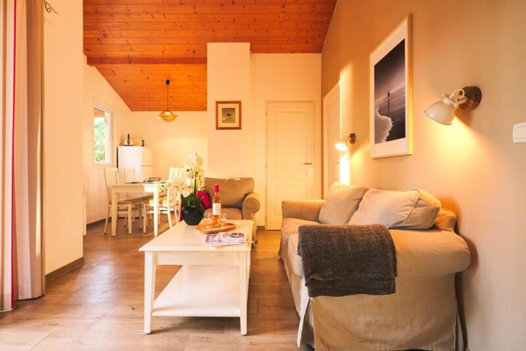 Omgivet af den rolige skønhed ved Landes-kysten inviterer Residence Les Cottages du Lac 3* dig til en uforglemmelig ferie ved bredden af ??Parentis-søen. Her blandes naturens harmoni problemfrit med moderne komfort og tilbyder en fredfyldt tilflugtssted midt i tårnhøje fyrreskove, gyldne sandstrande og glitrende søer. Uanset om du søger afslapning eller eventyr, er disse idylliske omgivelser det perfekte sted at genoprette forbindelsen til naturen. \n\nResidensen kan prale af omhyggeligt designede boliger i ét plan med private udendørsområder, hvilket sikrer et behageligt ophold for par, familier eller venner. Indenfor finder du en hyggelig stue, et fuldt udstyret tekøkken og to indbydende soveværelser - et med en dobbeltseng og et andet med to enkeltsenge. Ejendommen har også en opvarmet indendørs pool med boblebade, et svømmebassin og et soppebassin samt en opvarmet udendørs pool, der er åben sæsonbestemt. For ekstra afslapning kan du nyde gratis ugentlig adgang til stedets sauna eller leje en plancha til udendørs madlavning. Wi-Fi, babysæt og ladestationer til elbiler er også tilgængelige for at forbedre dit ophold. \n\nTræd udenfor og udforsk områdets naturlige vidundere. Direkte adgang til cykelstier gør det nemt at opdage regionens frodige landskaber, mens Biscarosse-Parentis-søen tilbyder muligheder for windsurfing, fiskeri og familievenlige aktiviteter. Den private vej, der fører til søens strande, sikrer et fredeligt tilflugtssted, perfekt til solbadning eller svømning. I nærheden venter den pulserende charme ved Landes-kysten med dens endeløse stier, uberørte strande og maleriske landsbyer. \n\nUanset om du er tiltrukket af søens beroligende vand, den forfriskende atlanterhavsbrise eller de fortryllende fyrreskove, er Residence Les Cottages du Lac 3* den ideelle base for at skabe dyrebare minder. Flygt til denne oase af ro, og lad Landes-kystens skønhed inspirere dit næste eventyr.