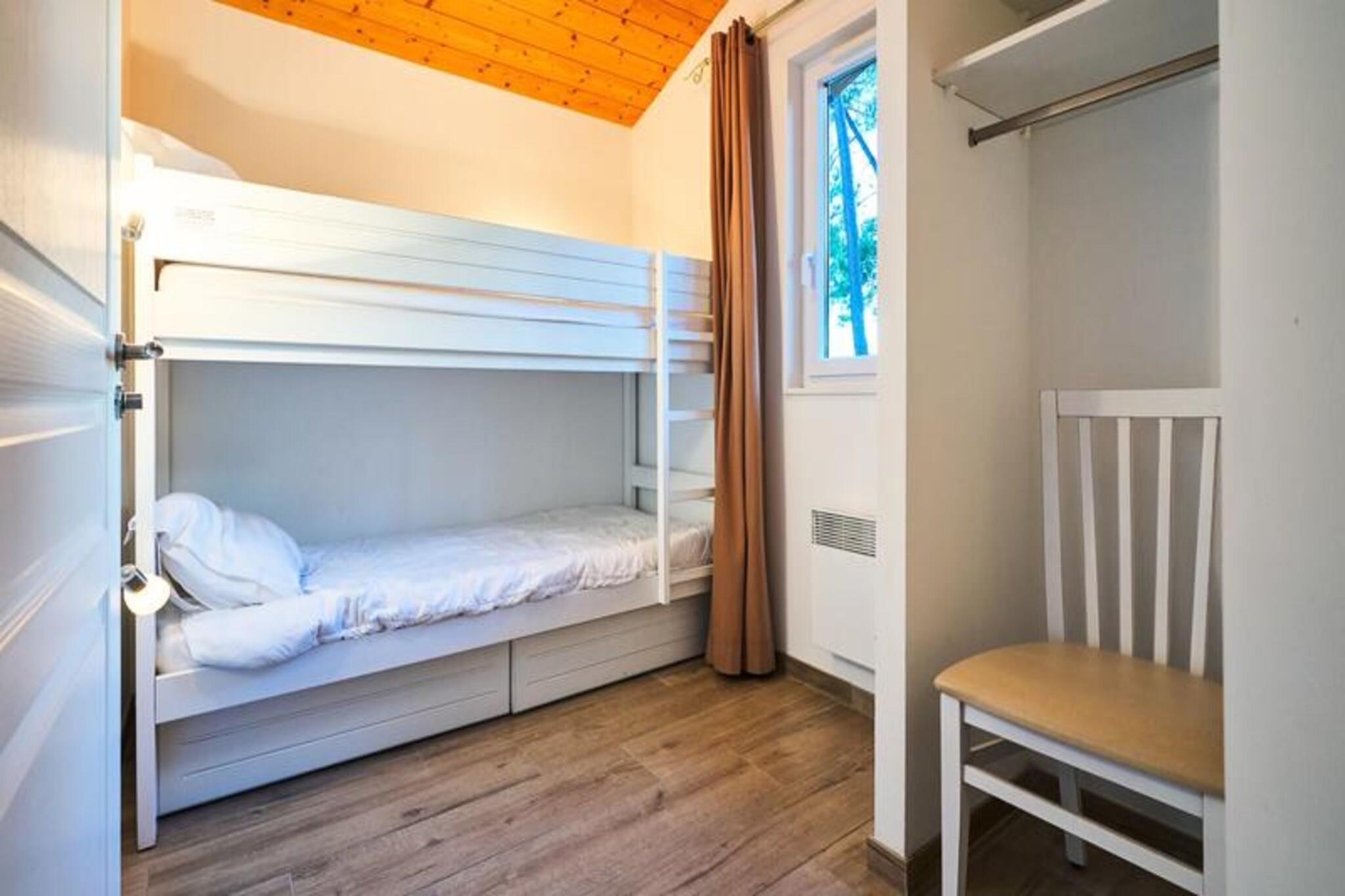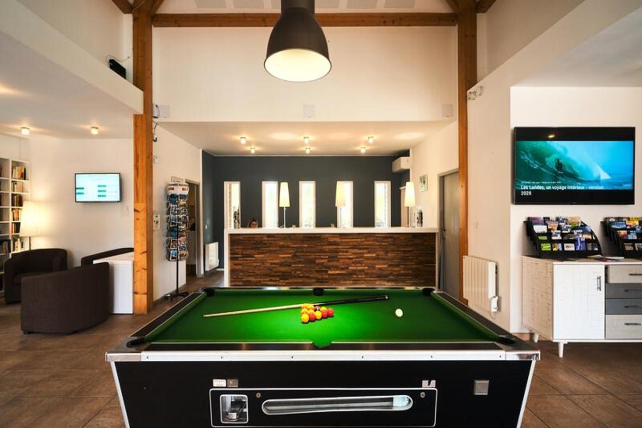 På den rolige bred af Parentis-søen, omgivet af frodige fyrreskove ved Landes-kysten, ligger Residence Les Cottages du Lac 3*. Dette fredfyldte tilflugtssted inviterer dig til at fordybe dig i naturens skønhed, mens du nyder moderne komfort og exceptionelle faciliteter. Uanset om du søger afslapning eller udendørs eventyr, tilbyder dette paradis ved søen den perfekte balance mellem begge dele. Vågn op til søens blide lyde og duften af ??frisk fyrretræ, der sætter tonen for en foryngende dag. \n\nResidensen kan prale af omhyggeligt designede boliger i ét plan, hver med sit eget udendørsområde. Indenfor finder du en hyggelig stue, et veludstyret tekøkken og tre soveværelser med plads til op til seks gæster. Indretningen omfatter et soveværelse med dobbeltseng, et soveværelse med to enkeltsenge og et soveværelse med køjeseng, hvilket gør det ideelt for familier eller grupper. Vandområdet er et højdepunkt med en opvarmet udendørs pool, en opvarmet indendørs pool med boblebade, et soppebassin og et svømmebassin. Efter en dag med udforskning kan du slappe af i saunaen, hvor en session om ugen er inkluderet i dit ophold. Yderligere faciliteter såsom Wi-Fi, ladestationer til elbiler og kæledyrsvenlige muligheder sikrer en komfortabel og bekvem oplevelse. \n\nTræd udenfor og oplev Landes-kystens vidundere. De nærliggende cykelstier tilbyder naturskønne ruter gennem skoven, mens Biscarrosse-Parentis-søen giver muligheder for windsurfing, fiskeri og afslapning ved søen. Den private adgangsvej til søstrandene gør det nemt at nyde det uberørte vand og sandstrandene. For familier lover legepladsen og udendørsaktiviteterne uendelig sjov. \n\nVælg Residence Les Cottages du Lac 3* for en mindeværdig ferie, hvor natur, komfort og eventyr forenes ubesværet. Uanset om du udforsker de fyrretræsduftende stier eller blot nyder solen ved poolen, sikrer denne charmerende ejendom, at hvert øjeblik er uforglemmeligt.