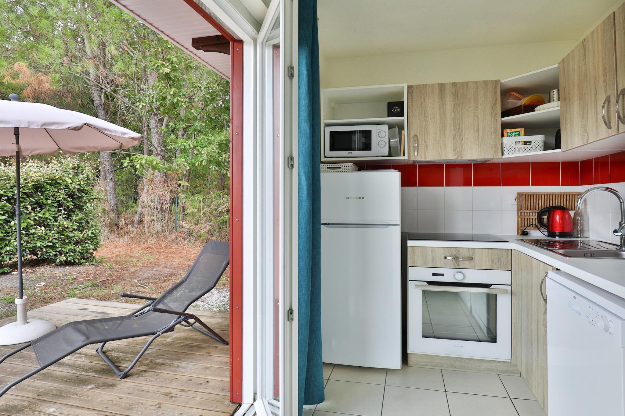 Velkommen til dit fredelige tilflugtssted ved søen i Parentis-en-Born – en elegant og lys villa designet til familier og venner, der søger både komfort og kontakt med naturen. Denne smukt indrettede villa på 58 m² kan rumme op til 8 gæster og kombinerer moderne livsstil med et strejf af kystcharme. Kun 350 meter fra sandstrandene ved Etang de Parentis og omgivet af lokale caféer og butikker er det det perfekte udgangspunkt for en afslappende ferie i Landes-regionen. Indenfor finder du en hyggelig stue med en komfortabel sovesofa og tv, perfekt til afslapning efter en solrig dag. Det fuldt udstyrede åbne køkken gør måltiderne nemme, komplet med ovn, opvaskemaskine, køleskab, kaffemaskine, kedel og brødrister. Villaen har tre indbydende soveværelser – to med dobbeltsenge og et med enkeltsenge og en køjeseng, hvilket giver fleksible soveforhold for familier eller grupper. Badeværelset med badekar indbyder til afslapning, mens terrassen og havemøblerne skaber den perfekte ramme for morgenkaffe eller aftensmad under åben himmel. Boligen tilbyder mere end bare afslapning: Nyd en forfriskende dukkert i den fælles opvarmede pool, eller hold din træningsrutine ved lige i fitnesscentret, inden du smelter stressen væk i den indendørs jacuzzi. Med en fantastisk restaurant kun få skridt væk, et nærliggende supermarked og en fredelig, familievenlig atmosfære har denne villa alt, hvad du behøver for et virkelig foryngende ophold mellem søen og havet.