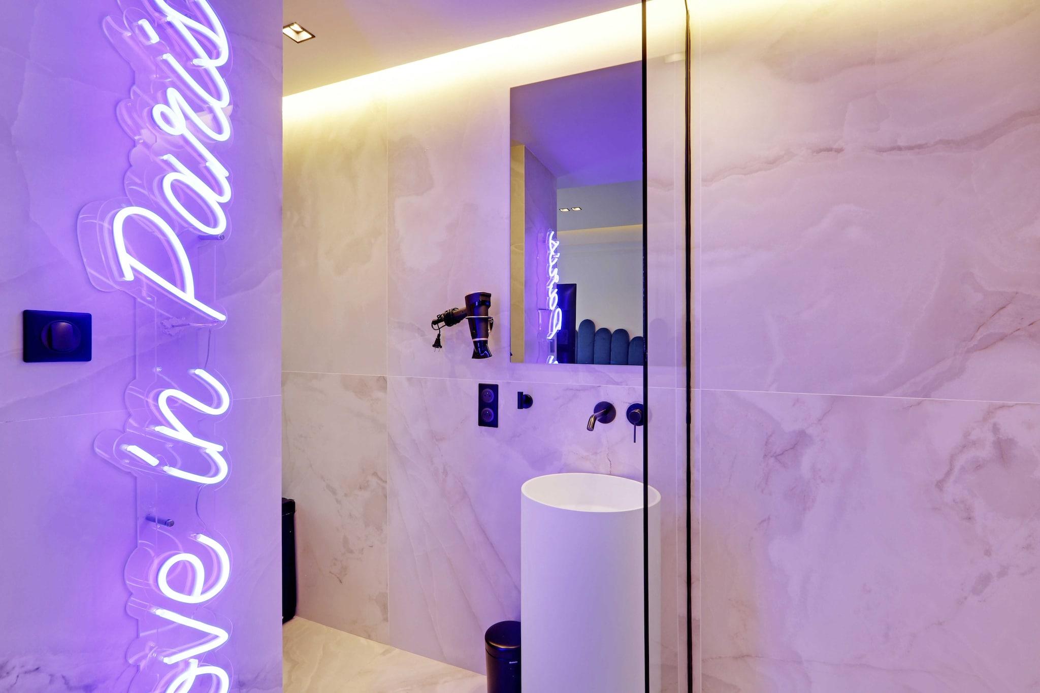 Fordyb dig i hjertet af den parisiske spænding med denne fantastiske suite til to personer med aircondition og jacuzzi, yderst godt placeret i det symbolske kvarter Rue de Rivoli. Forestil dig selv i dette moderne og raffinerede rum på 25 m², hvor du finder den privatliv og ro, du har brug for efter at have udforsket det berømte Marais-distrikt og Beaubourg centrum. Det er det ideelle sted for en uforglemmelig ferie i hovedstaden.