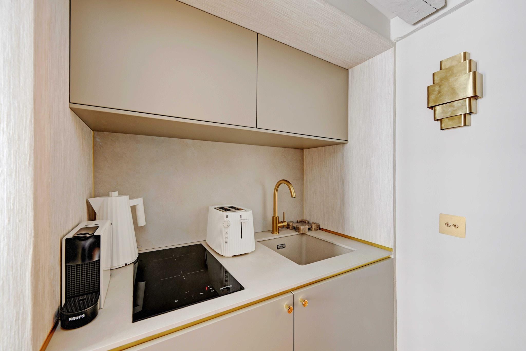 På 1. etage: (Stue(Queen Bed), Køkken(spisebord, elkedel, brødrister, kaffemaskine, mikrobølgeovn, opvaskemaskine , køleskab, fryser, varme, , , Baking sheet, Wine glasses), badeværelse(bruser, toilet)) , , , Førstehjælp, Fjernsyn, tørretumbler, strygejern, føntørrer, , , , Carbon monoxide detector, Cleaning products, Coffee, Downtown, Extra pillows and blankets, Room-darkening shades, Shower gel