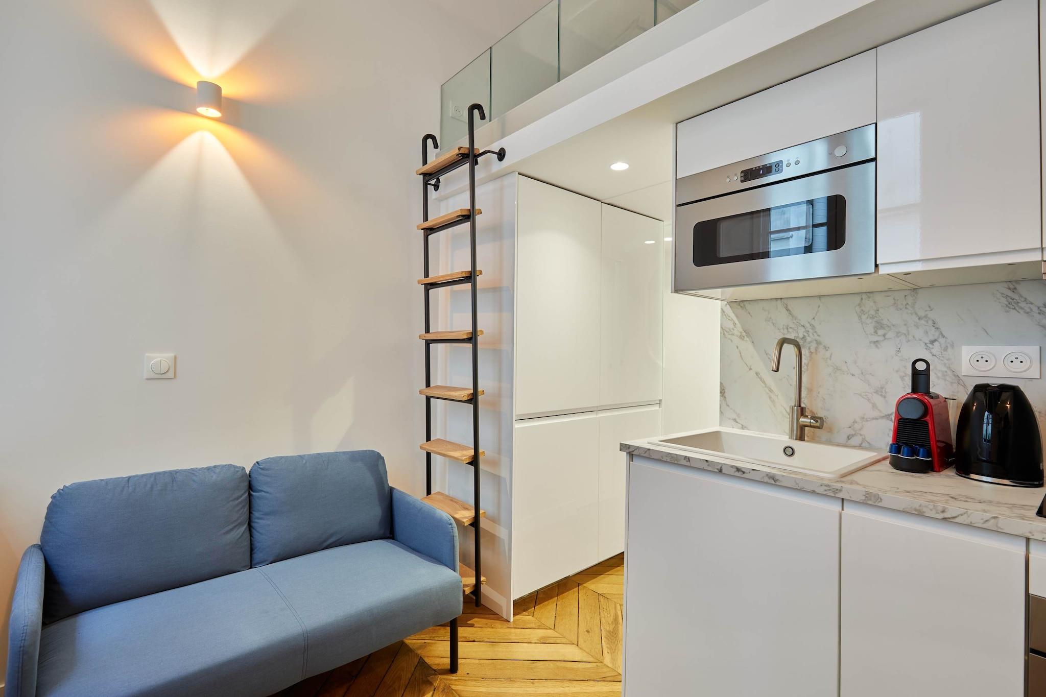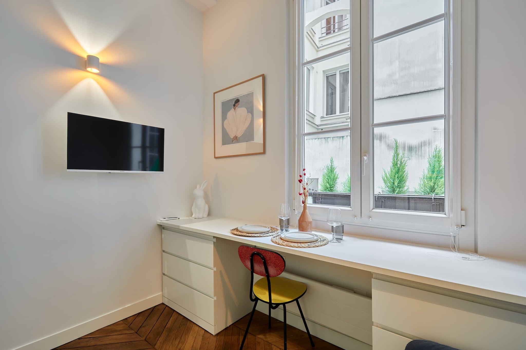 Charmerende studiolejlighed i hjertet af Paris, kun få skridt fra Louvre, Les Halles og Rue de Rivoli. Perfekt beliggende til at udforske byen til fods, omgivet af ikoniske butikker, museer, caféer og restauranter. Moderne, veludstyret og smagfuldt indrettet, med en mezzanin-seng og den ideelle base for en solorejse eller en ferie for to, der kombinerer kultur, shopping og parisisk gastronomi.