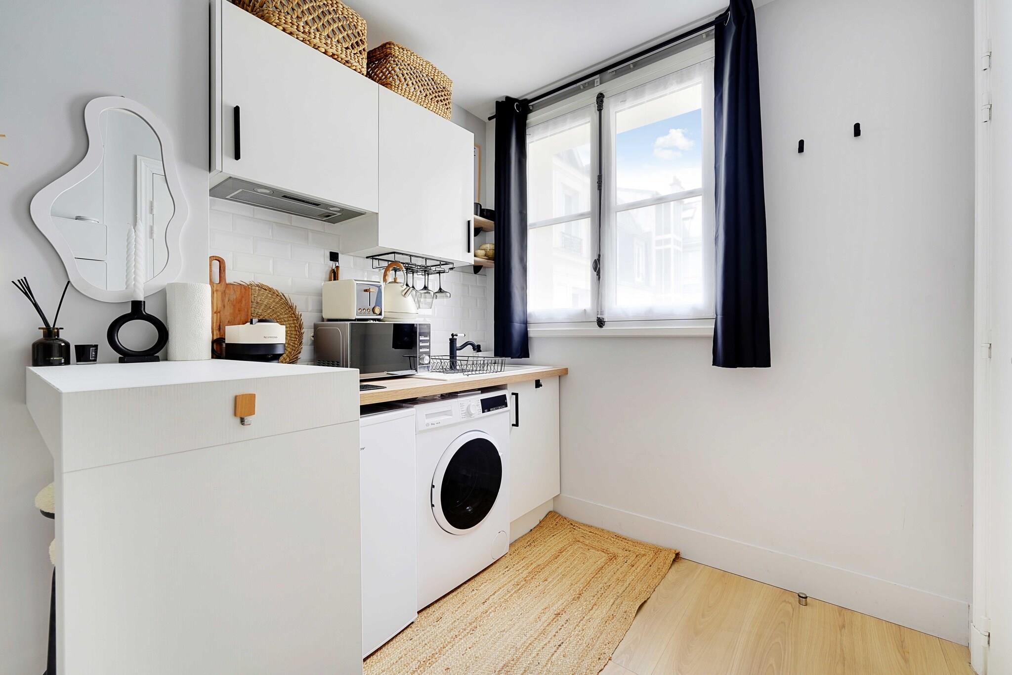 , , , , , Køkken, soveværelse(dobbeltseng), badeværelse(bruser, toilet), Fjernsyn, kakkelovn, elkedel, brødrister, kaffemaskine, mikrobølgeovn, køleskab, vaskemaskine, varme, strygejern, føntørrer, Håndklæder/sengelinned (inkl.), , , , , , Carbon monoxide detector, Cleaning Disinfection, Downtown, Enhanced cleaning practices, High touch surfaces disinfected, Room-darkening shades, Town