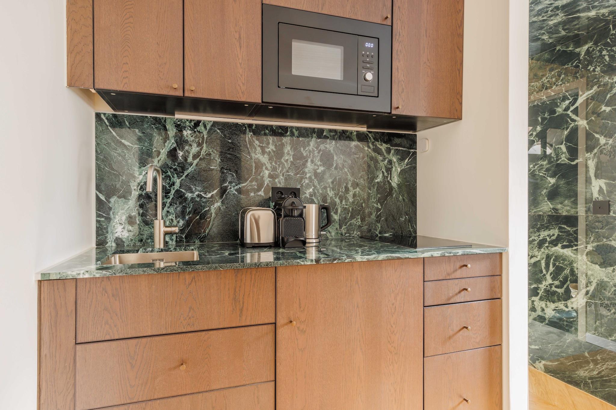På 1. etage: (Stue(, , enkeltsovesofa, Fjernsyn, spisebord), åbent køkken(kakkelovn, elkedel, brødrister, kaffemaskine, mikrobølgeovn, køleskab, , ), Soveværelse med badeværelse(, bruser, toilet, vaskemaskine, føntørrer, Håndklæder/sengelinned (inkl.), )) , , Førstehjælp, Legeområde, varme, strygejern, , Carbon monoxide detector, Cleaning Disinfection, Downtown, Enhanced cleaning practices, High touch surfaces disinfected, Long term stays allowed, Town
