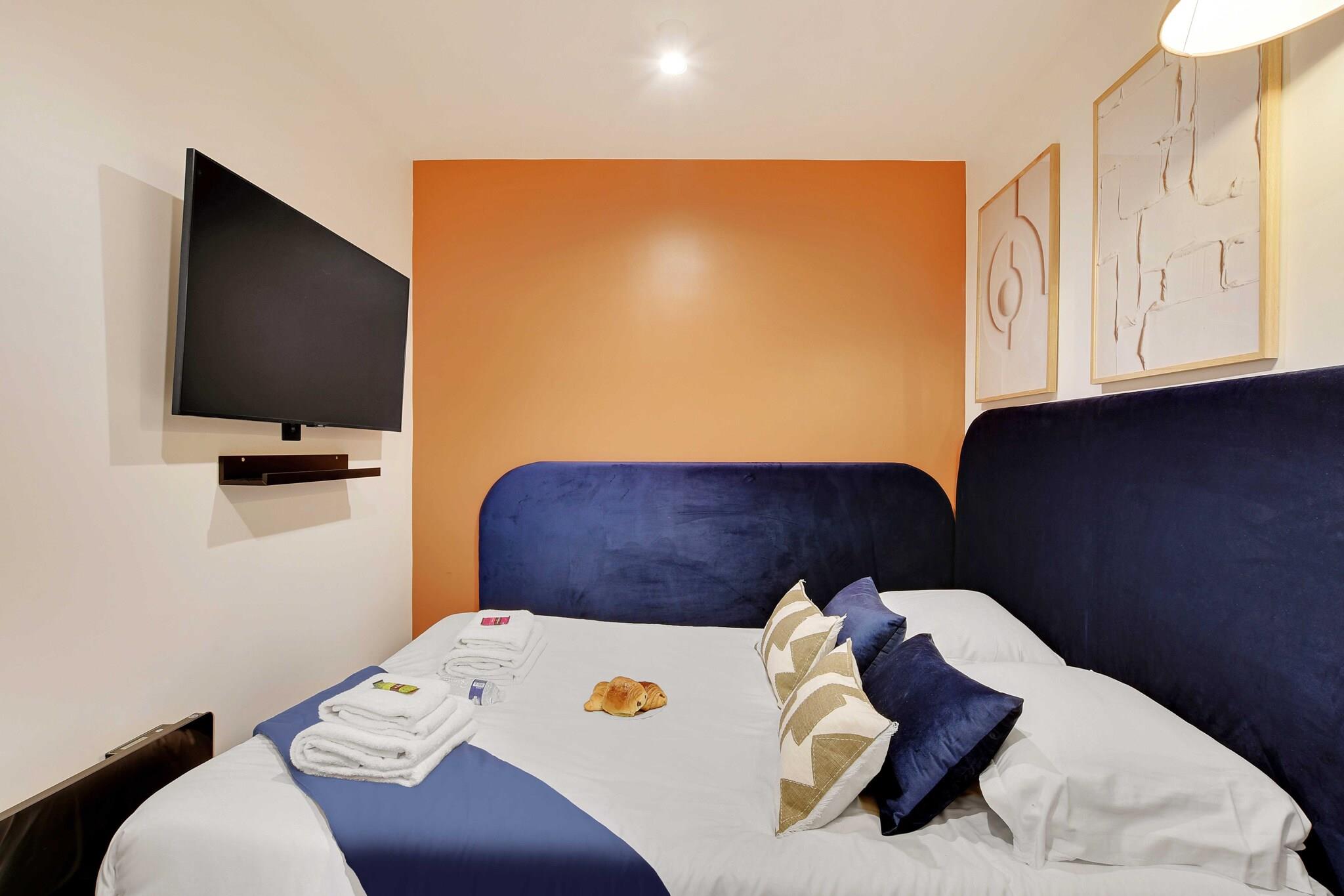 , , , , , Stue(enkeltsovesofa), Køkken, soveværelse(køjeseng), soveværelse(dobbeltseng), badeværelse(bruser, toilet), badeværelse(bruser, toilet), Fjernsyn, kakkelovn, elkedel, brødrister, kaffemaskine, mikrobølgeovn, køleskab, vaskemaskine, varme, strygejern, føntørrer, Håndklæder/sengelinned (inkl.), , , , , Cleaning Disinfection, Downtown, Enhanced cleaning practices, Town
