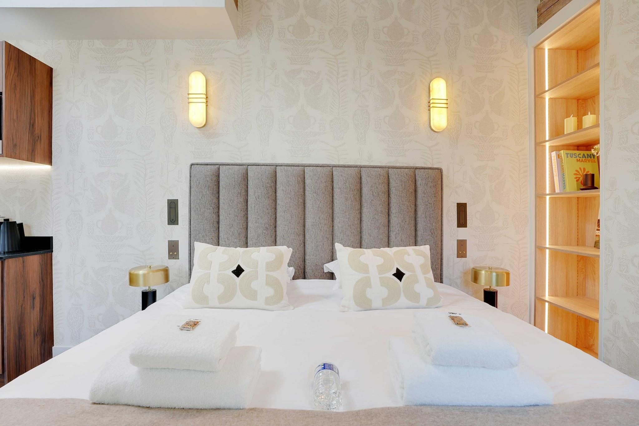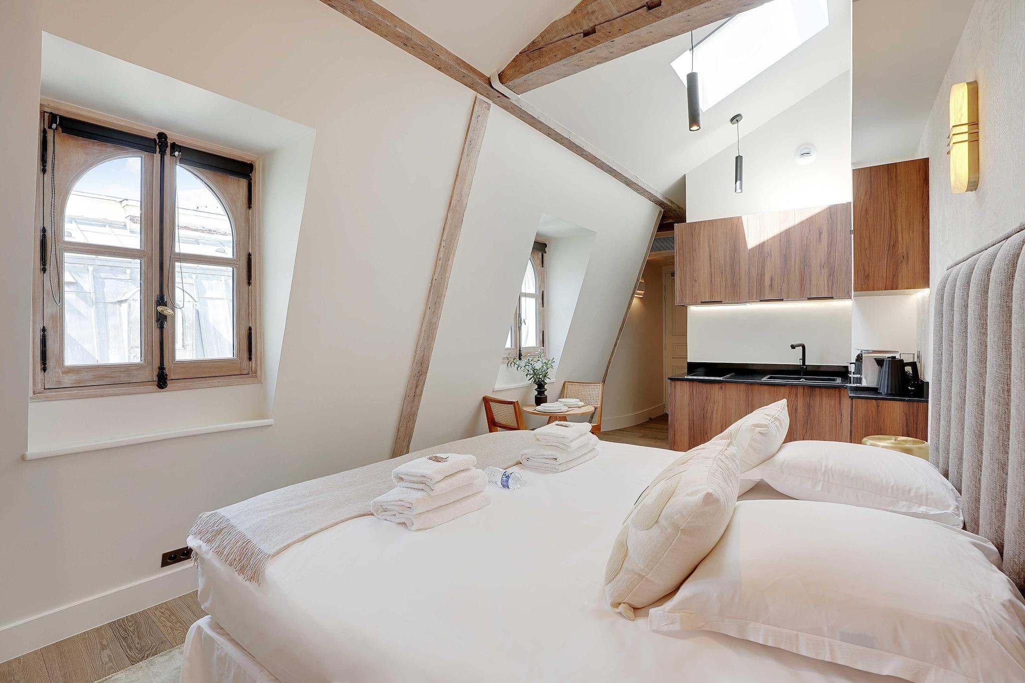 På 6. etage: (Køkken(kakkelovn, kogeplade, elkedel, brødrister, kaffemaskine, mikrobølgeovn, køleskab, ), Stue/soveværelse(, , dobbeltseng, Fjernsyn, spisebord, klimaanlæg), badeværelse(bruser, håndvask, toilet, Håndklæder/sengelinned (inkl.), , )) , , , Legeområde, varme, strygejern, føntørrer, , Carbon monoxide detector, Cleaning Disinfection, Downtown, Enhanced cleaning practices, High touch surfaces disinfected, Long term stays allowed, Town