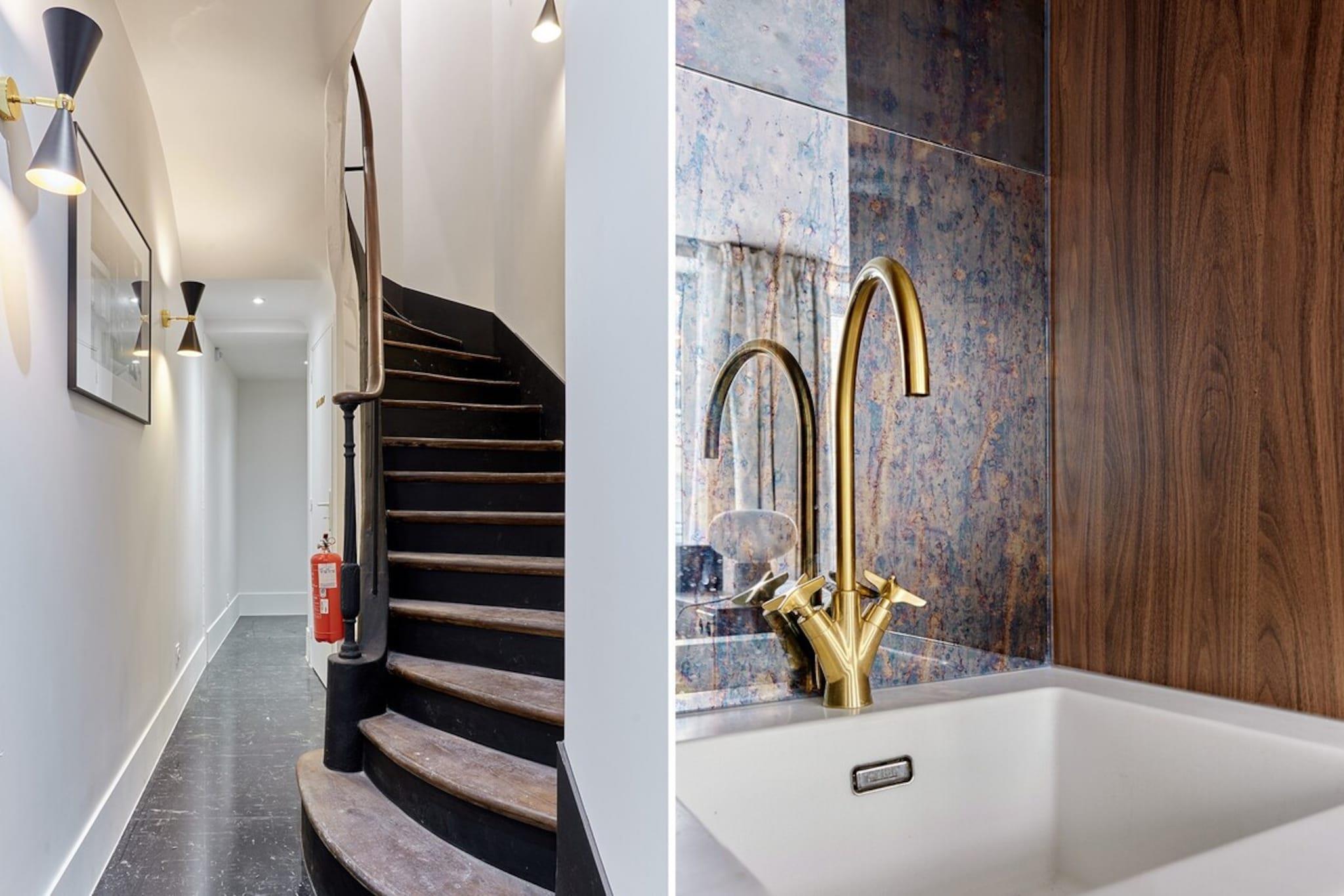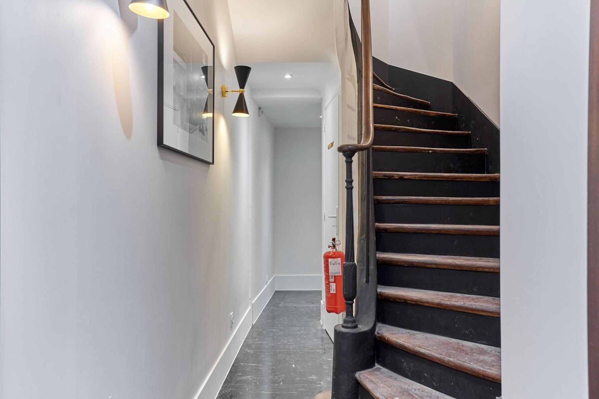 På 1. etage: (Stue(enkeltsovesofa, Fjernsyn, Queen Bed), Køkken(spisebord, elkedel, brødrister, kaffemaskine, mikrobølgeovn, køleskab, , , Baking sheet, Coffee, Wine glasses), badeværelse(, bruser, håndvask, føntørrer, , , Shower gel), toilet) , , Førstehjælp, tørretumbler, vaskemaskine, varme, klimaanlæg, strygejern, , , Carbon monoxide detector, Downtown
