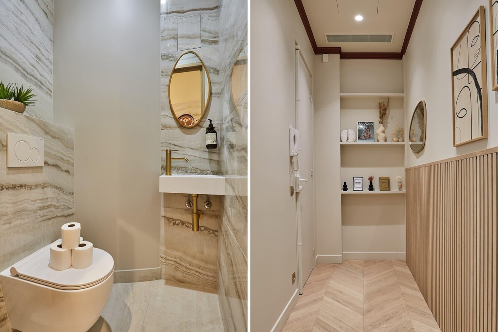 Stueetage: (Stue(dobbeltsovesofa, Fjernsyn), Køkken(spisebord, elkedel, brødrister, kaffemaskine, mikrobølgeovn, opvaskemaskine , køleskab, fryser, varme, , , Baking sheet, Wine glasses), soveværelse(Queen Bed), badeværelse(bruser, toilet), toilet(toilet)) , , , Førstehjælp, tørretumbler, vaskemaskine, klimaanlæg, strygejern, føntørrer, , , , Carbon monoxide detector, Cleaning products, Coffee, Downtown, Extra pillows and blankets, Room-darkening shades, Shower gel