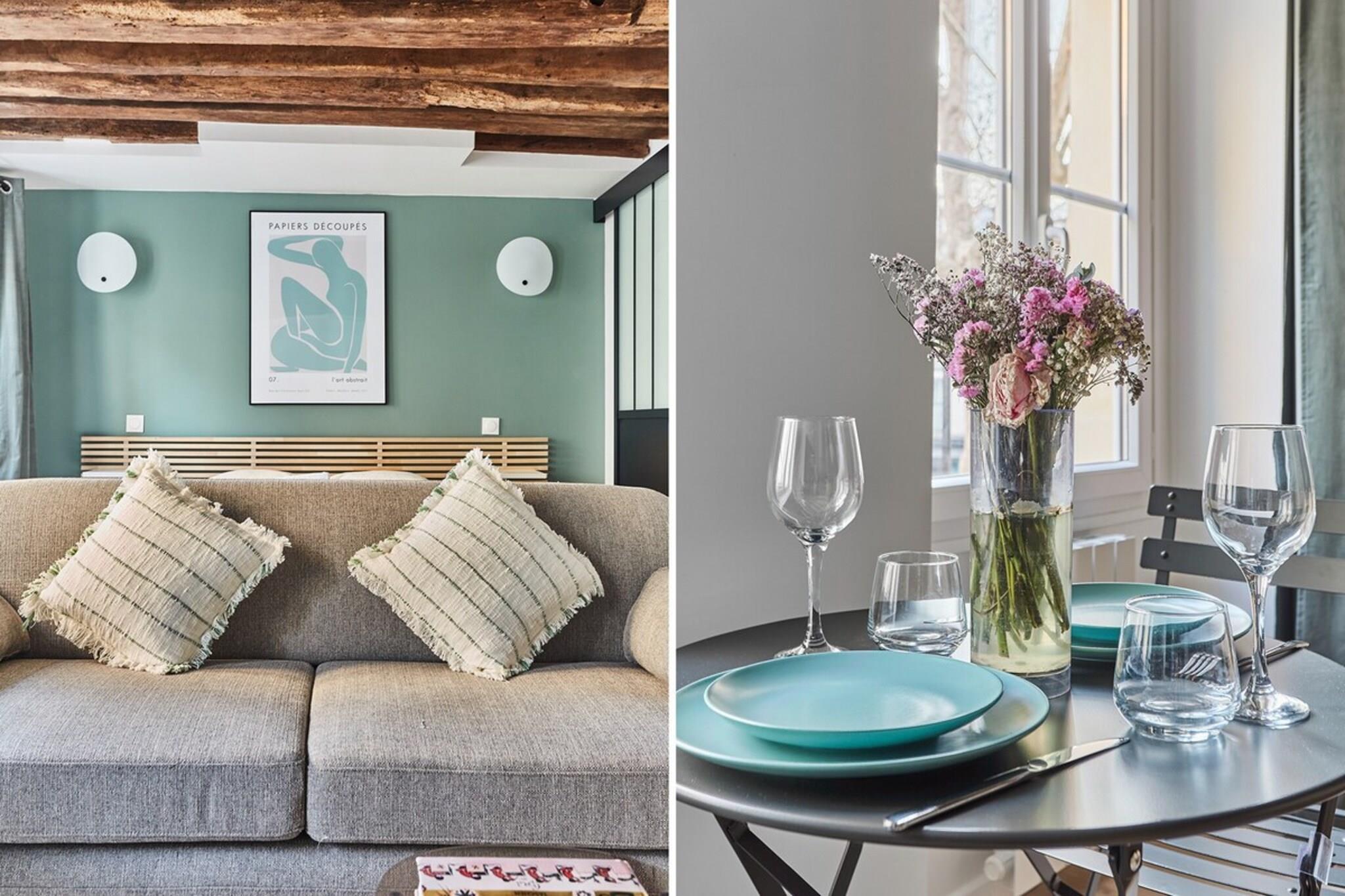 På 1. etage: (Stue(dobbeltseng, dobbeltsovesofa), Køkken(spisebord, elkedel, brødrister, kaffemaskine, mikrobølgeovn, køleskab, fryser, varme, , , Baking sheet, Wine glasses), badeværelse(bruser, toilet)) , , , Førstehjælp, Fjernsyn, vaskemaskine, strygejern, føntørrer, , , Carbon monoxide detector, Cleaning products, Coffee, Downtown, Extra pillows and blankets, Room-darkening shades, Shower gel