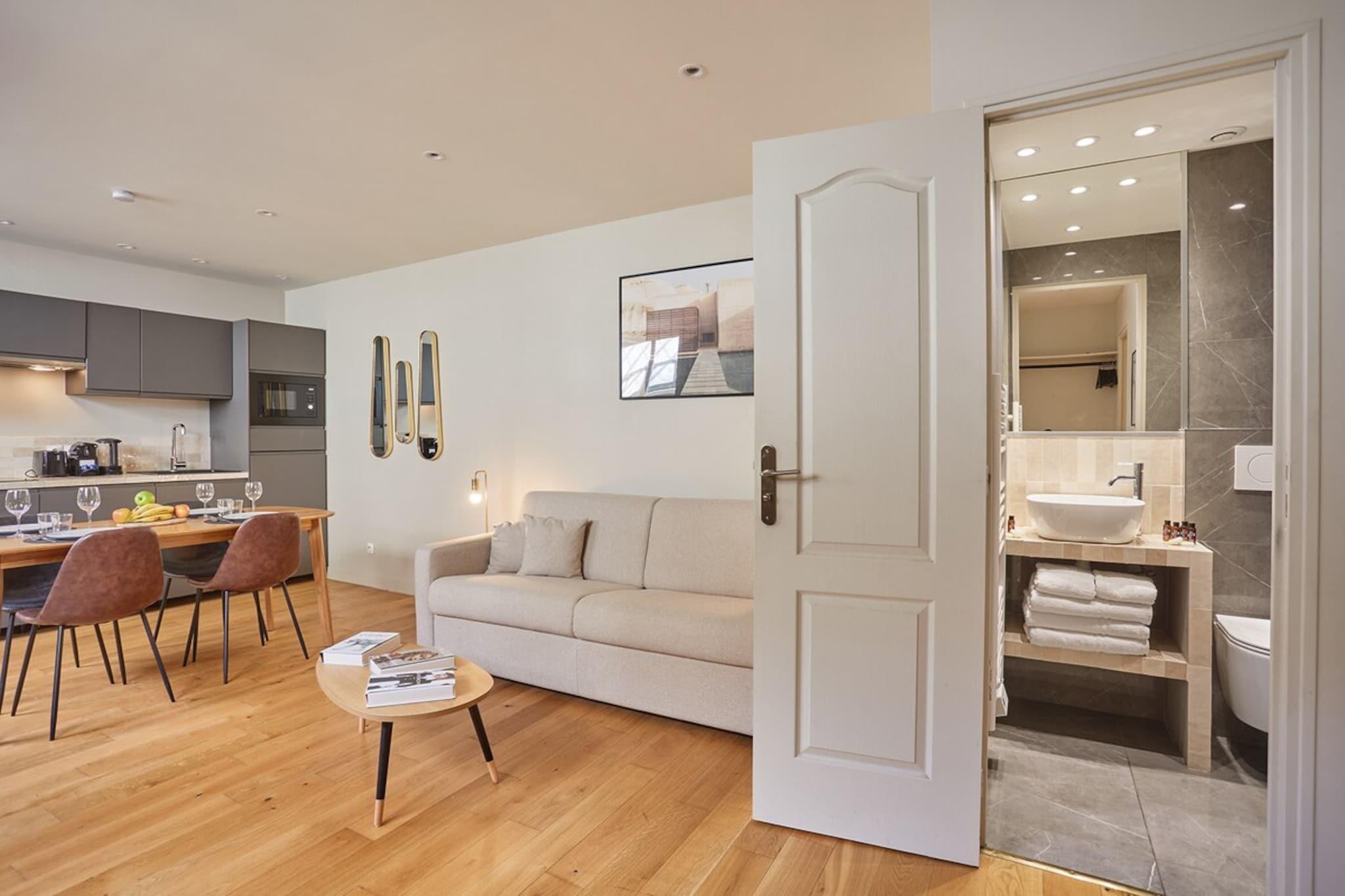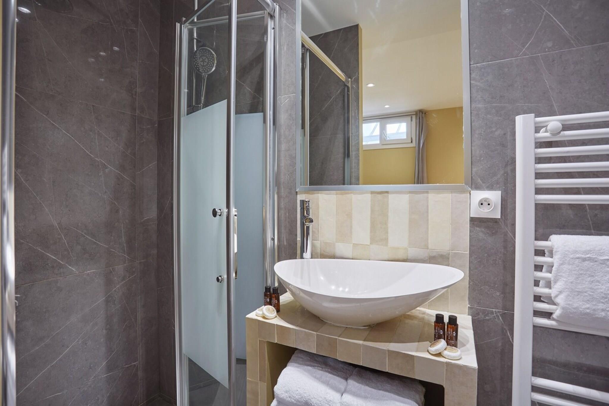 På 2. etage: (Stue(dobbeltsovesofa, Fjernsyn, spisebord), Køkken(kakkelovn, elkedel, brødrister, kaffemaskine, mikrobølgeovn, opvaskemaskine , køleskab, fryser, , , Baking sheet, Wine glasses), soveværelse(, , Fjernsyn, Queen Bed), badeværelse(bruser, håndvask, toilet), badeværelse(bruser, håndvask, toilet, , , Shower gel)) , Førstehjælp, tørretumbler, vaskemaskine, varme, klimaanlæg, strygejern, føntørrer, , , Carbon monoxide detector, Cleaning products, Coffee, Downtown, Extra pillows and blankets, Room-darkening shades