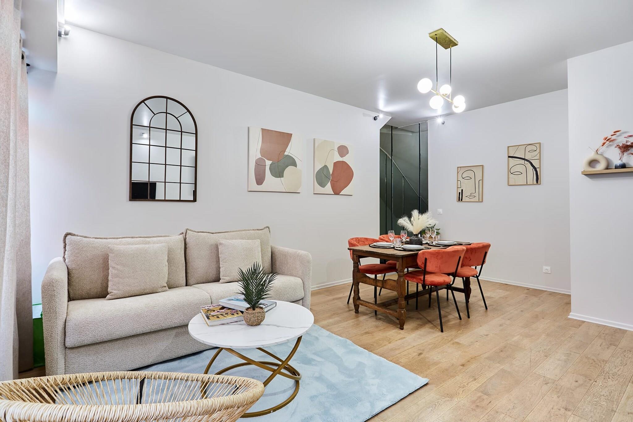 Stueetage: (Stue(Internetadgang, dobbeltsovesofa, Fjernsyn, spisebord), Køkken(elkedel, brødrister, kaffemaskine, mikrobølgeovn, køleskab, Coffee, Wine glasses), soveværelse(dobbeltsovesofa, Fjernsyn, Queen Bed), badeværelse(, bruser, håndvask, føntørrer, ), toilet) , , , Førstehjælp, varme, klimaanlæg, strygejern, Håndklæder/sengelinned (inkl.), , Carbon monoxide detector, Downtown