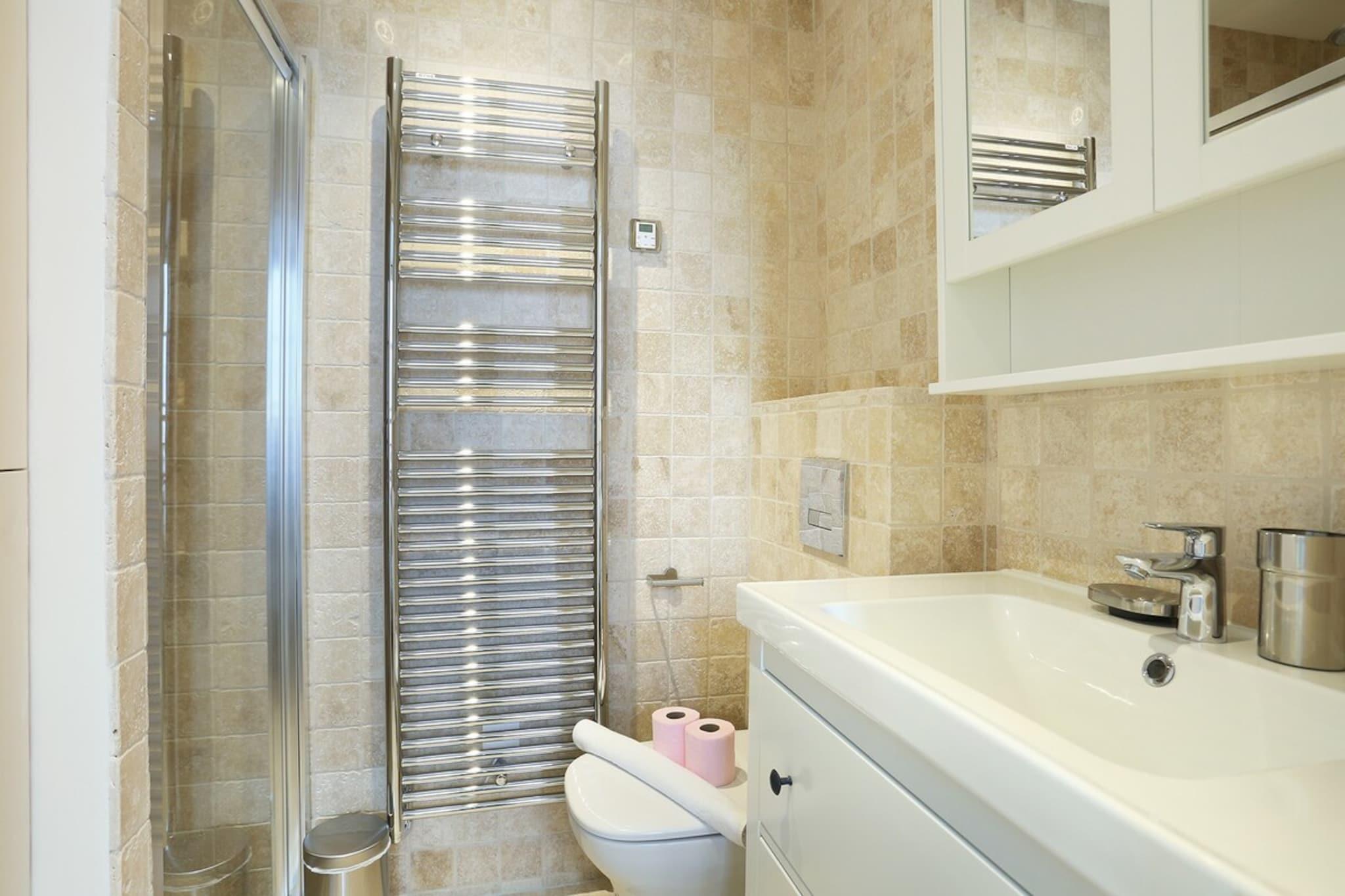 På 2. etage: (Stue(enkeltsovesofa, dobbeltseng, Fjernsyn, spisebord), Køkken(kakkelovn, elkedel, brødrister, kaffemaskine, mikrobølgeovn, opvaskemaskine , køleskab, , , Baking sheet, Coffee, Wine glasses), badeværelse(bruser, håndvask, toilet, føntørrer, , )) , , Førstehjælp, tørretumbler, vaskemaskine, varme, klimaanlæg, strygejern, , , Baking sheet, Carbon monoxide detector, Coffee, Downtown, Shower gel