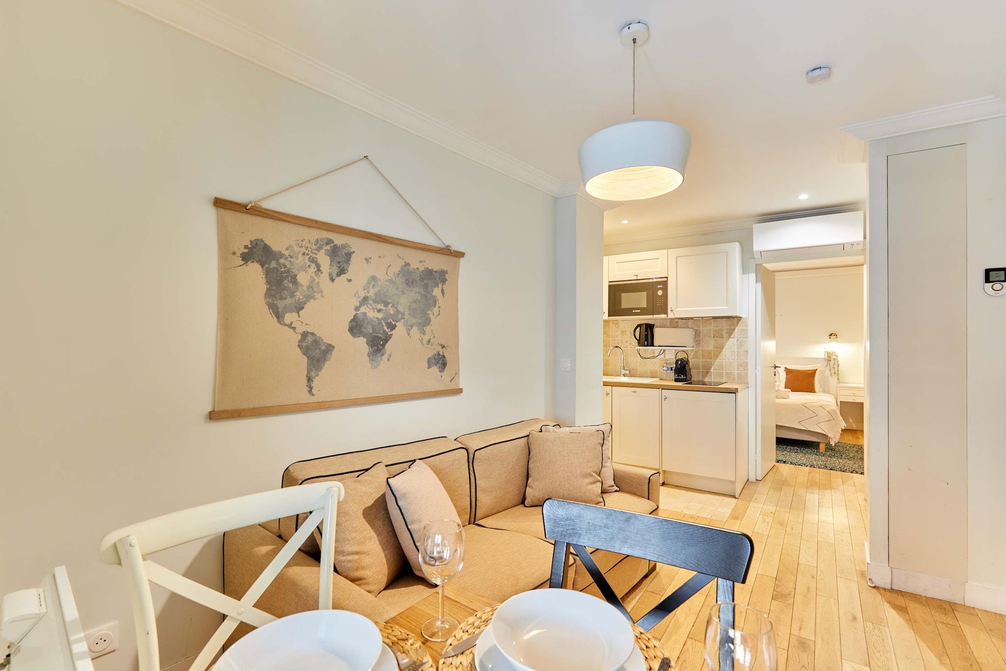 Fremragende lejlighed på 2. sal uden elevator, beliggende i hjertet af Paris mellem Rue Etienne Marcel og Rue Montorgueil, 15 m fra Grands Boulevards. For foden af lejligheden ligger der mange butikker, caféer og restauranter. Denne smagfuldt indrettede lejlighed vil give dig en meget behagelig oplevelse i hjertet af det parisiske liv.