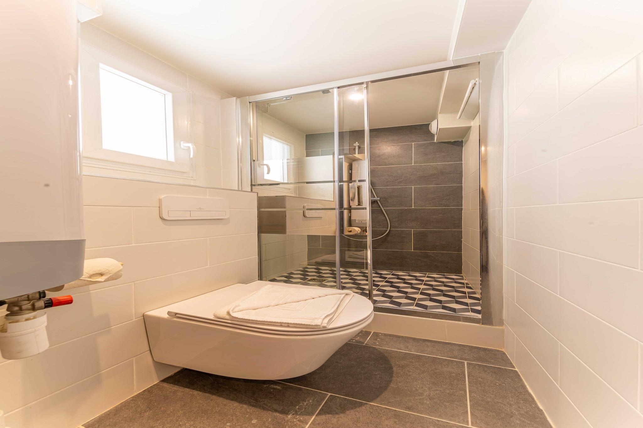 On the 2nd floor: (Kitchen(stove, electric kettle, toaster, coffee machine(espresso), combination microwave, fridge, dishes and cutlery, Cooking basics), Living/bed room(single sofa bed, double bed), bathroom(shower, toilet)) Desk, Hot Water, Internet Access DSL, Wardrobe, TV, washing machine, heating, iron, hairdryer, Towels/Sheets (Incl.), shampoo, Essentials