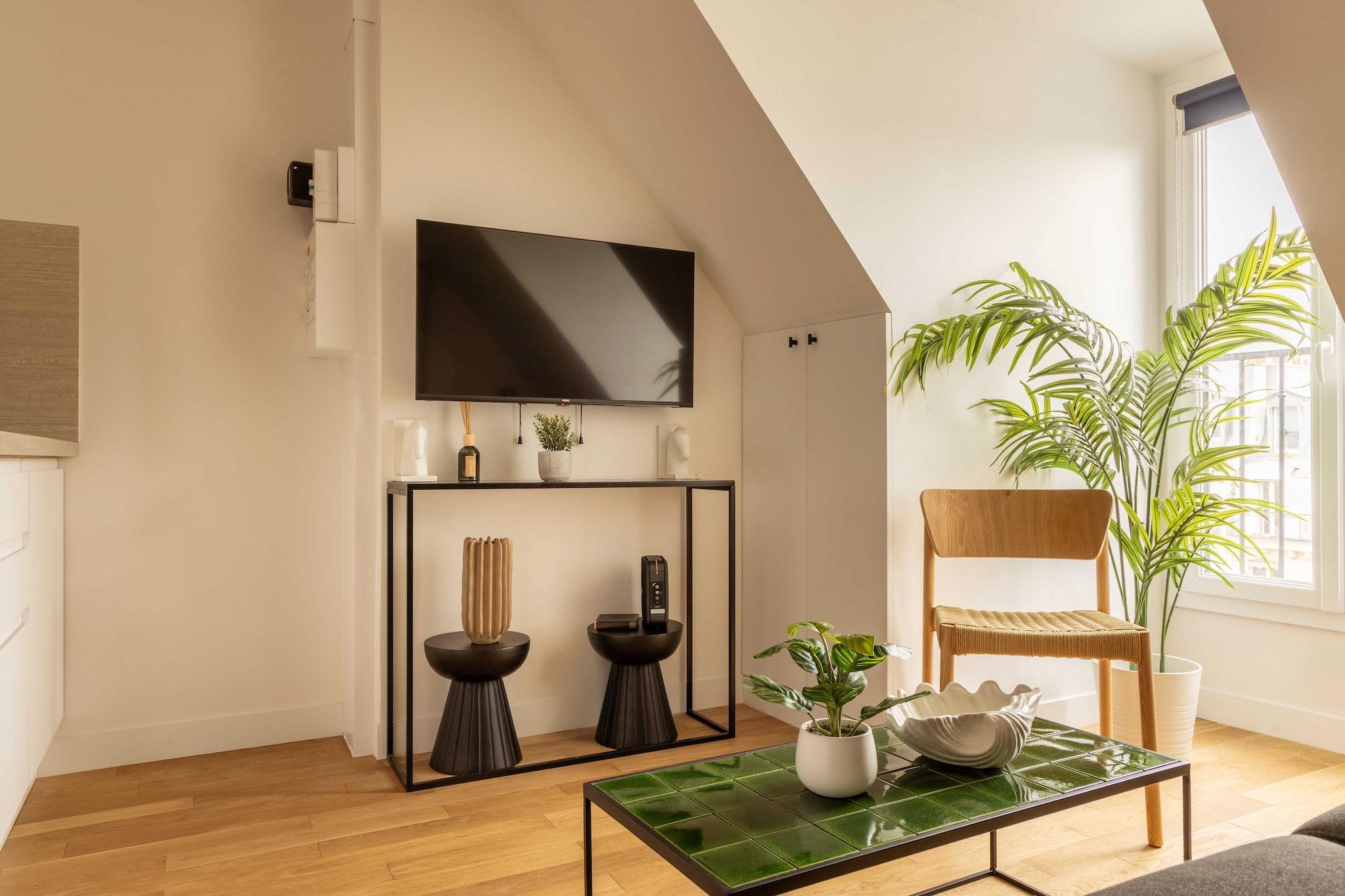 På 6. etage: (Køkken(kakkelovn, kogeplade, elkedel, brødrister, kaffemaskine, køleskab, , , Wine glasses), Stue/soveværelse(dobbeltsovesofa, Fjernsyn, strygebræt, strygejern, Sengelinned inkl.), badeværelse(bruser, toilet, føntørrer, , , )) , , , , varme, klimaanlæg, Håndklæder/sengelinned (inkl.), , , Carbon monoxide detector, Cleaning Disinfection, Downtown, Enhanced cleaning practices, High touch surfaces disinfected, Town