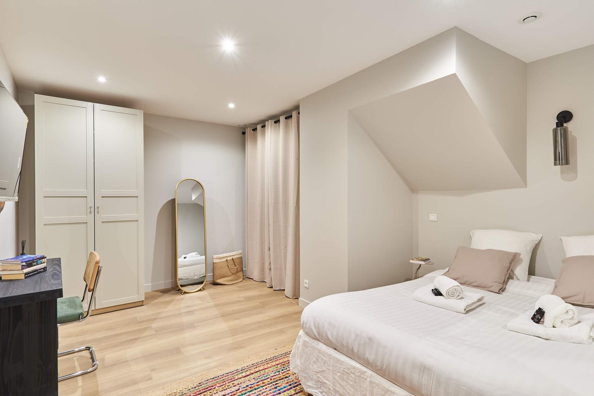 Oplev vores nye lejlighed, som blev fuldstændig renoveret i april 2025, ideelt beliggende halvvejs mellem Marais, Rue Montorgueil og Place des Victoires. Elegant, rummelig og fuldt udstyret i to etager, med kvalitetsmøbler og dekorationer af anerkendte fagfolk, kombinerer min lejlighed komfort og modernitet, hvilket gør den ideel til et vellykket ophold i hovedstaden med familie eller venner.