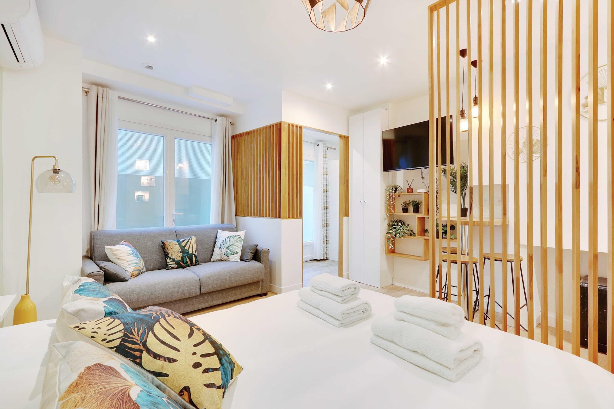 Stueetage: (Stue(enkeltsovesofa, dobbeltseng, Fjernsyn), Køkken(spisebord, kakkelovn, kogeplade, elkedel, kaffemaskine, ovn, mikrobølgeovn, køleskab, vaskemaskine, , ), badeværelse(, håndvask, toilet, føntørrer, Håndklæder/sengelinned (inkl.), )) , , brødrister, varme, klimaanlæg, strygejern, , Carbon monoxide detector, Cleaning Disinfection, Downtown, Enhanced cleaning practices, High touch surfaces disinfected, Long term stays allowed, Town