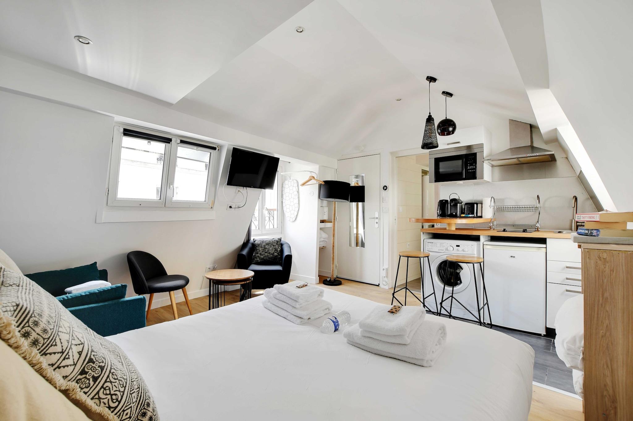 Stueetage: (åbent køkken(kakkelovn, elkedel, brødrister, kaffemaskine, mikrobølgeovn, køleskab, ), Stue/soveværelse(, dobbeltseng, Fjernsyn), badeværelse(bruser, toilet, føntørrer, Håndklæder/sengelinned (inkl.), )) , , , vaskemaskine, varme, strygejern,