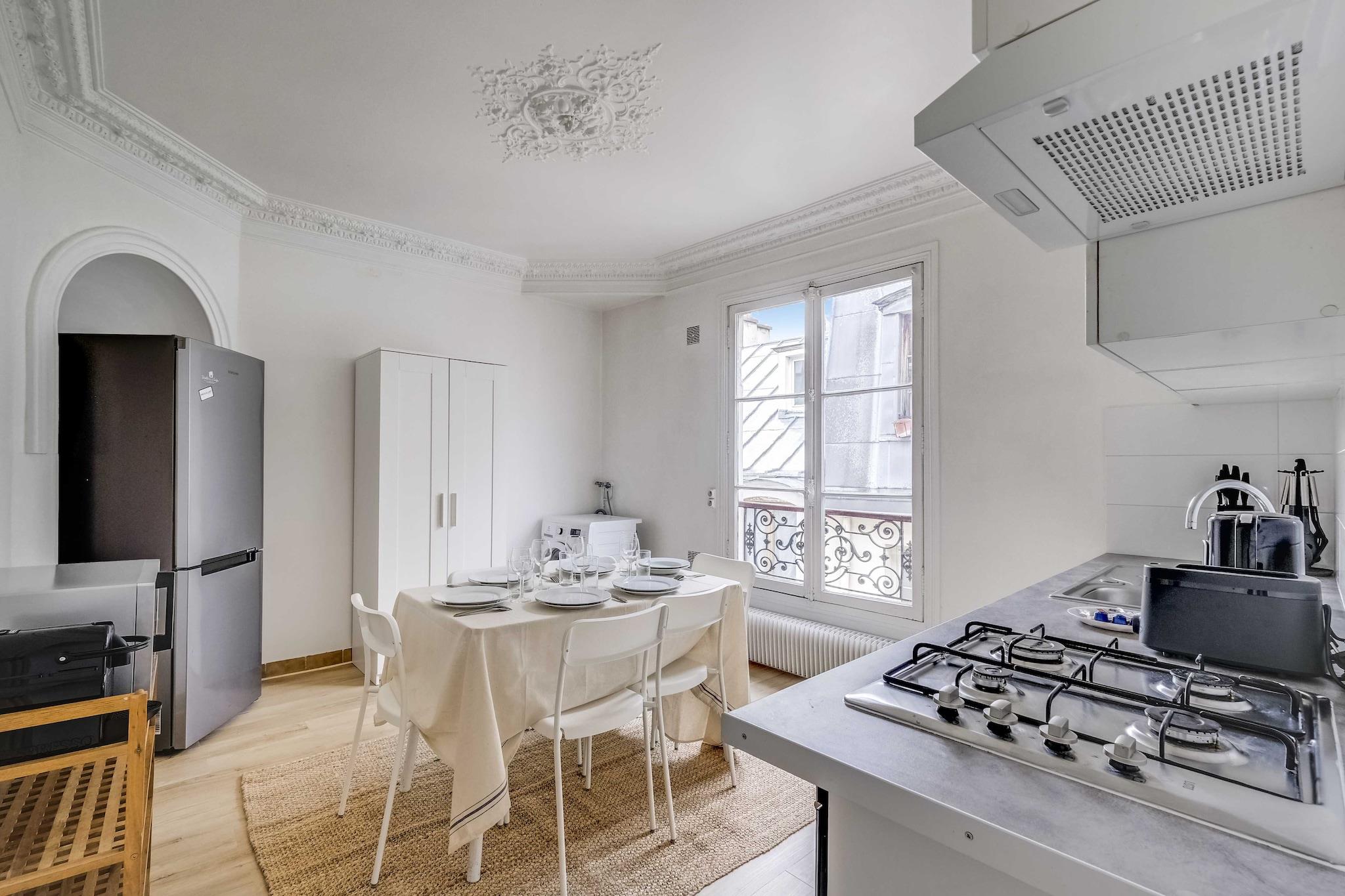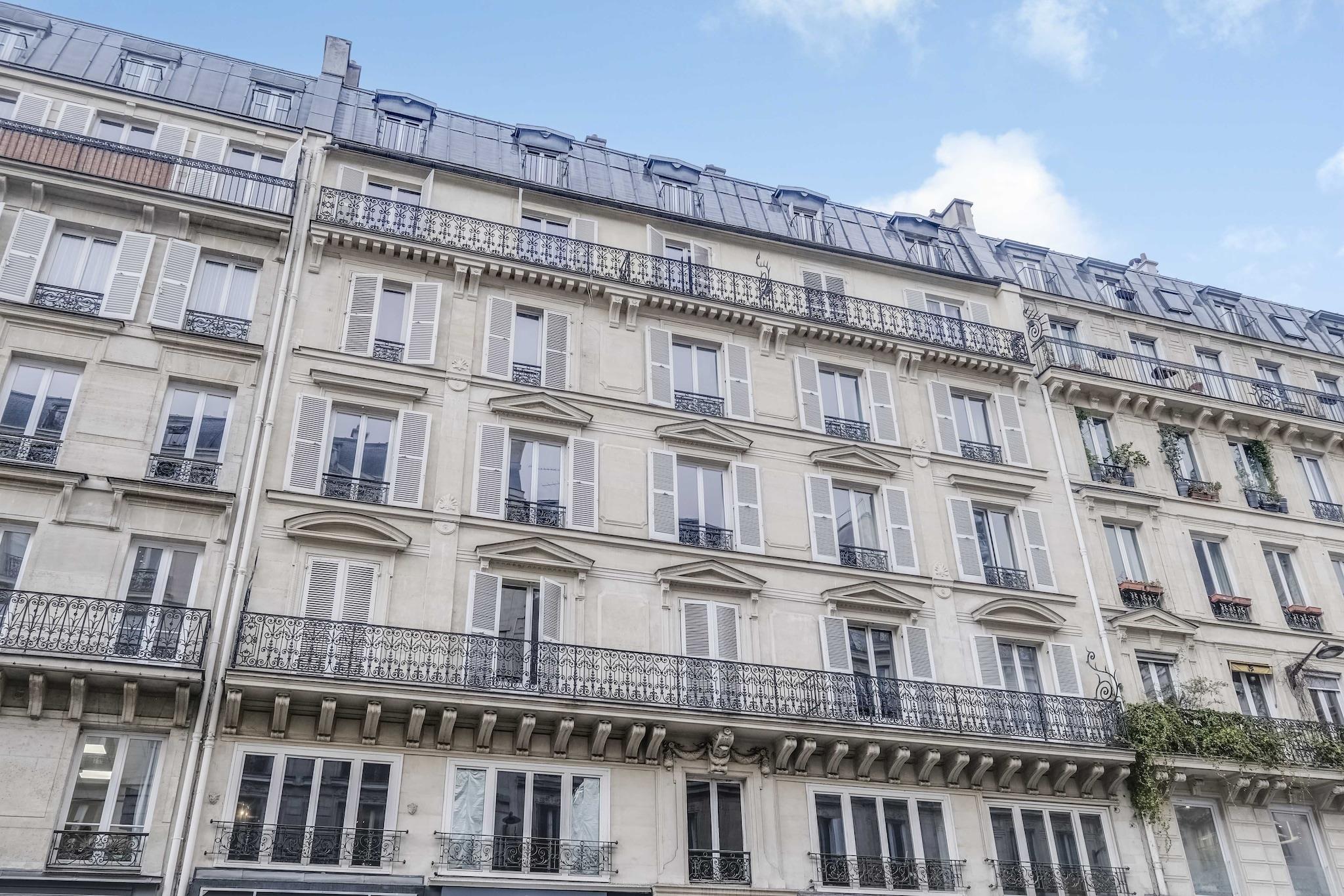 ?? Checkmyguest tilbyder en 68 m² lejlighed på 5. sal, ideelt beliggende få skridt fra Grands Boulevards, Montorgueil-kvarteret og Marais. Perfekt til at nyde det parisiske liv fuldt ud. Den har plads til op til 6 personer i et lyst, elegant og perfekt indrettet rum, der kombinerer komfort og funktionalitet.