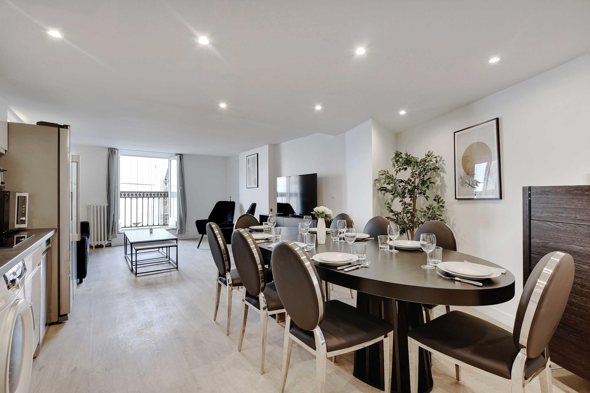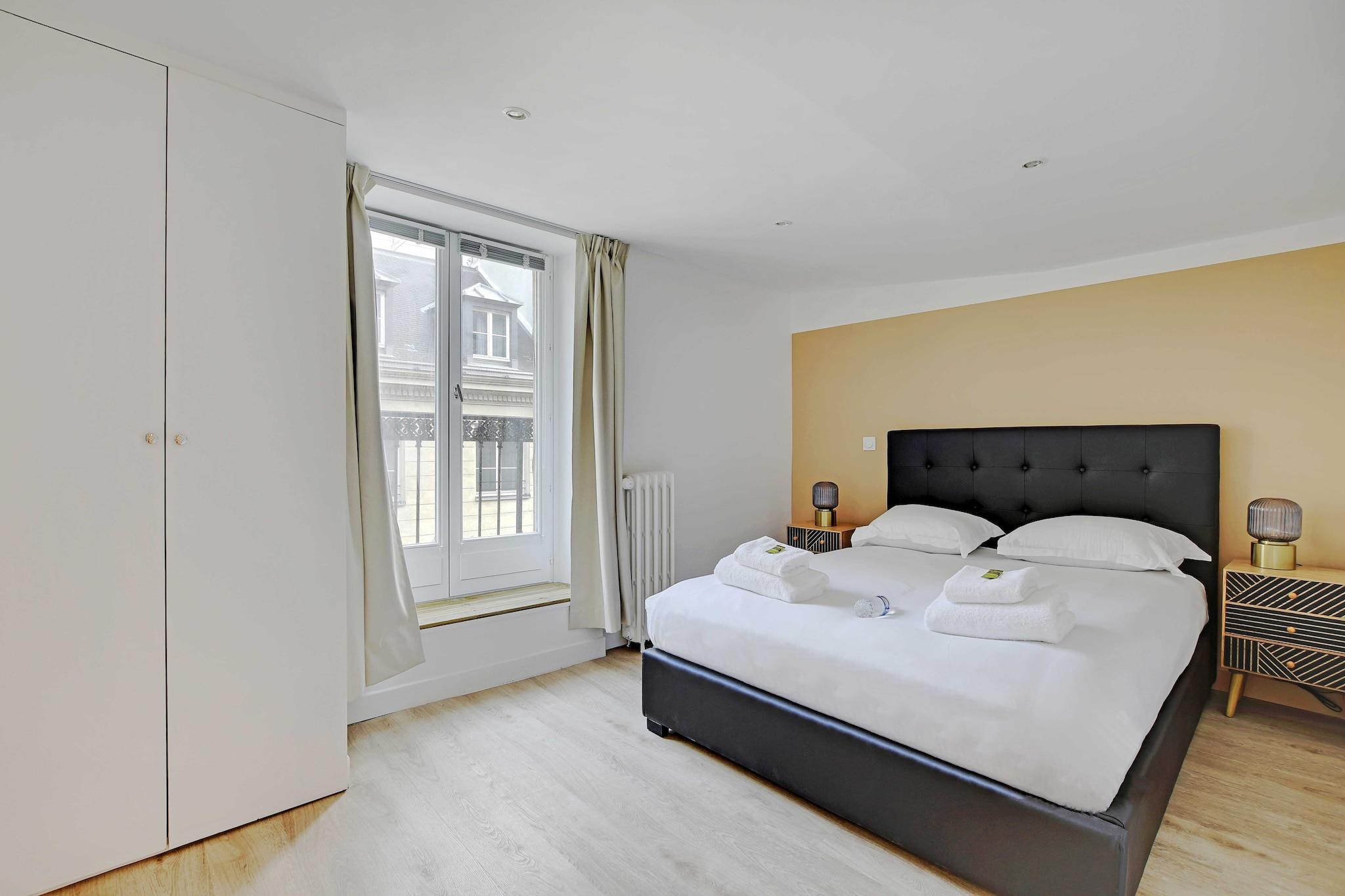 På 4. etage: (Stue(Fjernsyn), Køkken(kakkelovn, elkedel, brødrister, kaffemaskine, ovn, mikrobølgeovn, opvaskemaskine , køleskab, , ), soveværelse(dobbeltseng), soveværelse(dobbeltseng), soveværelse(dobbeltseng), soveværelse(dobbeltseng), badeværelse(føntørrer, Håndklæder/sengelinned (inkl.), , )) , , , , , vaskemaskine, balkon eller terrasse, varme, strygejern, , Long term stays allowed