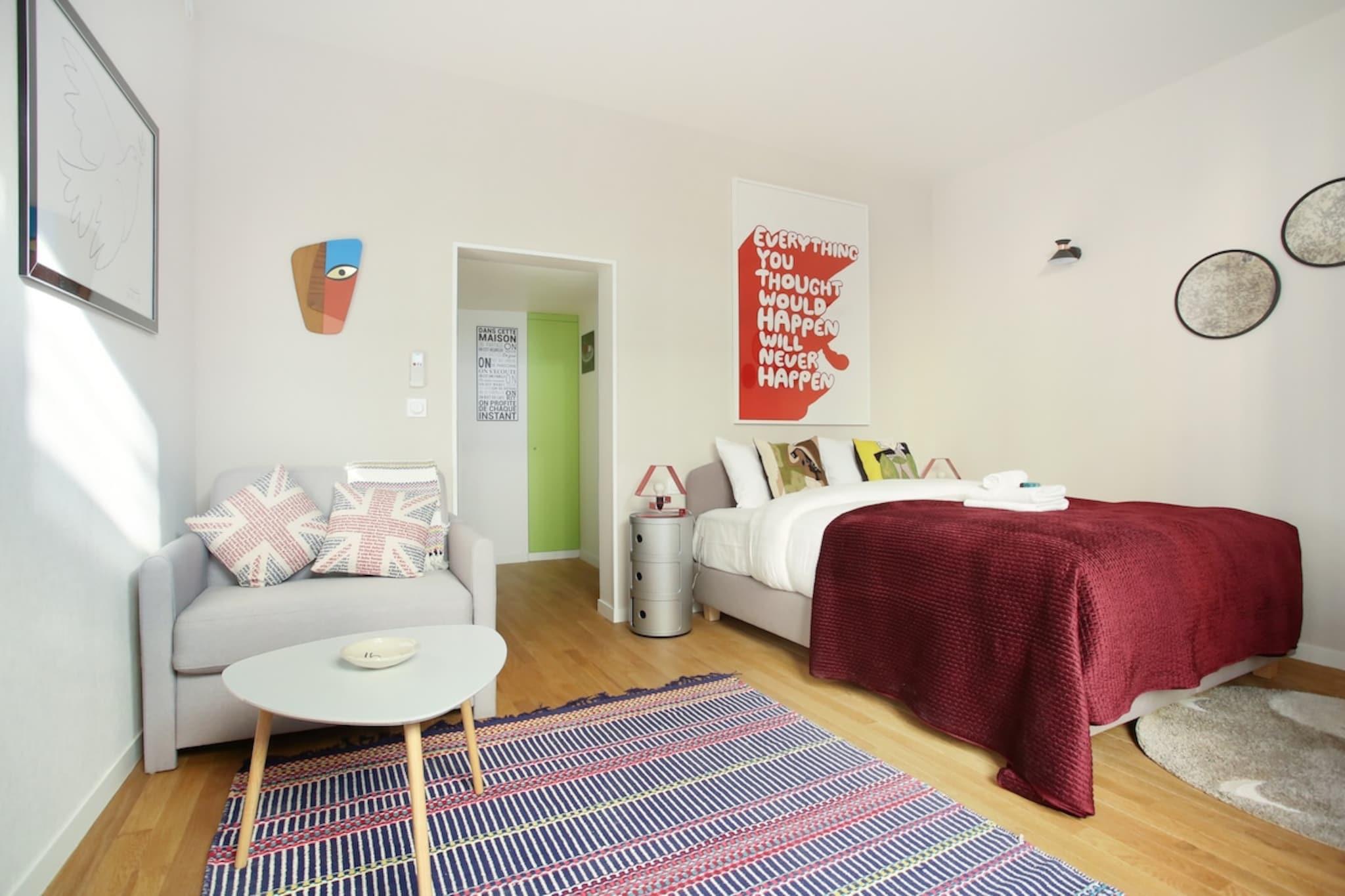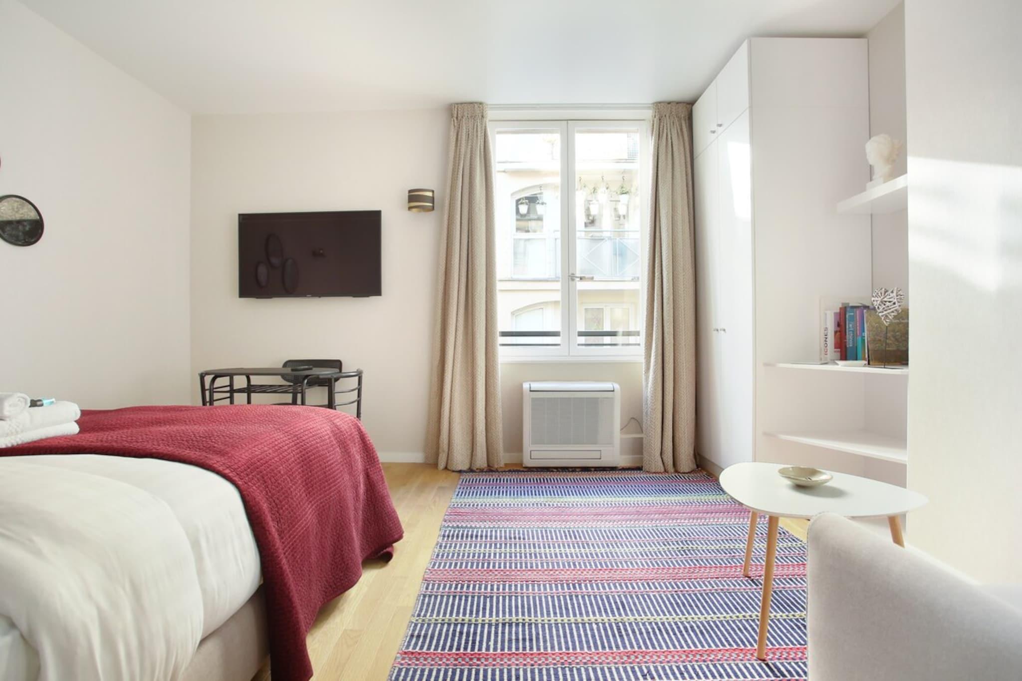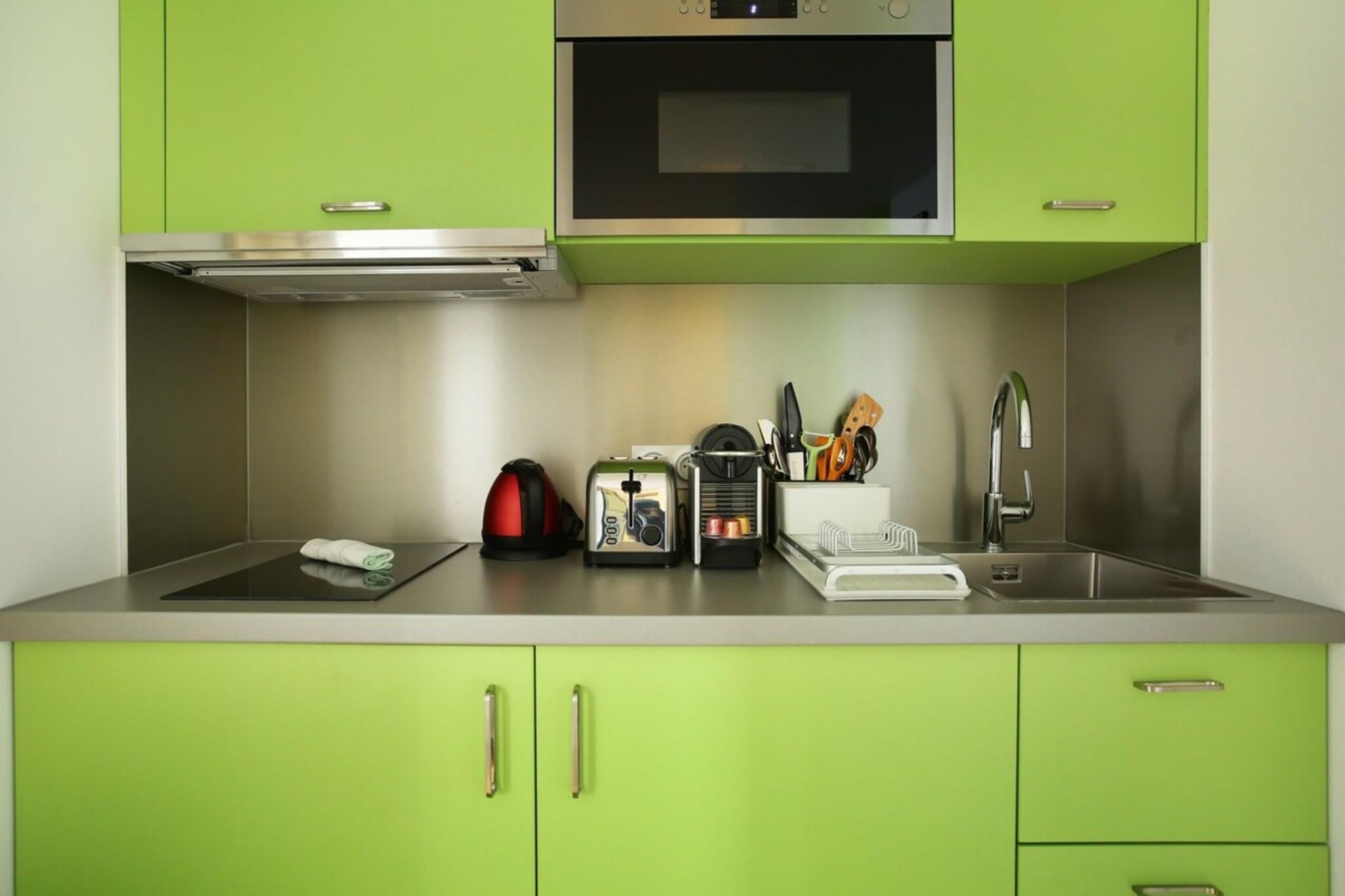 På 4. etage: (Køkken(elkedel, kaffemaskine, ovn, mikrobølgeovn, køleskab, , , Baking sheet, Coffee), stue / spisestue(Internetadgang, enkeltsovesofa, dobbeltseng, Fjernsyn, spisebord), badeværelse(bruser, håndvask, toilet, føntørrer, Håndklæder inkl., )) , , , Internetadgang, Førstehjælp, tørretumbler, vaskemaskine, varme, klimaanlæg, strygejern, føntørrer, , , , Baking sheet, Carbon monoxide detector, Coffee, Downtown, Shower gel