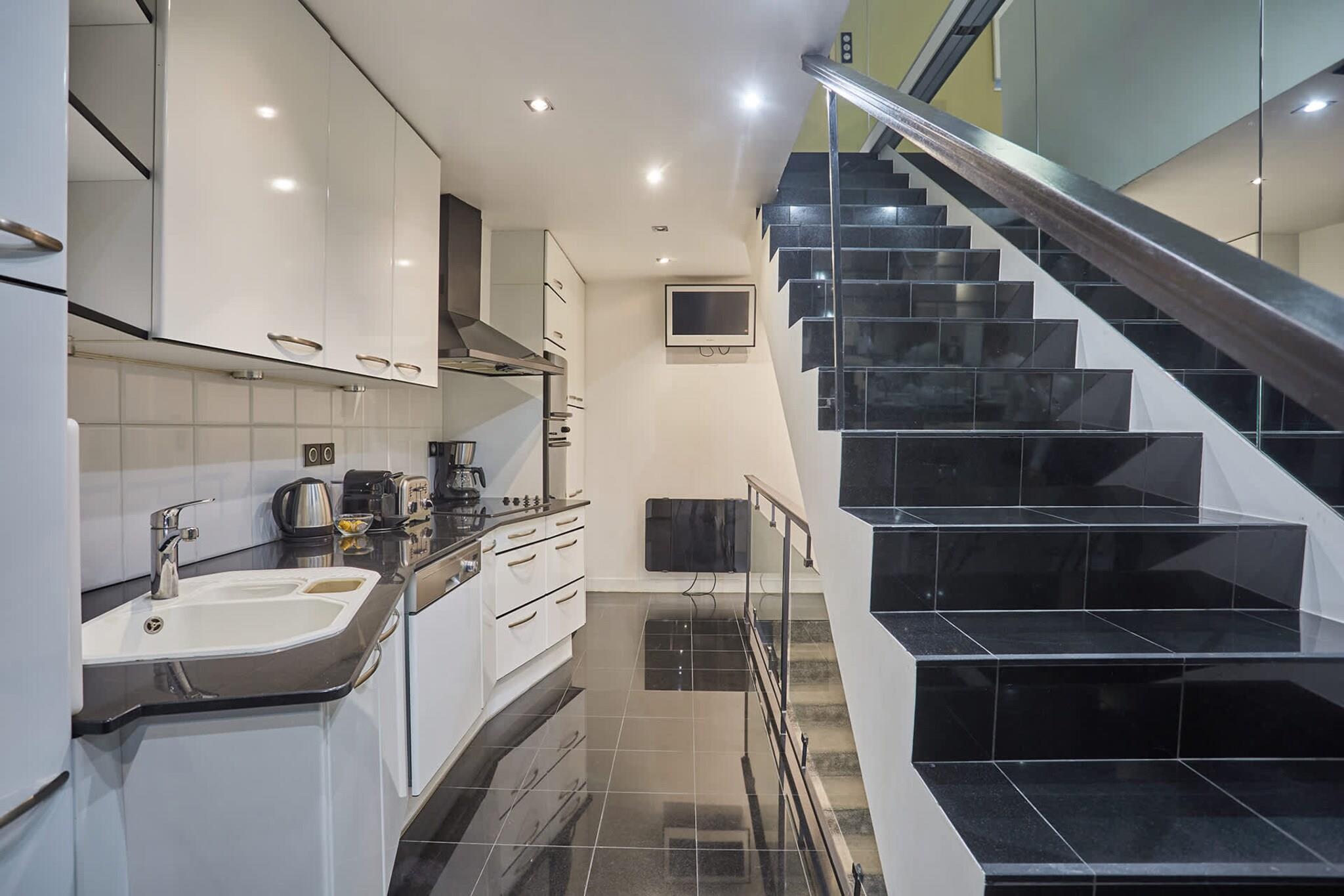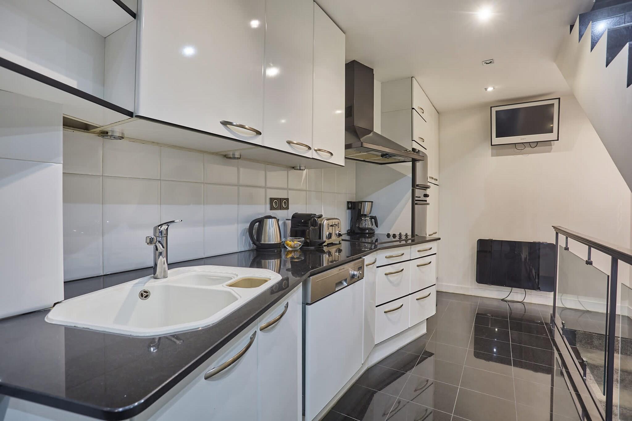 Stueetage: (Stue(enkeltsovesofa, Fjernsyn), Køkken(kogeplade, elkedel, brødrister, kaffemaskine, ovn, mikrobølgeovn, opvaskemaskine ), soveværelse(Queen Bed), soveværelse(Queen Bed), soveværelse(Queen Bed), badeværelse(bruser, håndvask, toilet), badeværelse(badekar, bruser, håndvask, toilet)) , , , , , , Førstehjælp, Legeområde, tørretumbler, vaskemaskine, varme, strygejern, føntørrer, Håndklæder/sengelinned (inkl.), , , , , , Baking sheet, Carbon monoxide detector, Cleaning products, Coffee, Downtown, Shower gel, Wine glasses