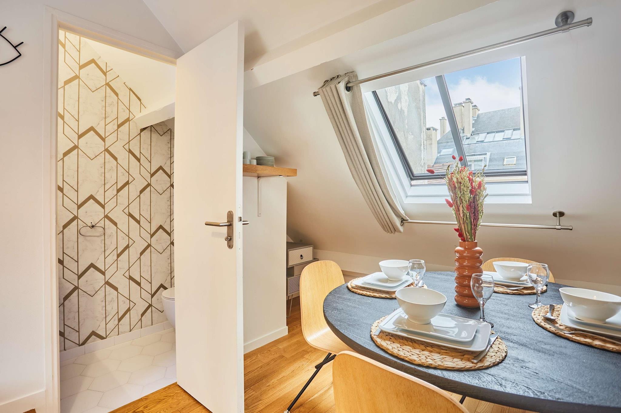 Charmerende triplex med aircondition i hjertet af Paris – Elegance og komfort En charmerende oase i et ikonisk kvarter Oplev denne udsøgte lejlighed beliggende i hjertet af Paris, omgivet af livlige gader, trendy butikker og hyggelige caféer. Nyd en unik boligoplevelse, der perfekt balancerer bystemning med rolig komfort.