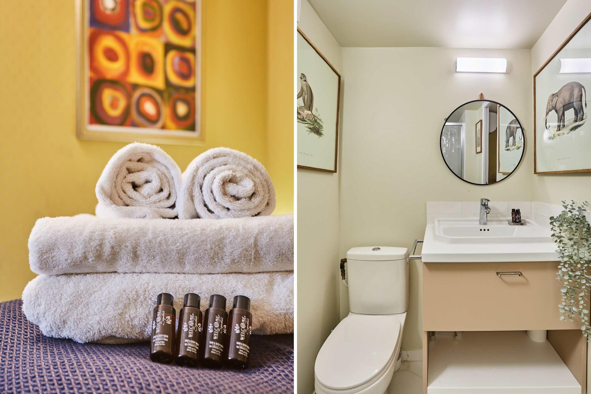 På 4. etage: (Stue(enkeltsovesofa, Fjernsyn, spisebord), åbent køkken(elkedel, brødrister, kaffemaskine, mikrobølgeovn, tørretumbler, vaskemaskine), soveværelse(dobbeltseng, Fjernsyn), soveværelse(dobbeltseng, Fjernsyn), badeværelse(bruser, toilet, føntørrer, , , ), badeværelse, toilet(toilet)) , , , , spisebord, brødrister, kaffemaskine, mikrobølgeovn, køleskab, fryser, tørretumbler, vaskemaskine, varme, klimaanlæg, strygejern, føntørrer, crib(free), , , , , , Baking sheet, Coffee, Downtown, Shower gel, Wine glasses